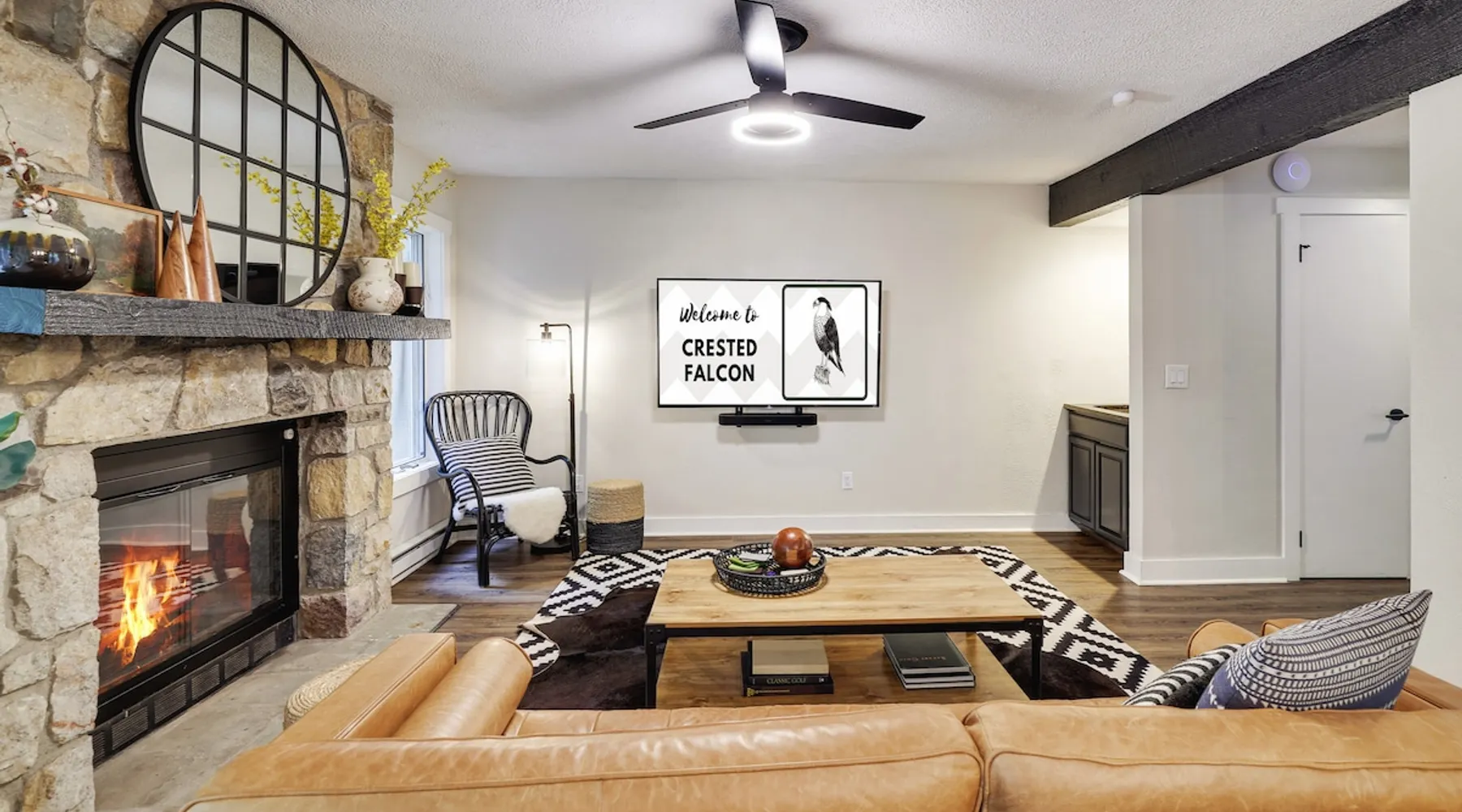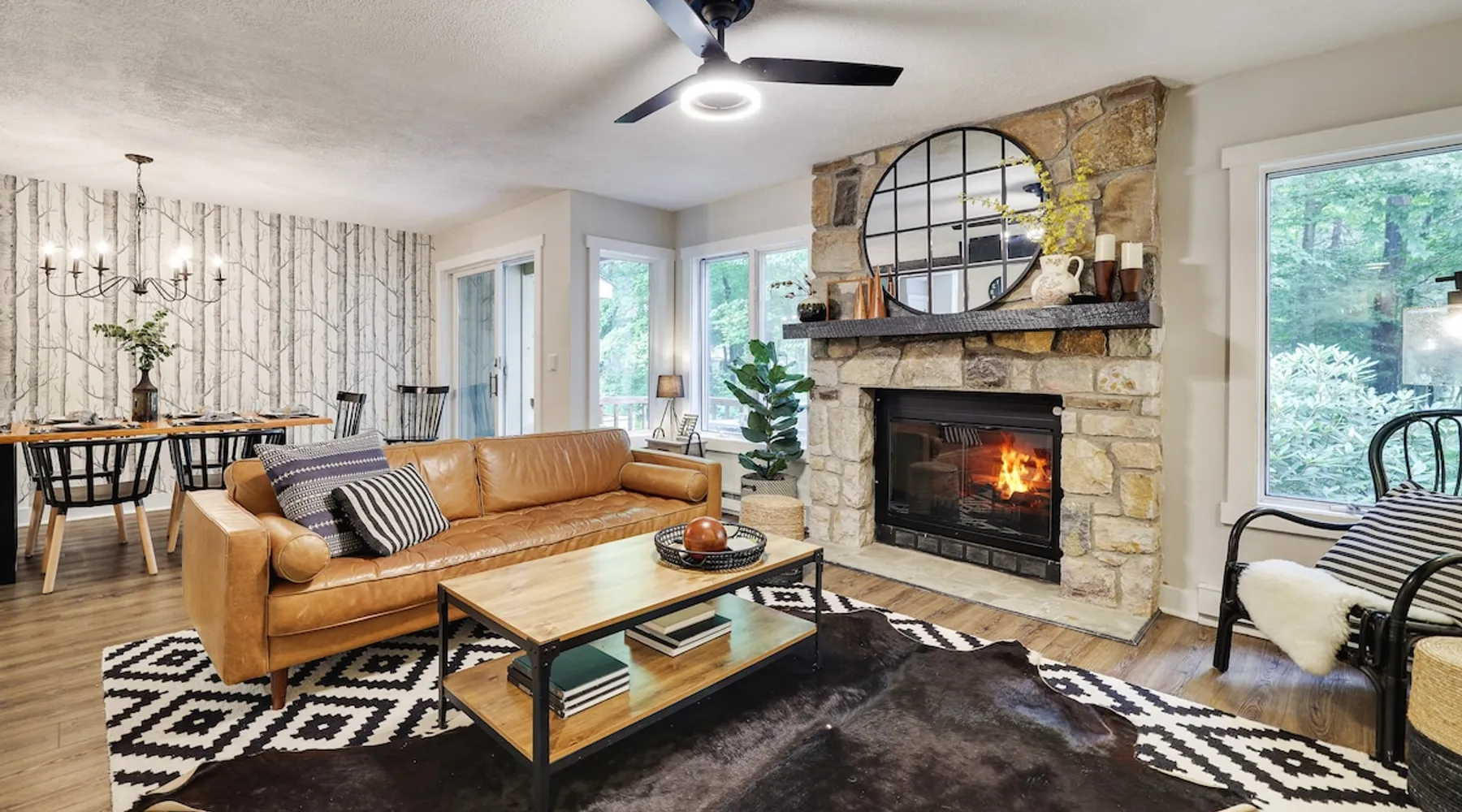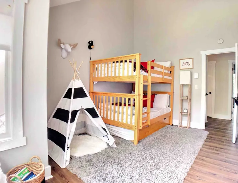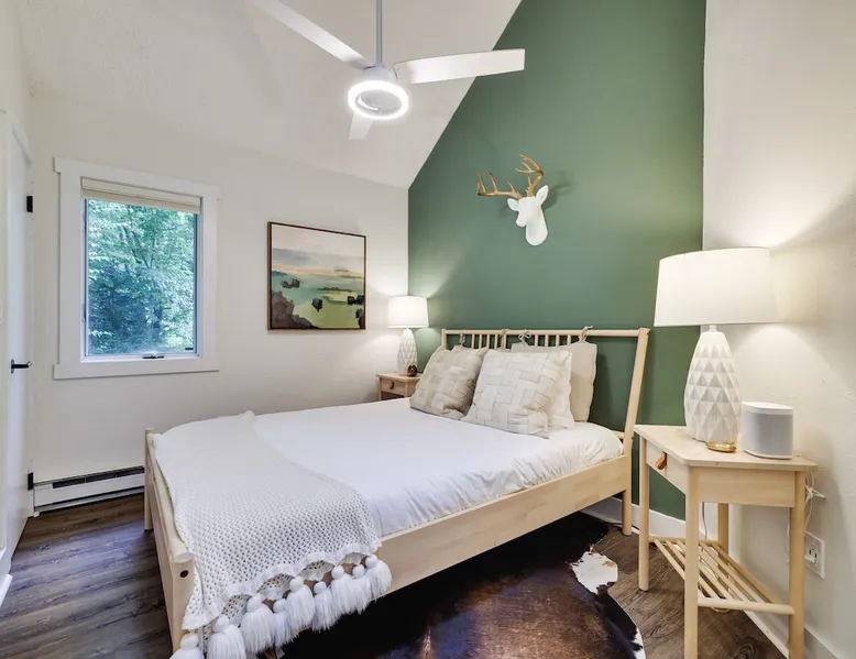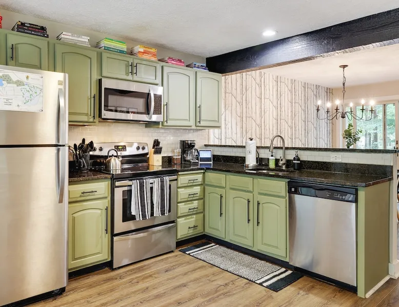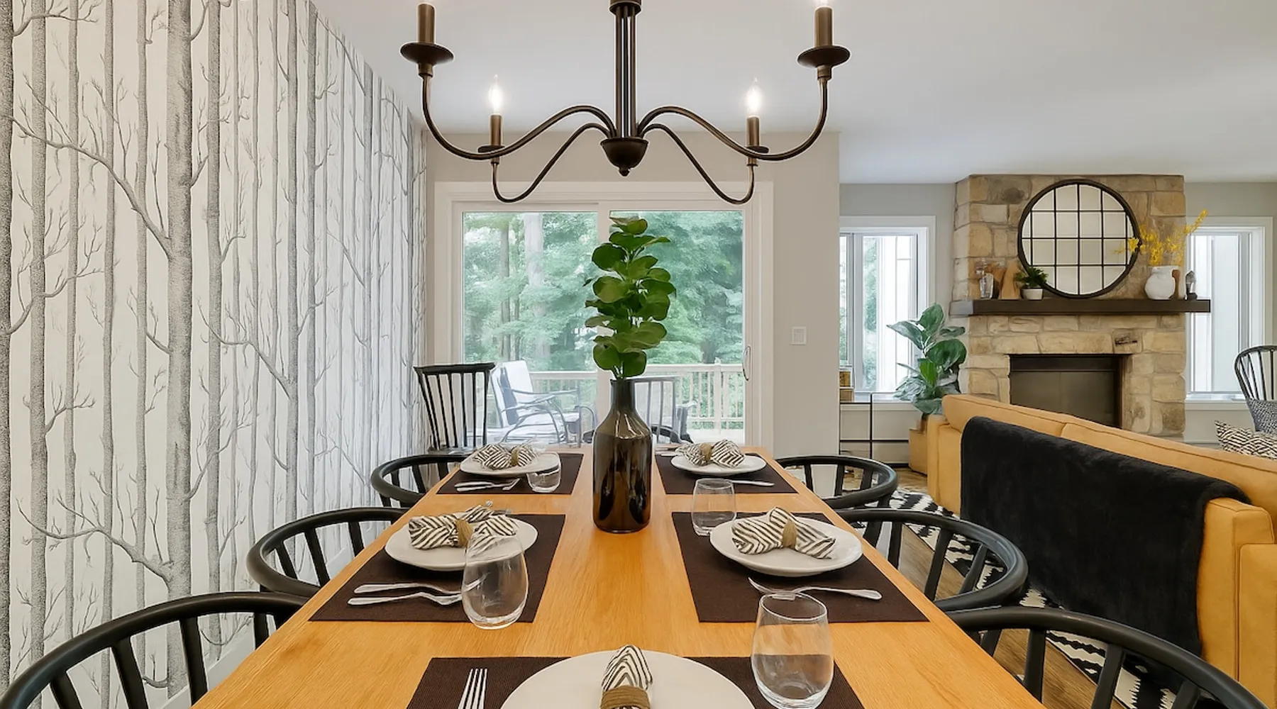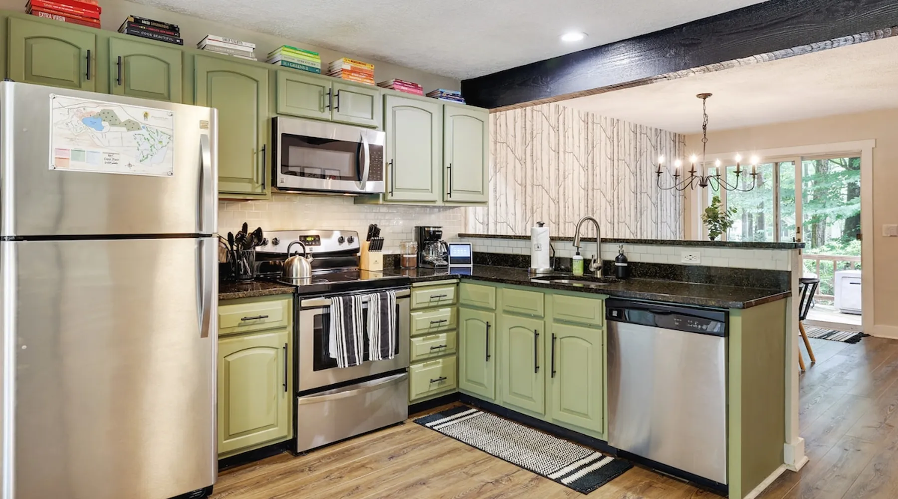 ⟶ Gaze peacefully at the lake from the deck lounge with fire table ⟶ Perfect for getting a break from the fast pace of everyday life ⟶ Charge up with a Level 2 EV Charger ⟶ Family friendly configuration Guests love CONVENIENT LOCATION & PROXIMITY TO ATTRACTIONS + AMENITIES Casual sophistication at your 1500 square foot 3 bed, 2.5 bath retreat on the lake in Pinecrest Golf & Country Club. Comfortably sleeping 8 in our crisply designed two-level townhome that has a friendly nod to cabin living. The space A redefined lakeview townhome designed for discerning families and groups who value comfort, design, and direct access to resort-quality amenities. Enjoy top-tier seasonal offerings via included private club membership — all just a short walk away: ✦ Oversized outdoor pool with slide, Baja ledge, and lap lanes (open late June–Labor Day) ✦ Sandy beach with lake swim dock ✦ 8 pickleball courts and 6 Har-Tru tennis courts ✦ Access to a par-72, 18-hole golf course (green fees apply) ✦ Private clubhouse dining The Home You’ll park steps away in two dedicated spots — including one with a complimentary Level 2 EV charger — and enter a spacious two-story home fully equipped for relaxing, entertaining, and working remotely. ►►►Main Level Features◄◄◄ ➜ Fully renovated kitchen with olive cabinetry, granite counters, and stainless steel appliances ➜ Live-edge dining table seats 8 comfortably ➜ Living room with buttery leather seating ➜ Electric fireplace with auxiliary heat ➜ 65" 4K Roku Smart TV with Sonos soundbar ➜ Wet bar and coffee station ➜ Powder room off the entry hall ➜ Multispeed Ceiling fan ➜ Individually wall-controlled Minisplit HVAC with A/C & heat ★★★★★ Lakeside deck ★★★★★ • Bistro table for two • Conversation chairs + side table • 3-burner Weber propane grill • Propane fire pit • Outdoor games and spare propane tank stored in closet ►►►Upper Level Sleeping Quarters◄◄◄ All three bedrooms feature cathedral ceilings, zoned ductless mini-split heating and cooling, ceiling fans, remote-controlled tower fans, personal Sonos speakers, and fast-charging USB ports. ★★★★★ Primary Suite (Sleeps 2)★★★★★ ➜ King canopy bed with luxury bamboo blend linens and cool-gel memory foam mattress ➜ 65” 4K Roku Smart TV with Sonos soundbar ➜ Auxiliary heat & cozy ambiance electric fireplace ➜ Private office desk setup with task lighting and USB ports ➜ Private coffee station with Keurig & essentials ➜ Ensuite bath with oversized rain shower + bidet ➜ Full closet with mini fridge, safe, steamer, and hamper ➜ Multispeed Ceiling fan ➜ Individually wall-controlled Minisplit HVAC with A/C & heat ★★★★★ Queen Bedroom (Sleeps 2)★★★★★ ➜ Queen bed with cool-gel memory foam mattress & bold green accent wall ➜ White bamboo blend linens ➜ Bedside charging stations and Sonos One ➜ Multispeed Ceiling fan ➜ Individually wall-controlled Minisplit HVAC with A/C & heat ★★★★★ Bunk Room (Sleeps 5)★★★★★ ➜ Double full bunk beds with twin trundle ➜ Bedside USB charging station ➜ Window seat ➜ Kid tent ➜ 55" 4K Roku Smart TV with Sonos soundbar ➜ Retro Pac-Man arcade game ➜ Multispeed Ceiling fan ➜ Individually wall-controlled Minisplit HVAC with A/C & heat A shared hallway bathroom with tub/shower combo serves the Queen and Bunk rooms, and a full-size LG washer/dryer with detergent is conveniently located at the end of the hall. ►►►Kitchen & Culinary Comforts◄◄◄ Whether you're prepping family meals or enjoying a quick breakfast, the kitchen is stocked for ease and comfort: ◻ Drip coffee maker (filters included), Keurig, pour-over pot, coffee bean grinder + complimentary ground coffee blend ◻ Full cookware set, Instant Pot, toaster, griddle, waffle maker, blender, air fryer, tea kettle, knives, cutting boards & kitchen gadgets ◻ Table service for 12 ◻ Pantry basics like spices, oils, baking essentials, and storage wrap ►►►Tech, Games & Comforts◄◄◄ ◻ Mesh Wi-Fi with blazing 400MB download speeds / 20MB upload ◻ 3 Smart TVs with Roku (Living Room, Primary Suite, Bunk Room) ◻ 4 Sonos zones (Living Room + all 3 bedrooms) ◻ Amazon Echo Show with Alexa voice assistance ◻ Charging stations and USB-integrated outlets at every bedside ◻ Board games, books, toys, high chairs, Pack & Play/travel crib with sheet ◻ 6 Tommy Bahama backpack beach chairs + beach umbrella & cooler ◻ 4 full-size umbrellas for rainy days ►►►Community & Location◄◄◄ Located in the Pinecrest Golf and Country Club community, you’ll have easy seasonal access to: Golf, tennis, pickleball, basketball, lake swimming, and pool Auxiliary parking 1,500 feet from the unit if needed The Crested Falcon is extremely close to activities for adults or the entire family. Our digital welcome guide will provide you information about the home and the community. Nearby area highlights include: - Kalahari Waterpark (13 mins away) - Jack Frost Ski Resort (18 mins away) - Mt Airy Casino (17 mins away) - Camel Beach & Aquatopia (18 mins away) - Pocono Raceway (12 mins away) - Mountain Creek Riding Stables (20 mins away) - Whitewater Challengers Rafting (38 mins away) - Tannersville Premium Outlet Shopping (21 mins away) - Stock Car Racing Experience (17 mins away) - Pocono Whitewater Rafting (29 mins away) - Skytop Ziplining (33 mins away) Provided Essentials Cleaning & Hygiene: ─ Bamboo blend linens, Quality cotton towels, dedicated lake/pool towels ─ Toilet paper, paper towels ─ Meyer's brand soaps and detergents ─ Hair dryer, iron, steamer ironing board, dish sponge, trash bags Kids & Extras: ─ Pack & Play / Travel Crib with sheet ─ High chair conversion kits ─ Toys, games, and books Outdoors: ─ Grill tools ─ Beach and lake day gear (chairs, cooler, umbrella) ─ Covered lakeview deck with fire pit and comfy se