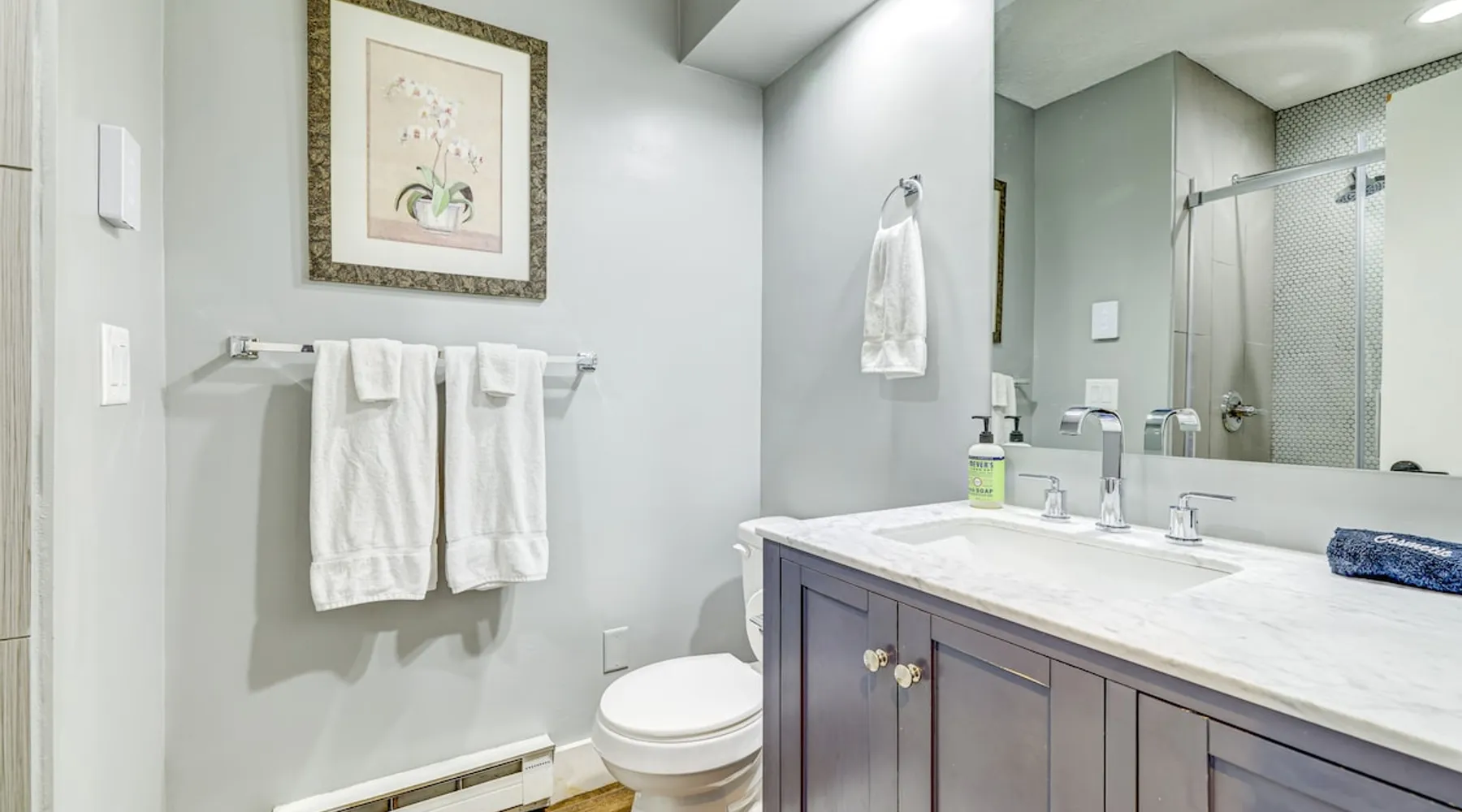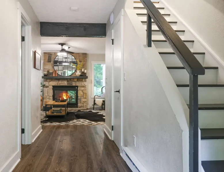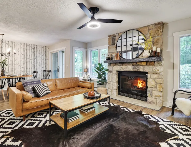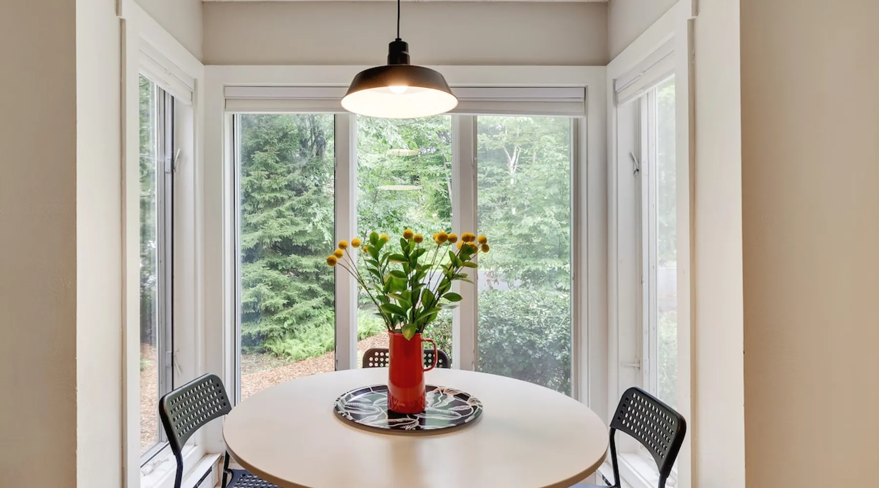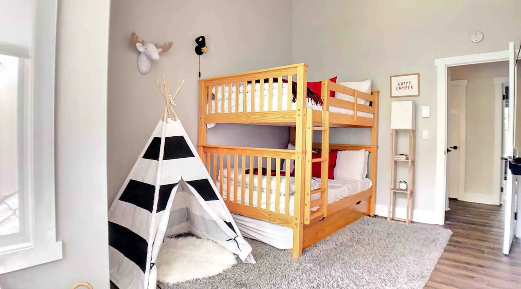 ⟶ Gaze peacefully at the lake from the deck lounge with fire table ⟶ Perfect for getting a break from the fast pace of everyday life ⟶ Charge up with a Level 2 EV Charger ⟶ Family friendly configuration Guests love CONVENIENT LOCATION & PROXIMITY TO ATTRACTIONS + AMENITIES Casual sophistication at your 1500 square foot 3 bed, 2.5 bath retreat on the lake in Pinecrest Golf & Country Club. Comfortably sleeping 8 in our crisply designed two-level townhome that has a friendly nod to cabin living. The space A redefined lakeview townhome designed for discerning families and groups who value comfort, design, and direct access to resort-quality amenities. Enjoy top-tier seasonal offerings via included private club membership — all just a short walk away: ✦ Oversized outdoor pool with slide, Baja ledge, and lap lanes (open late June–Labor Day) ✦ Sandy beach with lake swim dock ✦ 8 pickleball courts and 6 Har-Tru tennis courts ✦ Access to a par-72, 18-hole golf course (green fees apply) ✦ Private clubhouse dining The Home You’ll park steps away in two dedicated spots — including one with a complimentary Level 2 EV charger — and enter a spacious two-story home fully equipped for relaxing, entertaining, and working remotely. ►►►Main Level Features◄◄◄ ➜ Fully renovated kitchen with olive cabinetry, granite counters, and stainless steel appliances ➜ Live-edge dining table seats 8 comfortably ➜ Living room with buttery leather seating ➜ Electric fireplace with auxiliary heat ➜ 65" 4K Roku Smart TV with Sonos soundbar ➜ Wet bar and coffee station ➜ Powder room off the entry hall ➜ Multispeed Ceiling fan ➜ Individually wall-controlled Minisplit HVAC with A/C & heat ★★★★★ Lakeside deck ★★★★★ • Bistro table for two • Conversation chairs + side table • 3-burner Weber propane grill • Propane fire pit • Outdoor games and spare propane tank stored in closet ►►►Upper Level Sleeping Quarters◄◄◄ All three bedrooms feature cathedral ceilings, zoned ductless mini-split heating and cooling, ceiling fans, remote-controlled tower fans, personal Sonos speakers, and fast-charging USB ports. ★★★★★ Primary Suite (Sleeps 2)★★★★★ ➜ King canopy bed with luxury bamboo blend linens and cool-gel memory foam mattress ➜ 65” 4K Roku Smart TV with Sonos soundbar ➜ Auxiliary heat & cozy ambiance electric fireplace ➜ Private office desk setup with task lighting and USB ports ➜ Private coffee station with Keurig & essentials ➜ Ensuite bath with oversized rain shower + bidet ➜ Full closet with mini fridge, safe, steamer, and hamper ➜ Multispeed Ceiling fan ➜ Individually wall-controlled Minisplit HVAC with A/C & heat ★★★★★ Queen Bedroom (Sleeps 2)★★★★★ ➜ Queen bed with cool-gel memory foam mattress & bold green accent wall ➜ White bamboo blend linens ➜ Bedside charging stations and Sonos One ➜ Multispeed Ceiling fan ➜ Individually wall-controlled Minisplit HVAC with A/C & heat ★★★★★ Bunk Room (Sleeps 5)★★★★★ ➜ Double full bunk beds with twin trundle ➜ Bedside USB charging station ➜ Window seat ➜ Kid tent ➜ 55" 4K Roku Smart TV with Sonos soundbar ➜ Retro Pac-Man arcade game ➜ Multispeed Ceiling fan ➜ Individually wall-controlled Minisplit HVAC with A/C & heat A shared hallway bathroom with tub/shower combo serves the Queen and Bunk rooms, and a full-size LG washer/dryer with detergent is conveniently located at the end of the hall. ►►►Kitchen & Culinary Comforts◄◄◄ Whether you're prepping family meals or enjoying a quick breakfast, the kitchen is stocked for ease and comfort: ◻ Drip coffee maker (filters included), Keurig, pour-over pot, coffee bean grinder + complimentary ground coffee blend ◻ Full cookware set, Instant Pot, toaster, griddle, waffle maker, blender, air fryer, tea kettle, knives, cutting boards & kitchen gadgets ◻ Table service for 12 ◻ Pantry basics like spices, oils, baking essentials, and storage wrap ►►►Tech, Games & Comforts◄◄◄ ◻ Mesh Wi-Fi with blazing 400MB download speeds / 20MB upload ◻ 3 Smart TVs with Roku (Living Room, Primary Suite, Bunk Room) ◻ 4 Sonos zones (Living Room + all 3 bedrooms) ◻ Amazon Echo Show with Alexa voice assistance ◻ Charging stations and USB-integrated outlets at every bedside ◻ Board games, books, toys, high chairs, Pack & Play/travel crib with sheet ◻ 6 Tommy Bahama backpack beach chairs + beach umbrella & cooler ◻ 4 full-size umbrellas for rainy days ►►►Community & Location◄◄◄ Located in the Pinecrest Golf and Country Club community, you’ll have easy seasonal access to: Golf, tennis, pickleball, basketball, lake swimming, and pool Auxiliary parking 1,500 feet from the unit if needed The Crested Falcon is extremely close to activities for adults or the entire family. Our digital welcome guide will provide you information about the home and the community. Nearby area highlights include: - Kalahari Waterpark (13 mins away) - Jack Frost Ski Resort (18 mins away) - Mt Airy Casino (17 mins away) - Camel Beach & Aquatopia (18 mins away) - Pocono Raceway (12 mins away) - Mountain Creek Riding Stables (20 mins away) - Whitewater Challengers Rafting (38 mins away) - Tannersville Premium Outlet Shopping (21 mins away) - Stock Car Racing Experience (17 mins away) - Pocono Whitewater Rafting (29 mins away) - Skytop Ziplining (33 mins away) Provided Essentials Cleaning & Hygiene: ─ Bamboo blend linens, Quality cotton towels, dedicated lake/pool towels ─ Toilet paper, paper towels ─ Meyer's brand soaps and detergents ─ Hair dryer, iron, steamer ironing board, dish sponge, trash bags Kids & Extras: ─ Pack & Play / Travel Crib with sheet ─ High chair conversion kits ─ Toys, games, and books Outdoors: ─ Grill tools ─ Beach and lake day gear (chairs, cooler, umbrella) ─ Covered lakeview deck with fire pit and comfy se