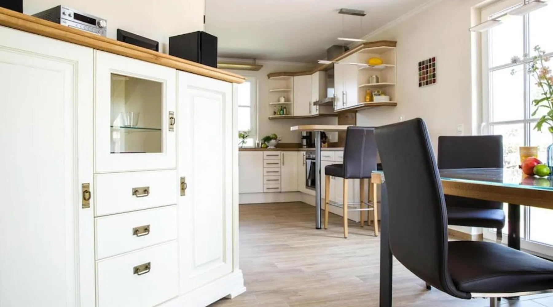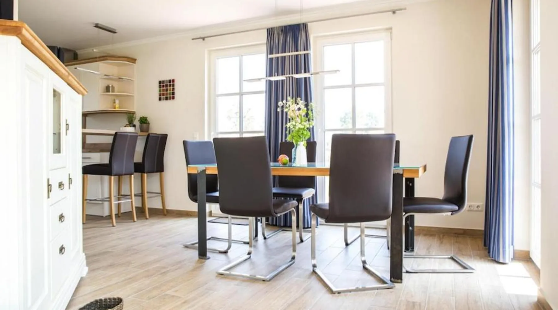 Comfortable Accommodations: Luxushaus Boddenküste mit Sauna in Fuhlendorf offers three bedrooms and a bathroom. The property includes a fully equipped kitchen, washing machine, and free WiFi. Leisure Facilities: Guests can enjoy a sauna, water sports facilities, and a terrace with garden views. Outdoor furniture and a barbecue provide additional relaxation options. Convenient Amenities: The holiday home features a refrigerator, microwave, dishwasher, oven, toaster, TV, and free parking. Free WiFi is available throughout the property. Local Attractions: Rostock-Laage Airport is 44 mi away. Nearby points of interest include Stralsund Central Station (24 mi), Theater Vorpommern (24 mi), and Stralsund Harbor (24 mi). This holiday home is consisted of of 3 bedrooms, kitchen, a terrace and 1 bathroom with a shower. The well-fitted kitchen features a refrigerator, a dishwasher, an oven and a microwave. The holiday home offers a TV with cable channels, a washing machine, a tea and coffee maker, a barbecue as well as garden views. The unit offers 3 beds.