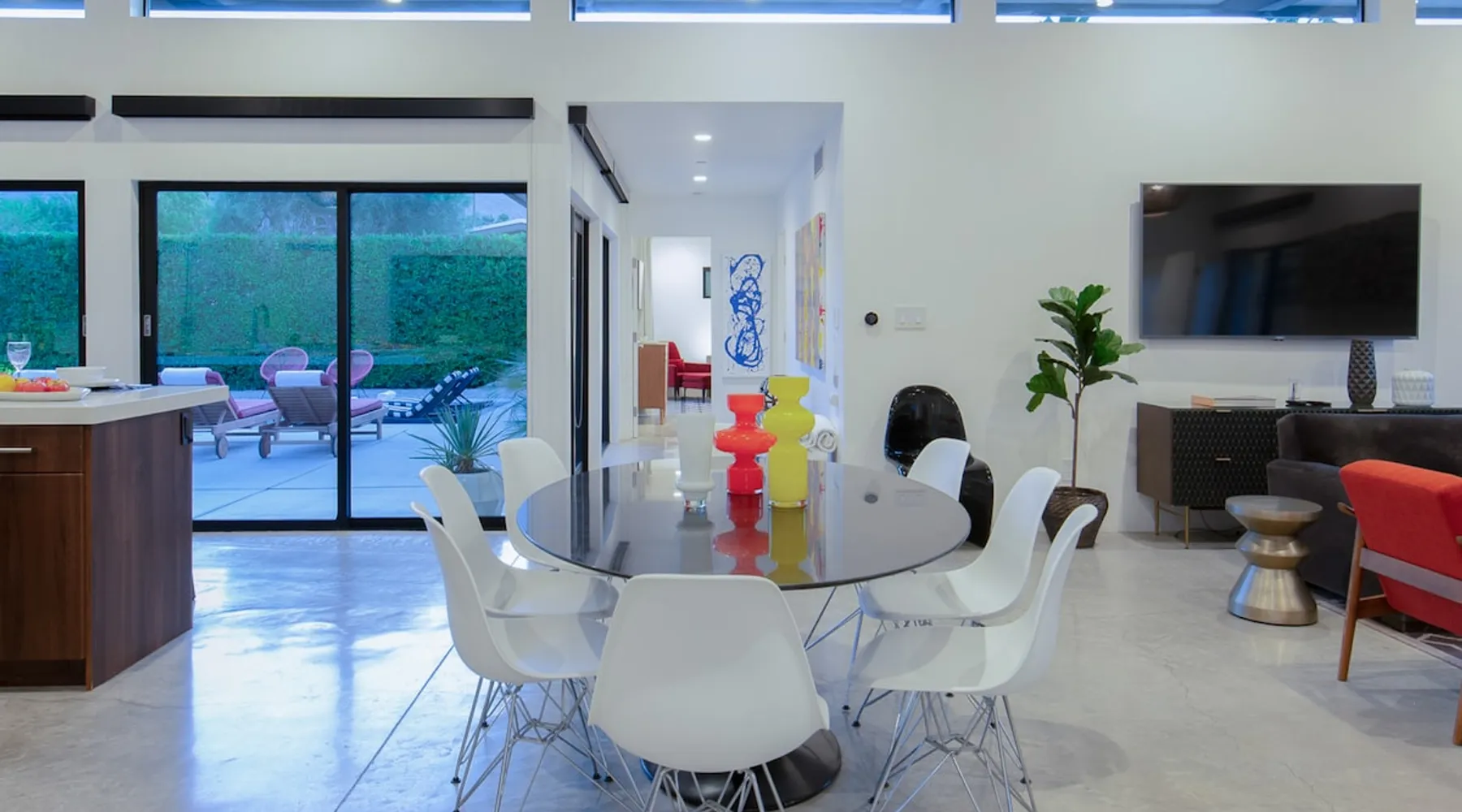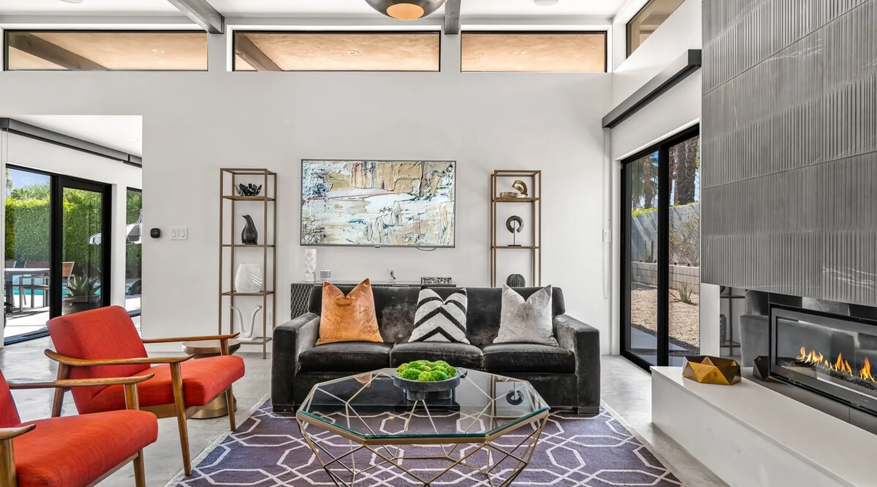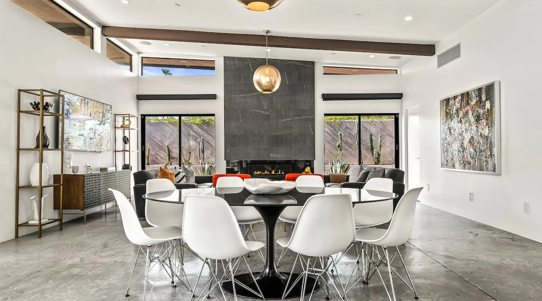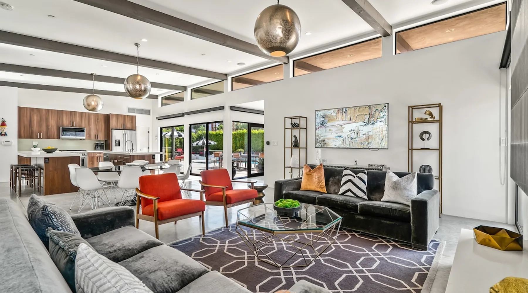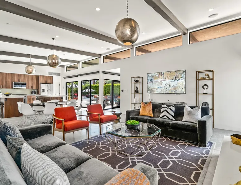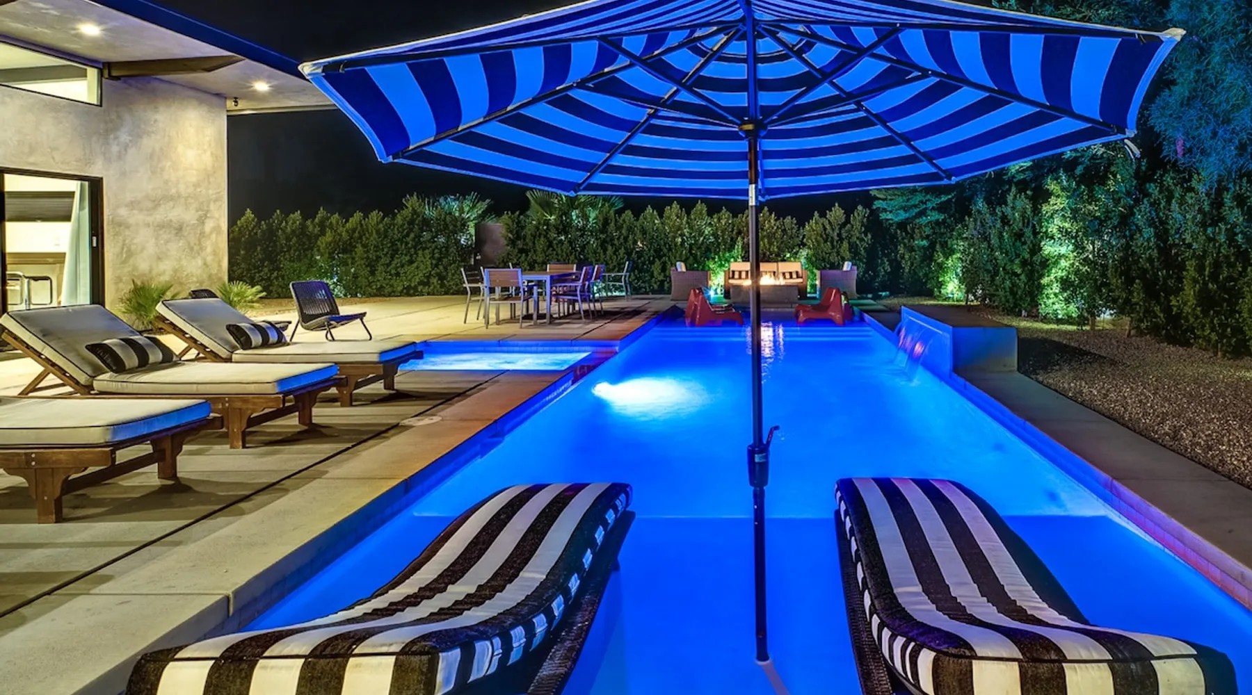 Palms at Park, Villa 14 is a Dwell-featured designer getaway offering a 42 ft heated saltwater pool with wet decks, oversized spa, fire pit, and sweeping mountain views. Inside, five private bedroom suites (1 Cal King, 4 Queens) each include an en suite bath and direct outdoor access. A chef’s kitchen with dual islands, dining for 10, and seamless indoor–outdoor living spaces make this villa perfect for entertaining or relaxing, just 3 minutes from downtown Palm Springs. The space Villa 14 by Palms at Park was built to deliver the quintessential Palm Springs experience, with modern design, private resort amenities, and a location just minutes from downtown. Highlights • 5 bedroom suites (1 California King, 4 Queens), each with en suite bath and outdoor access • 42 ft heated saltwater pool with spa, fire pit, sun ledge, and mountain views • Chef’s kitchen with dual waterfall islands and professional appliances • Dining table for 10, perfect for celebratory dinners • Great room with fireplace and glass walls opening to the pool • Fully walled and gated property for complete privacy • Additional Palms at Park villas next door available for larger groups Guest Praise Guests often call Villa 14 exceptional for both comfort and design. Reviews highlight the balance of spacious gathering areas and completely private bedrooms, hotel-quality linens, spa-style bathrooms, and seamless indoor outdoor flow. Families appreciate how easily it hosts multiple generations, while couples value the retreat-like feel of each suite. Designed for both entertaining and relaxation, Villa 14 combines the polish of a luxury resort with the warmth of a private residence. It is an ideal setting for milestone birthdays, reunions, or restorative escapes. Guest access The entire villa and grounds are reserved for your stay. Villa 14 offers secure gated entry, private parking for up to 5 vehicles, and a complimentary Tesla charger. Other things to note Villa 14 is designed for serene enjoyment in a peaceful Palm Springs neighborhood. Palm Springs has unique city rules, and we make them simple. Villa 14 accommodates up to 10 adults plus 2 children under 12. Outdoor areas must remain quiet after 10pm, with no music audible outside at any time. We look forward to welcoming you to Palms at Park, Villa 14. Registration Details City ID # 2895