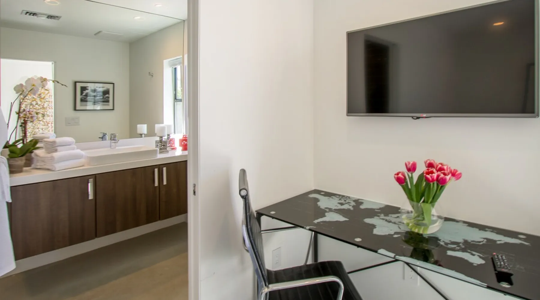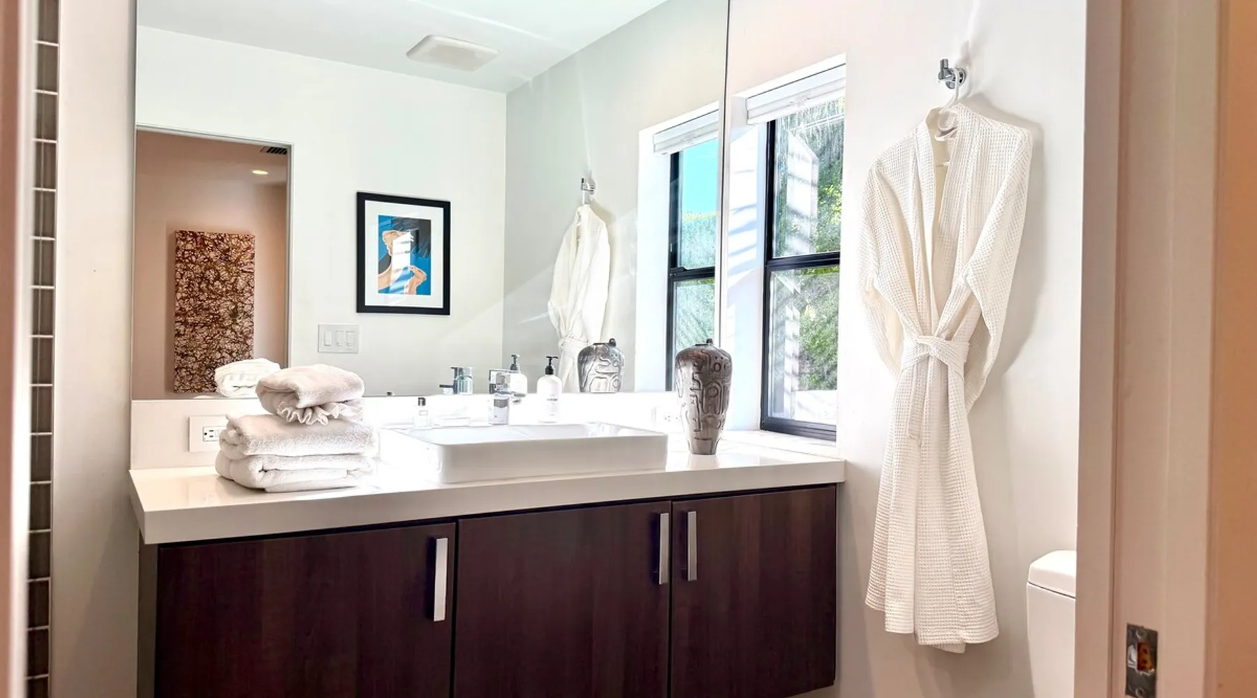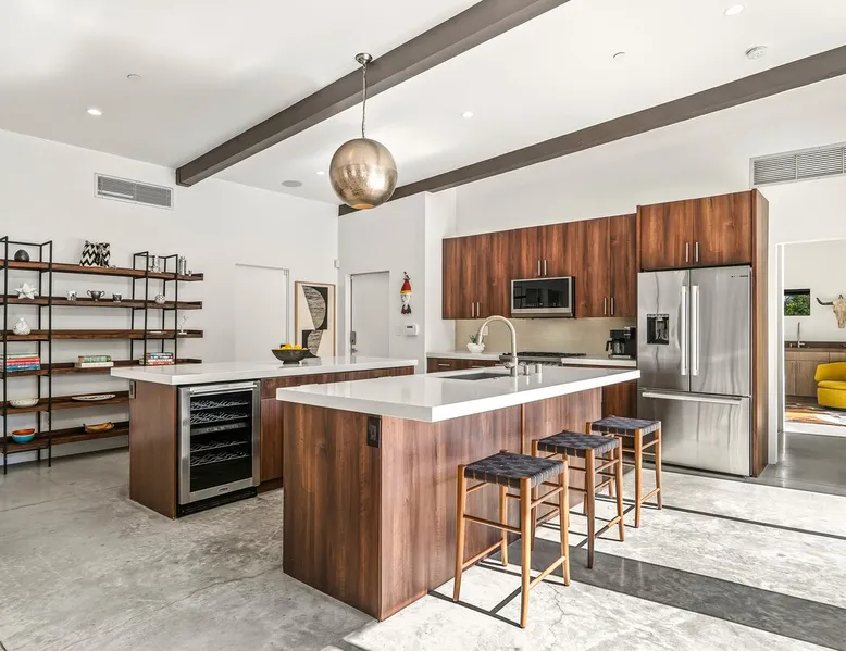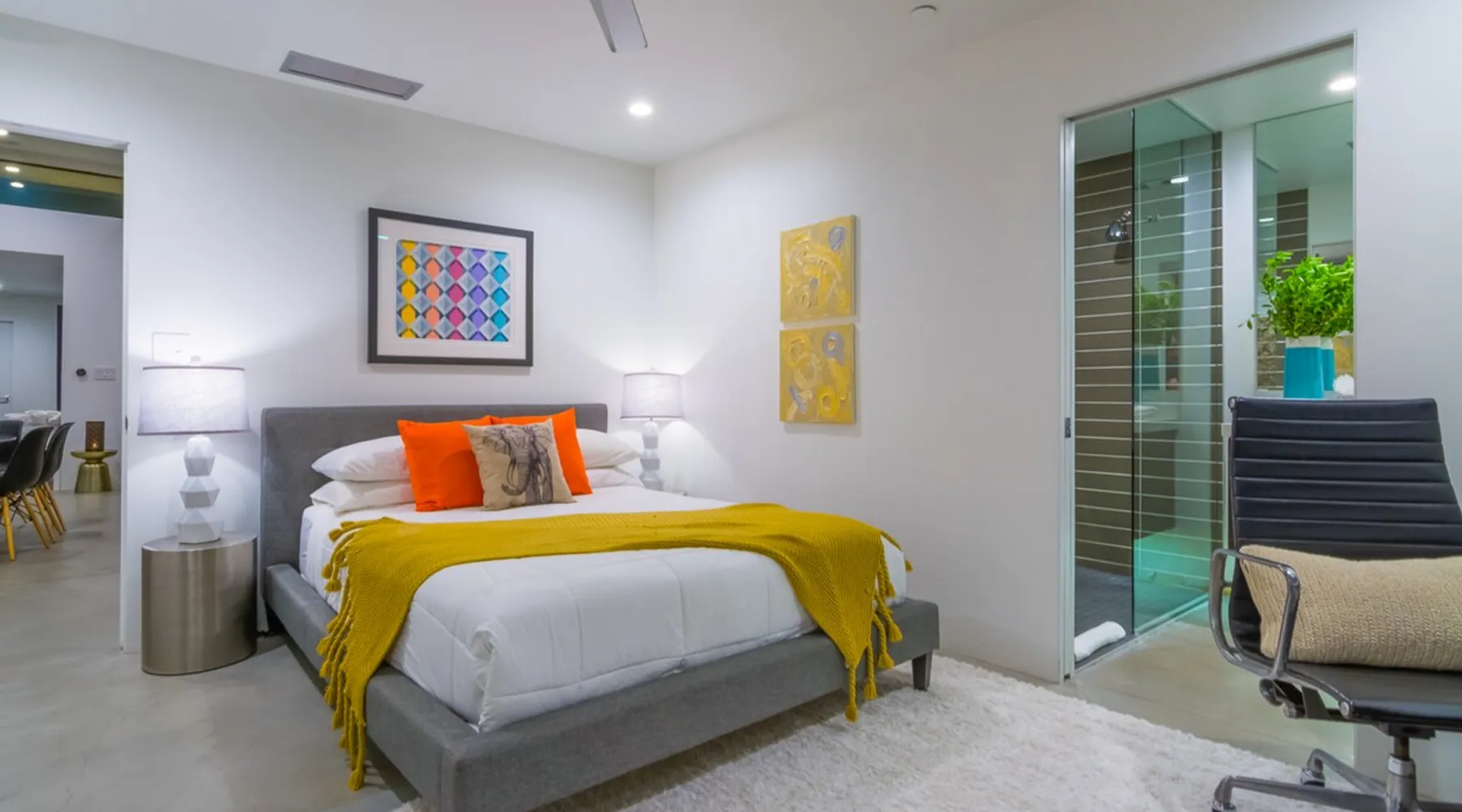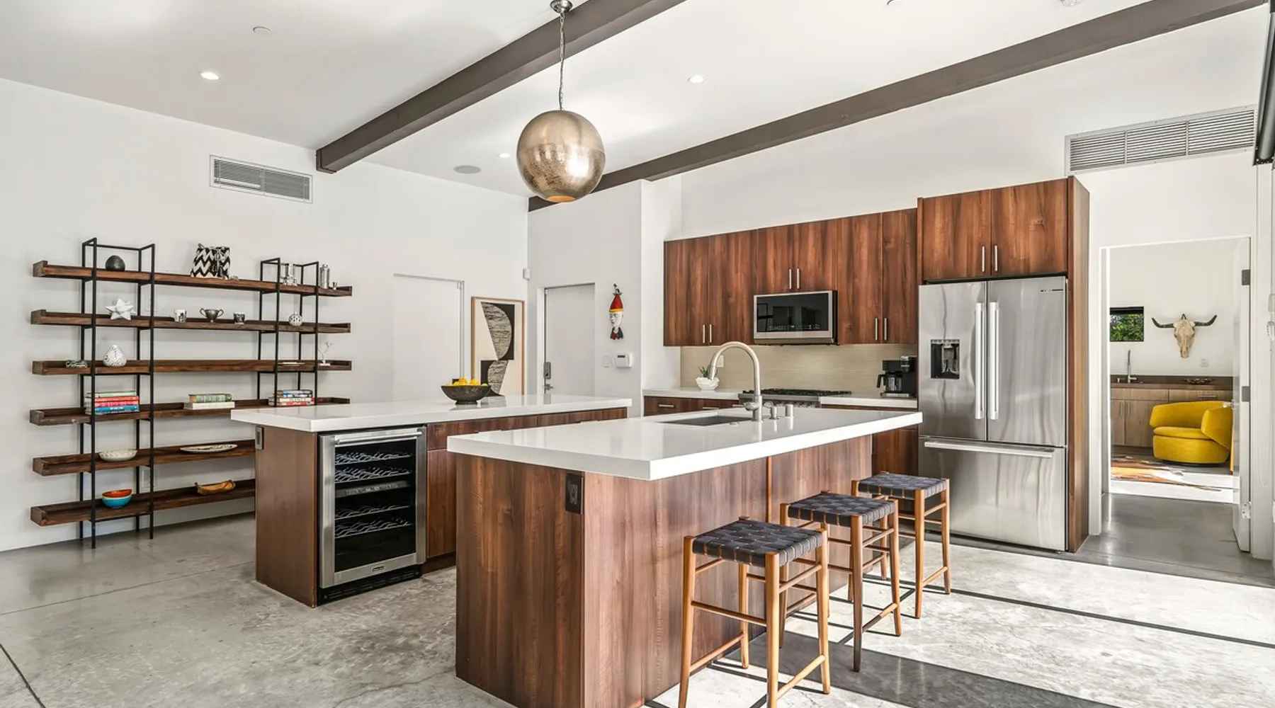 Palms at Park, Villa 14 is a Dwell-featured designer getaway offering a 42 ft heated saltwater pool with wet decks, oversized spa, fire pit, and sweeping mountain views. Inside, five private bedroom suites (1 Cal King, 4 Queens) each include an en suite bath and direct outdoor access. A chef’s kitchen with dual islands, dining for 10, and seamless indoor–outdoor living spaces make this villa perfect for entertaining or relaxing, just 3 minutes from downtown Palm Springs. The space Villa 14 by Palms at Park was built to deliver the quintessential Palm Springs experience, with modern design, private resort amenities, and a location just minutes from downtown. Highlights • 5 bedroom suites (1 California King, 4 Queens), each with en suite bath and outdoor access • 42 ft heated saltwater pool with spa, fire pit, sun ledge, and mountain views • Chef’s kitchen with dual waterfall islands and professional appliances • Dining table for 10, perfect for celebratory dinners • Great room with fireplace and glass walls opening to the pool • Fully walled and gated property for complete privacy • Additional Palms at Park villas next door available for larger groups Guest Praise Guests often call Villa 14 exceptional for both comfort and design. Reviews highlight the balance of spacious gathering areas and completely private bedrooms, hotel-quality linens, spa-style bathrooms, and seamless indoor outdoor flow. Families appreciate how easily it hosts multiple generations, while couples value the retreat-like feel of each suite. Designed for both entertaining and relaxation, Villa 14 combines the polish of a luxury resort with the warmth of a private residence. It is an ideal setting for milestone birthdays, reunions, or restorative escapes. Guest access The entire villa and grounds are reserved for your stay. Villa 14 offers secure gated entry, private parking for up to 5 vehicles, and a complimentary Tesla charger. Other things to note Villa 14 is designed for serene enjoyment in a peaceful Palm Springs neighborhood. Palm Springs has unique city rules, and we make them simple. Villa 14 accommodates up to 10 adults plus 2 children under 12. Outdoor areas must remain quiet after 10pm, with no music audible outside at any time. We look forward to welcoming you to Palms at Park, Villa 14. Registration Details City ID # 2895