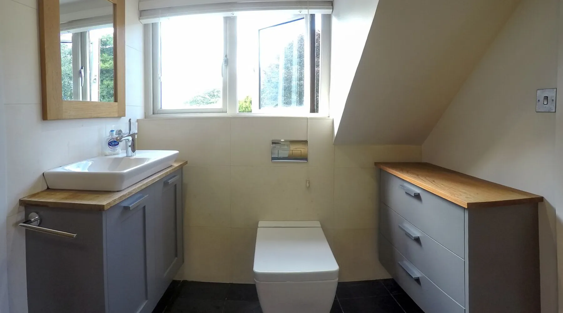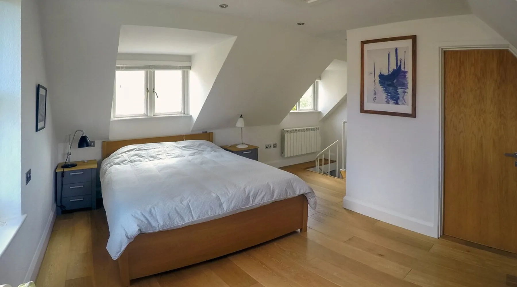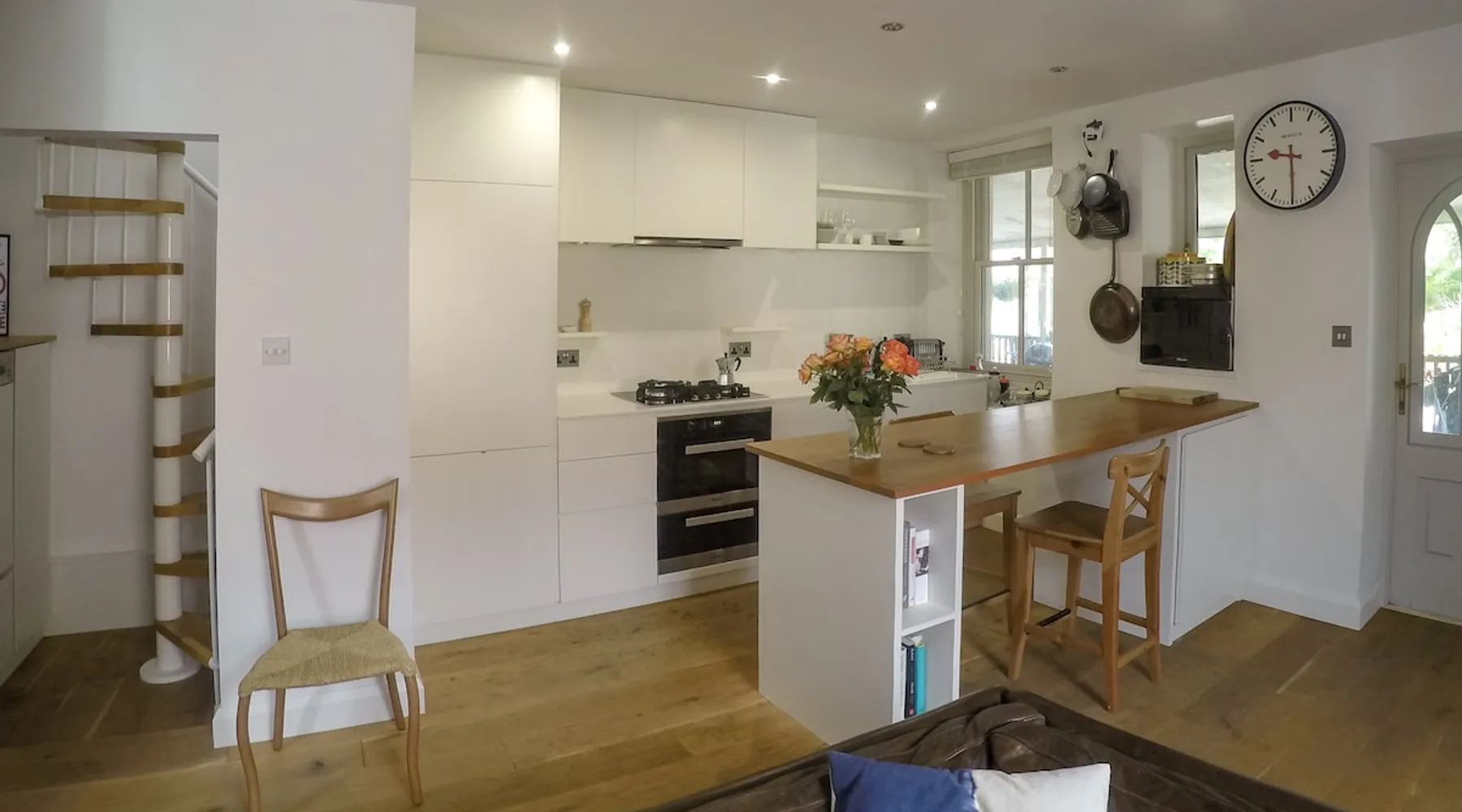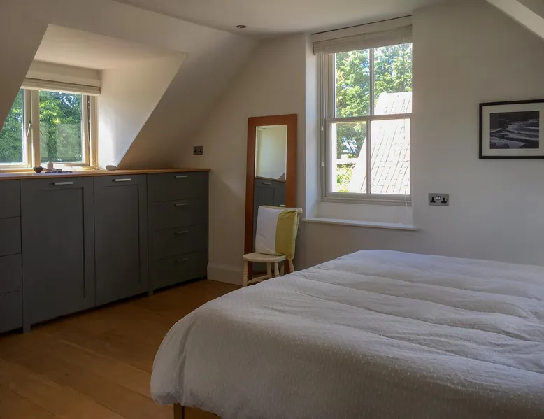 A modern guest suite within a traditional Jersey building, within an old farm complex, in the rural West of Jersey. The guest suite features a well-lit open-plan kitchen and living space, and a spiral staircase leading to a large bedroom and en-suite bathroom with luxury walk-in shower. The property also features a sheltered, private patio area and access to a stunning south-facing deck and garden. Guest access Guests are welcome to use the garden and deck, where sun-loungers are available for guests' use. Other things to note The staircase is narrow and suitable only for those more able-bodied. There are three neighbourhood cats who are friendly and inquisitive.