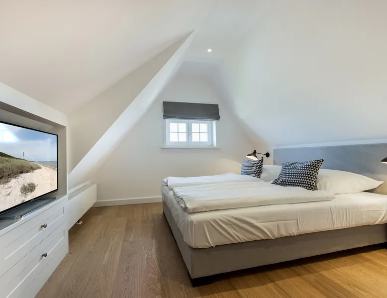 Escape the stress of everyday life and spend unforgettable days in the Kövenhüs, app. 5! This modern apartment on Sylt sleeps up to five people and impresses with its amenities, a balcony and magnificent views of the surroundings. Featuring three bedrooms, two bathrooms, and a fully stocked kitchen, it's the ideal retreat for families and friends. Just 490 meters from the beach, you can fully enjoy the sea. Book your dream vacation now! Other things to note Your comfort country house. On a nicely ingrown, natural property, the centrally yet close to the beach apartment in Landhaus Kövenhüs welcomes you that was completely renovated in 2020. The light-flooded and very spacious apartment offers you beautiful living comfort for your relaxing vacation. The west-facing balcony with Fermob balcony furniture invites you to open air. Domicile layout: Close to the beach, very comfortable 4-room apartment on the upper and attic floors. Approx. 89 sqm of usable space for up to 5 people. Upper floor: Tastefully furnished, bright living room with oak parquet, 3x flat-screen TV with cable TV and internet (Netflix, Youtube, etc.), Bluetooth Sound Box, Wi-Fi, . Integrated Bluthaup kitchen with dishwasher, microwave and oven. Bathroom with Antonio Lupi vanity and back-lit mirror incl. Bluetooth speakers, as well as shower and toilet with Vola fixtures. A beautiful room with box spring bed (about 1.8 m x 2 m) and plenty of closet space. Cozy, small west loggia for a tranquil evening end. DG: Room with box spring bed (approx. 1.8m x 2m) and even small dune and sea view. Small bathroom with shower and toilet. Your private beach chair (about from April-October) you will find a sun cow on the property. Shared coin washer and dryer in the house/basement space. Parking