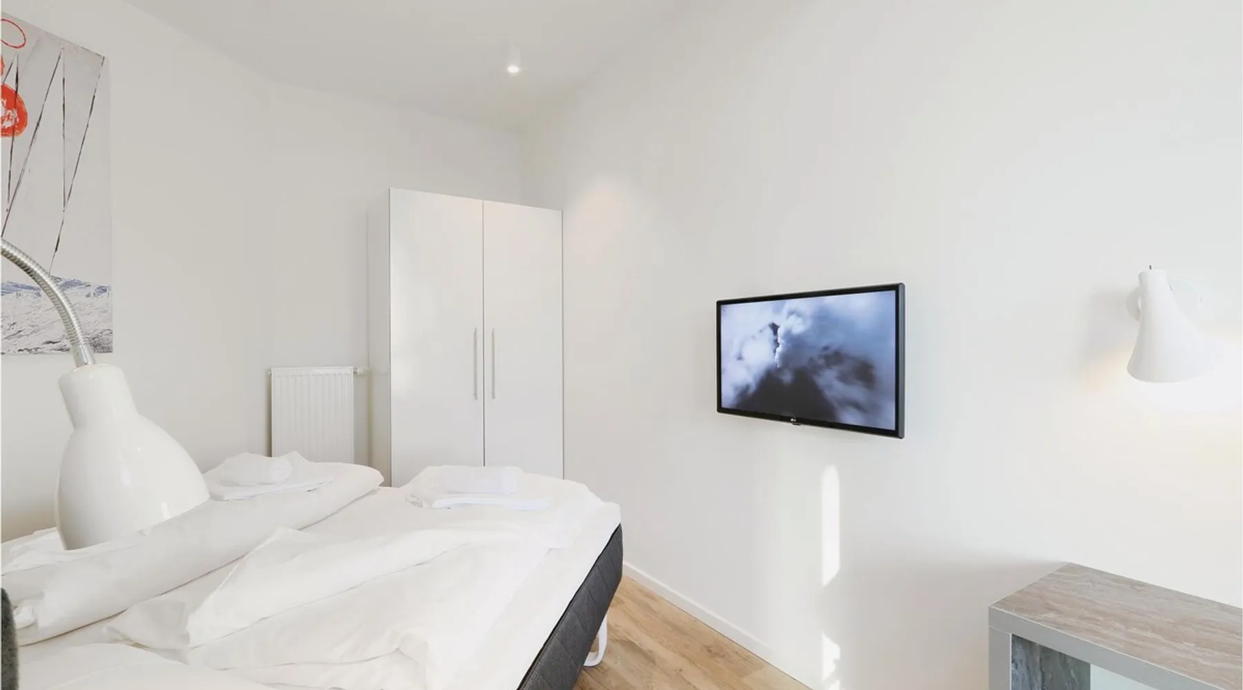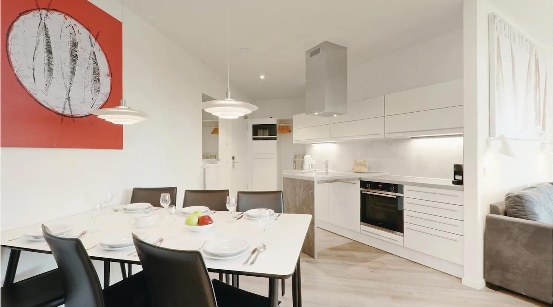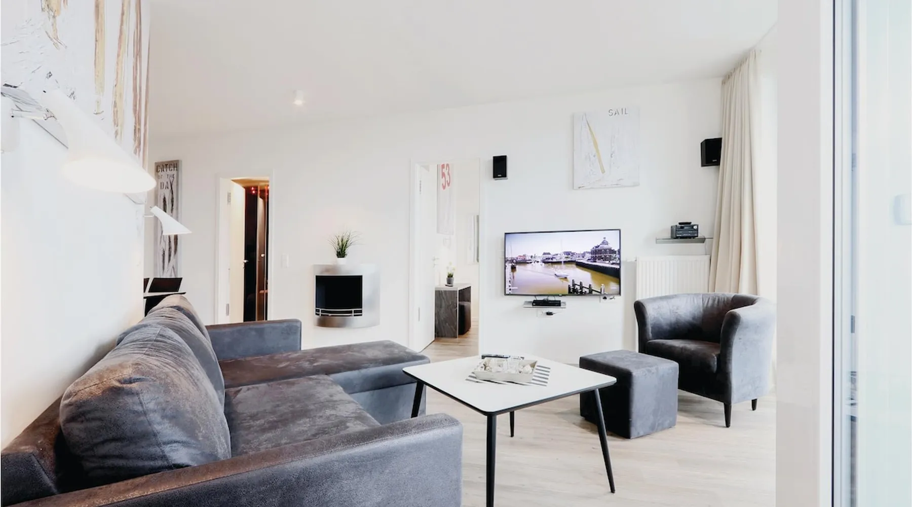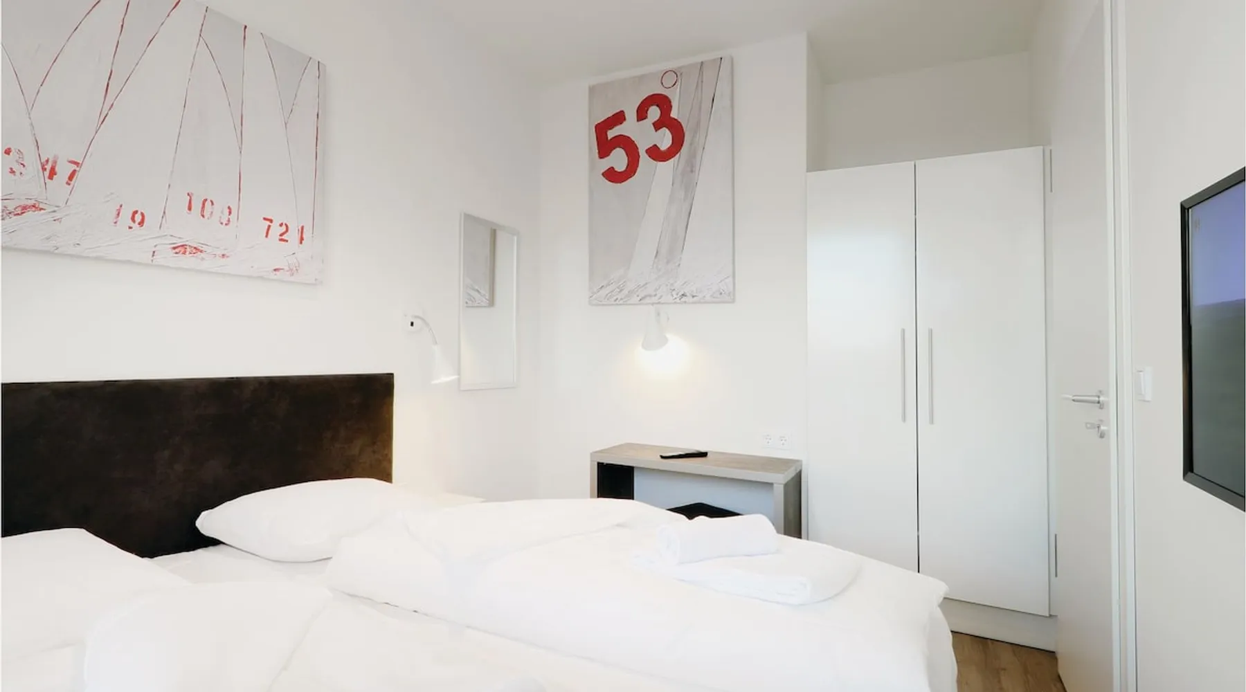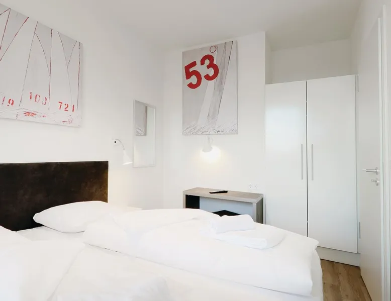 The exclusive vacation apartments in the apartment complex High End combine high-quality equipment, design and a beautiful location directly on the beach of Lübeck-Travemünde. Here you will immediately feel at home. The space The exclusive vacation apartments in the apartment complex High End combine high-quality equipment, design and a beautiful location directly on the beach of Lübeck-Travemünde. Here you will immediately feel at home. Your vacation apartment is located on the 5th floor of the complex, which is why you enjoy a unique view. From here you can look at the Priwall, the sandy beach as well as the harbor exit with the passing ships. The apartment has two separate bedrooms, each with a cozy double bed. In the living area you can make yourself comfortable in front of the cozy light of the bio-ethanol fireplace. The sofa bed is also located in the living area, which offers two more sleeping places. A crib can be placed exclusively in the living room, as there is not enough space in the bedroom. On the balcony, which faces south, you can enjoy the fresh Baltic Sea air and the sound of the waves or have meals together with the family. Here you can enjoy the beautiful view of the Travemündung and the passing ships as well as the Priwall to the fine sandy beach. For a small deposit you can borrow binoculars at the reception, with which you can observe the hustle and bustle of the surrounding area and nature. The bathroom presents itself as your personal wellness area. Here you can warm up in the sauna after a long walk on the Baltic Sea. In addition, the bathroom has a steam bath with rain shower. The modern entertainment system with Blu-Ray player, music system with MP3 connection as well as 3 flat screen TVs provides enough entertainment. All rooms are furnished in Scandinavian style and are bright and flooded with light due to the floor-to-ceiling windows. The modern kitchenette offers enough space for cooking and is equipped with high-quality brand appliances. Here, frahling lovers will find a Nespresso machine (please bring your own capsules), as well as a thermos and hand filter for home brewing, in case you prefer the classic filter coffee after all. The view of this object is in the direction of Priwall beach. The neighboring a-ja resort has a nice spa area with sauna and swimming pool. This can be shared for a fee. All registered NOVASOL guests from the High End receive a 25% discount on the respective entrance fee during your stay. Please note that the offer can only be used during the official rental period, i. e. from 4 pm on the day of arrival to a maximum of 10 am on the day of departure. The location in Lübeck-Travemünde makes the High End an ideal starting point for your vacation. The traditional town offers a beautiful sandy beach, restaurants, cafes, playgrounds and shopping facilities directly on the promenade. For the Travemünde Week, the promenade in front of the High End is transformed once a year (around the end of July) into a large family festival with sailing, gastronomy and a stage program. As a guest at the High End, you are right in the middle of the action and can enjoy the traditional festival right on your doorstep. Ship excursions and sailing tours can be booked directly on site. Other Baltic Sea resorts and the Hanseatic cities of Lübeck and Hamburg are also within easy reach for an excursion. Rental without possibly pictured decorative items such as flowers/candles/fruit. Can comfortably fit up to 4 people Other things to note Please note that: Bed linen and towels are not included in the room rate in 2025; guests can rent them at the property for an additional charge of EUR 25.00 per person, or bring their own. Consumption costs are included in the room rate.