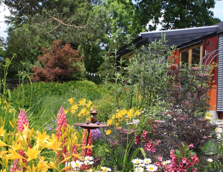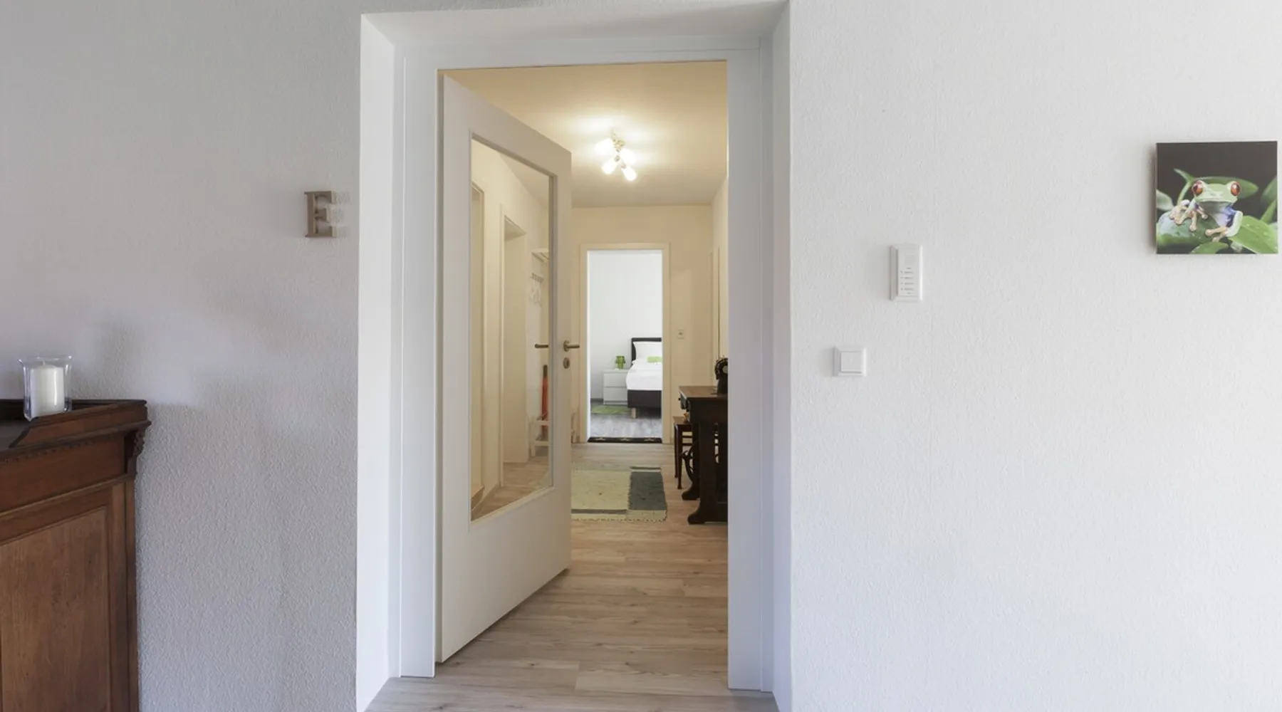 The house has been renovated and lovingly furnished in 2016. The apartment is modern and bright with 140 box spring bed, 140 sofa bed, SATELLITE TV, kitchenette (microwave, fridge/freezer, stove, toaster, coffee maker), small dining area, large daylight bathroom with floor-to-ceiling shower, spacious hallway. The apartment is located on the 1st floor in a quiet location with great views over meadows and fields. Balcony outside. Breakfast can be provided on request (15€/adults), 8€/child 3 to 9 yrs). The space My place is on the outskirts overlooking meadows and fields. Nearby are the volcano bike path, the Boniface route and the Way of St. James. Restaurants, shops and discount stores within walking distance. Herbstein has a small thermal spa. Sauna, a walk-in city wall, various restaurants, ice cream parlour, fast night museum, a beautiful market square with half-timbered houses and an atmosphere of relaxation. Schloß Eisenbach, the "Wartburg Oberhessens" is worth a trip. For shopping, the baroque city of Fulda with its imposing city castle and the cathedral is ideal for shopping. Our local mountain, the Hoherodskopf, has, among other things, summer toboggan run, treetop path, mountain bike trails, hiking trails, etc. Herbstein is always worth a trip. Here you can relax wonderfully. Guest access I offer a very cozy guest lounge with various seating, games and books. Balcony on the same level can be used, great view! In addition, a converted barn with large kitchen (extra fee). Of course, the lovingly landscaped garden with lawn, barbecue area, fountain and barefoot path can also be used. Direct access to a small playground. The bicycle garage is also available to my guests for free. NEW - delicious premium ice cream from the Rhön. For self-catering there is "delicious food in the glass" (also vegan/vegetarian), which only needs to be heated quickly in the microwave. Tasting is worth it. During your stay I am always reachable to my guests, but also leave them their space. Other things to note There are two mugs in my household, but they do not access the guest rooms. Prices higher in high season (Easter, summer and winter holidays).