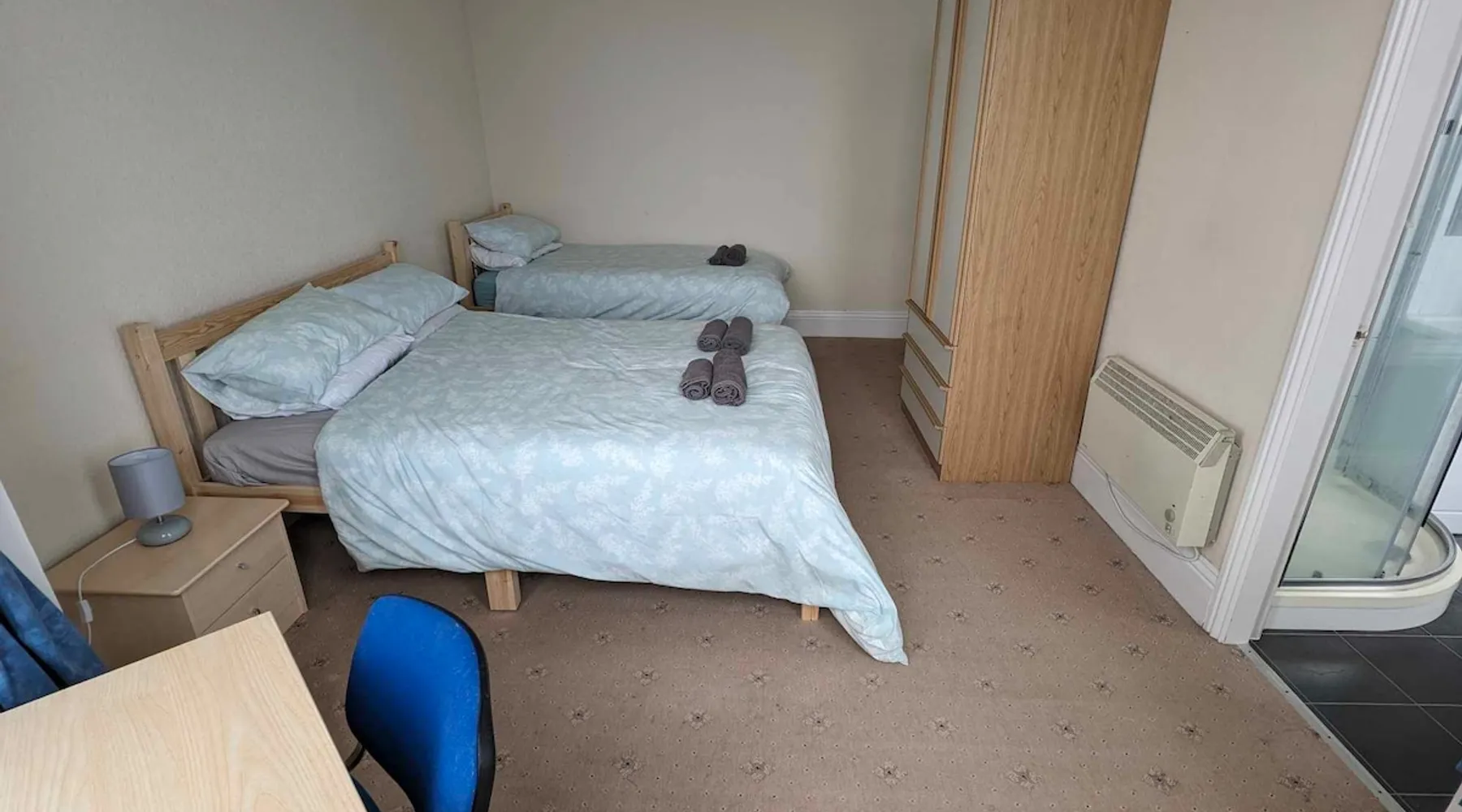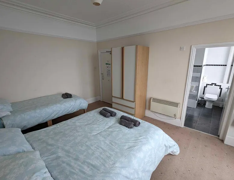 Mallmore has great views over the beautiful, sandy beach of Port St Mary which is a quiet & picturesque village in the south of the Island (25 mins drive from Douglas). Mallmore is great for individuals, couples and small groups. There are a number of listings for different size rooms - check out our other listings (including single and group rooms) by clicking on my profile picture. Mallmore is an Isle of Man Tourist Board registered hostel with a 3* rating. The space This ensuite room with King sized bed and single bed has fabulous views over Port St Mary bay and a well equipped ensuite shower room. There is also a desk and chair, a wardrobe and plenty drawers. Bedding and towels are provided. Guest access You will have access to our shared dining room which includes tea & coffee making facilities, microwave, toaster, refrigerator, crockery & cutlery. Bread, spreads, tea, coffee, milk, sugar and a selection of cereals will also be provided in the dining room which can be accessed at any time. Dishes can be left to be washed by staff. You will also have access to a shared lounge with TV, sofas, armchairs and a brilliant view across Port St Mary bay. A drying room for clean clothes and towels is available with shared access. During your stay Happy to offer advice on anything related to your stay on the Island. Other things to note We request that guests do not drink alcohol in shared spaces within Mallmore. There are local pubs and bars within walking distance. Mallmore is also a no smoking premises, if you wish to smoke please use the benches or grass area across the road.