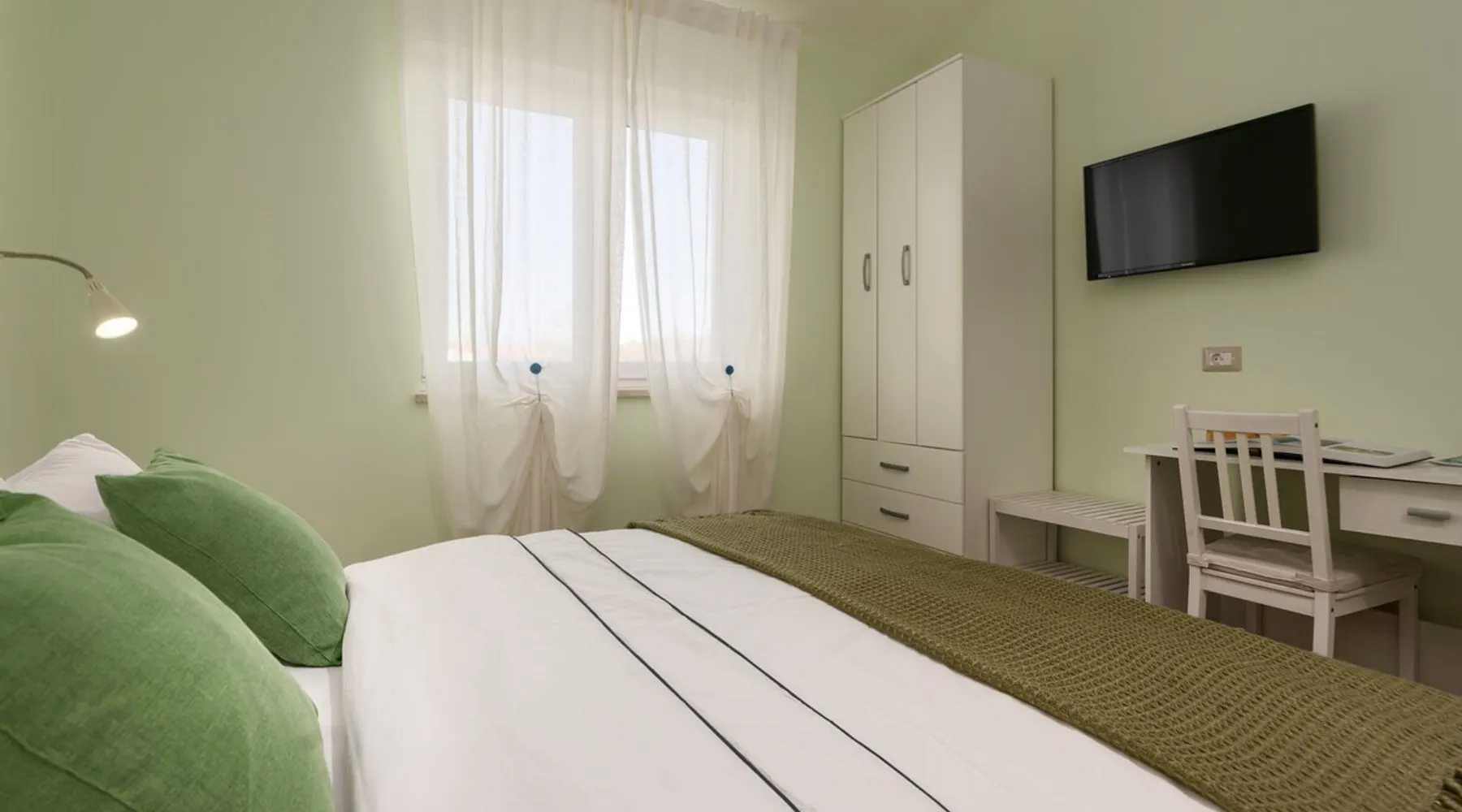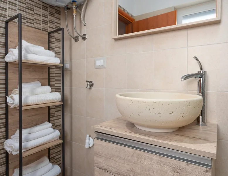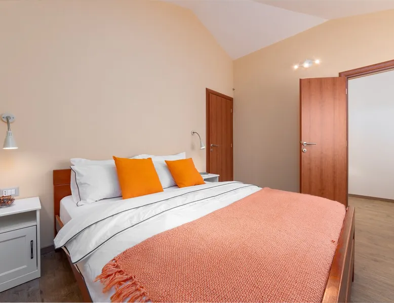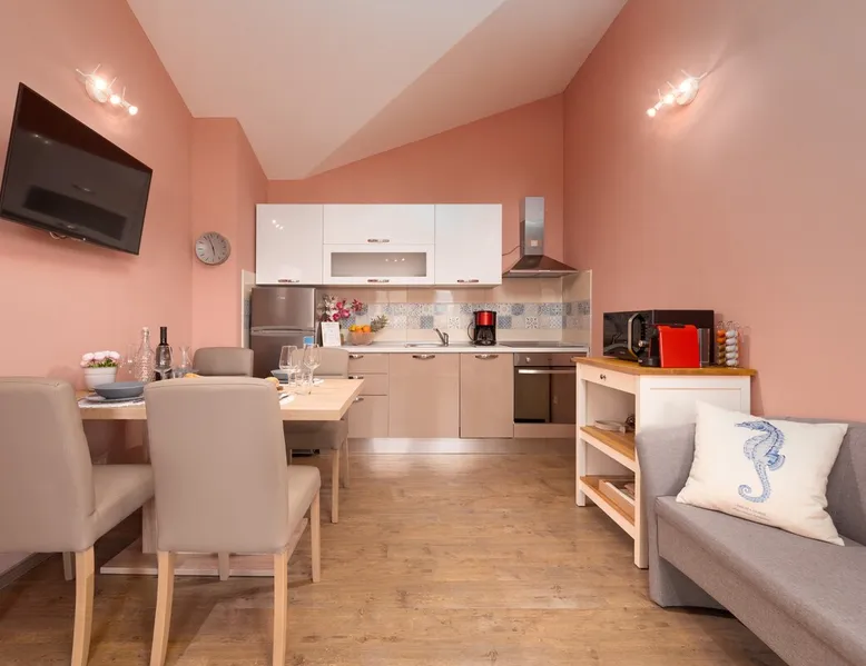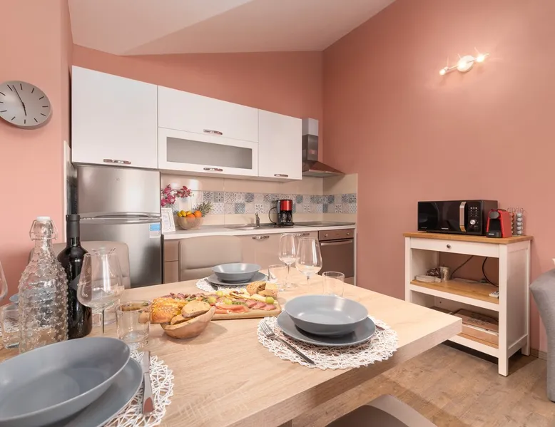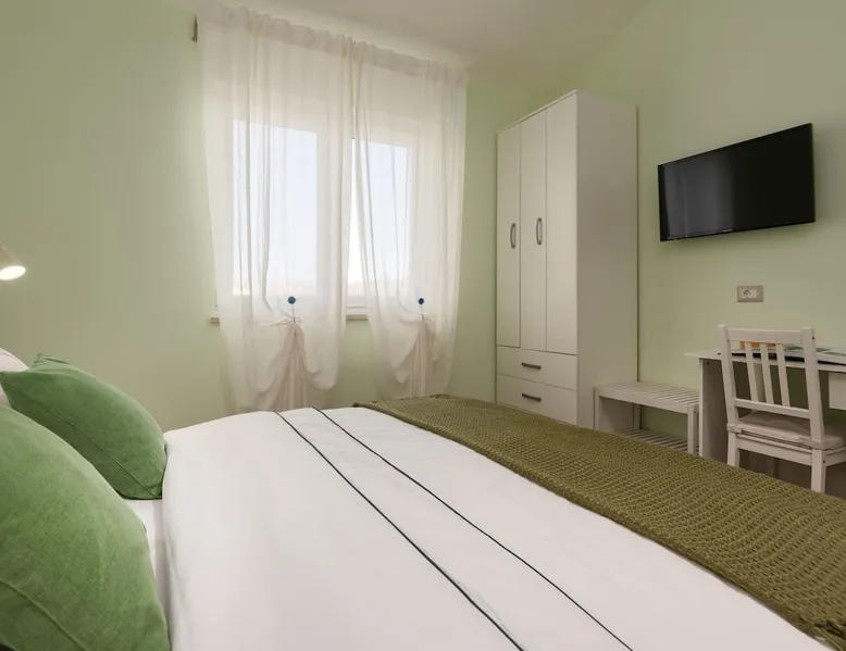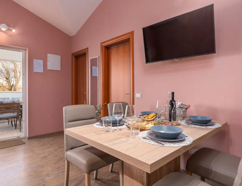 Apartment Karolina's Garden 2 is situated in Funtana, in a newly built family house in the middle of a green area with homegrown vegetables. The apartment has 2 bedrooms, a living area, a kitchen, one bathroom and a terrace overlooking the garden. The apartment is equipped with dishwasher, microwave, a flat-screen TV with satellite channels, air conditioning. The guest can relax in the garden, use the barbecue and enjoy dining outside in the eating area.