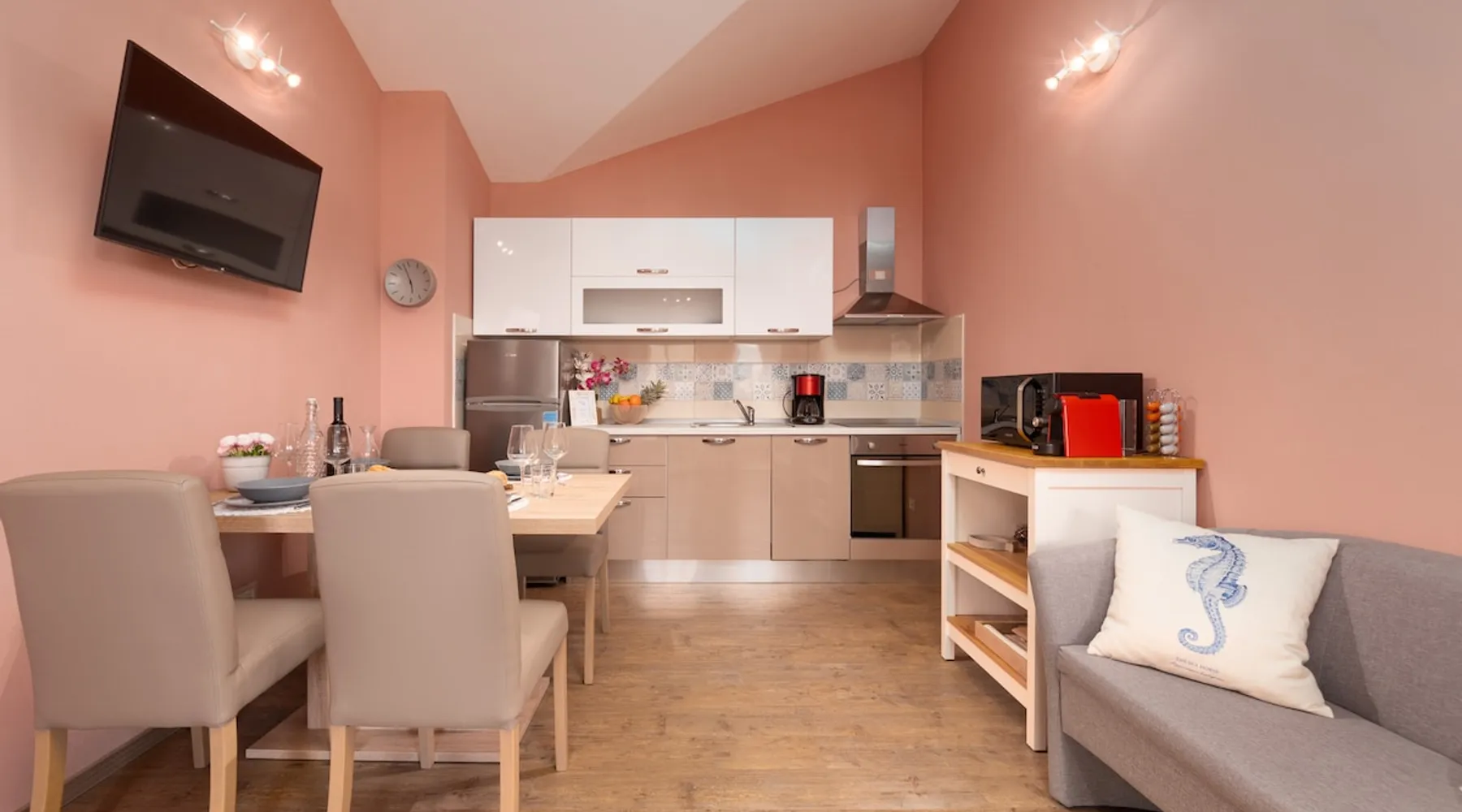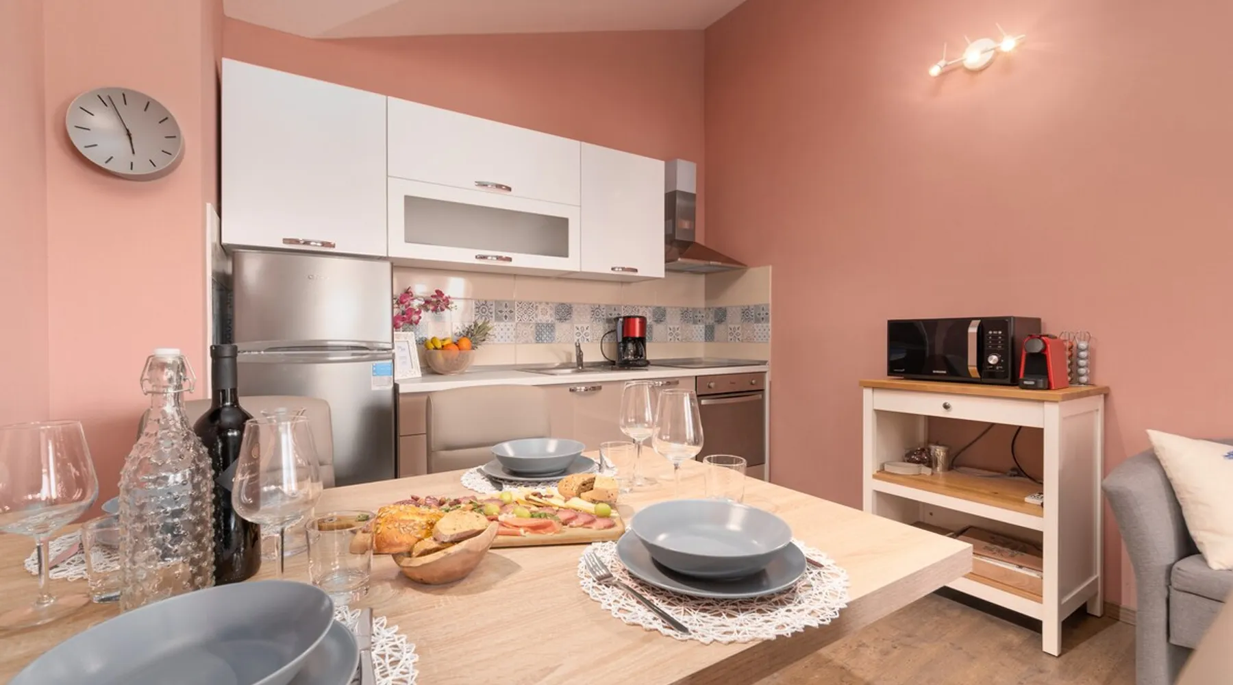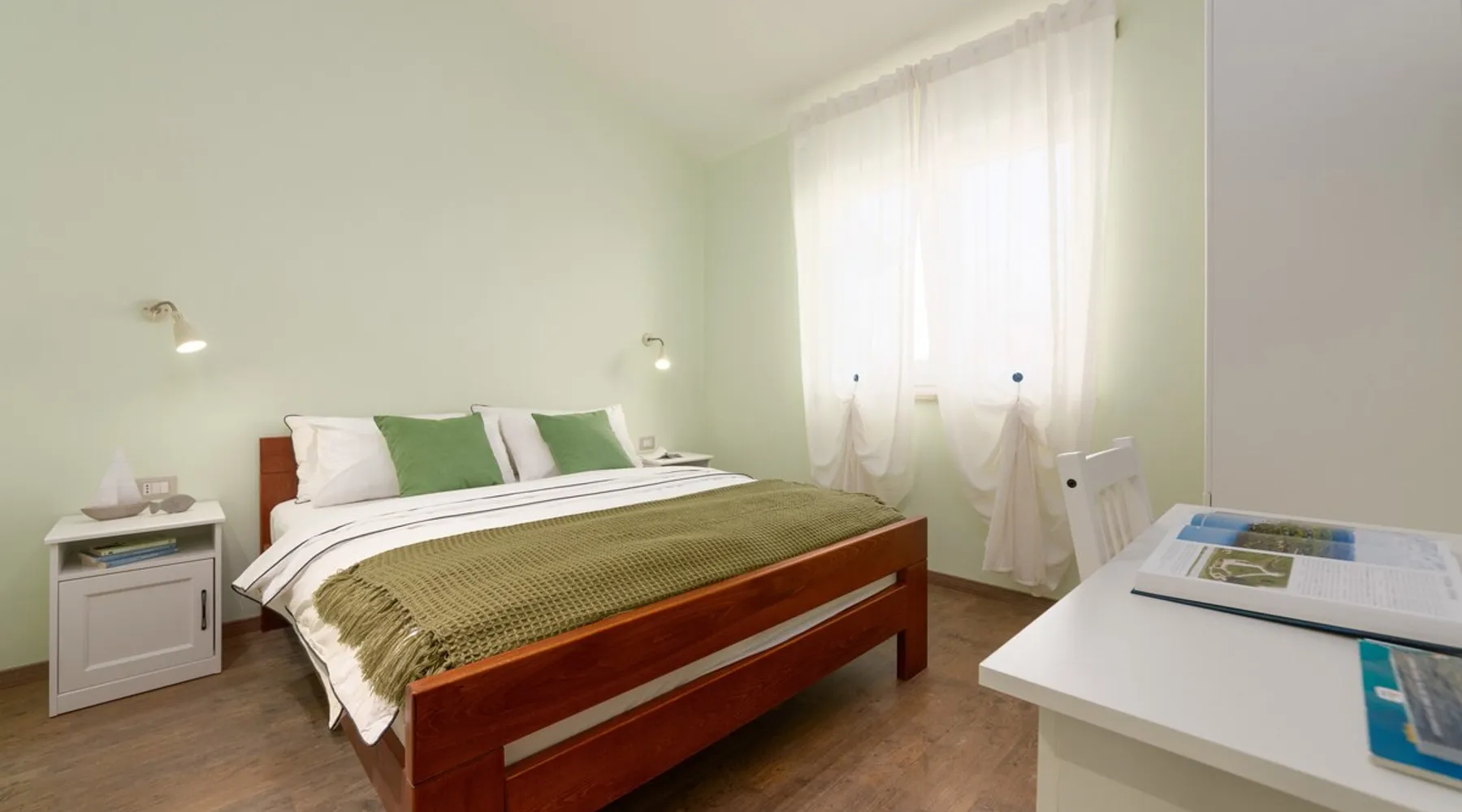Apartment Karolina's Garden 2 is situated in Funtana, in a newly built family house in the middle of a green area with homegrown vegetables. The apartment has 2 bedrooms, a living area, a kitchen, one bathroom and a terrace overlooking the garden. The apartment is equipped with dishwasher, microwave, a flat-screen TV with satellite channels, air conditioning. The guest can relax in the garden, use the barbecue and enjoy dining outside in the eating area.