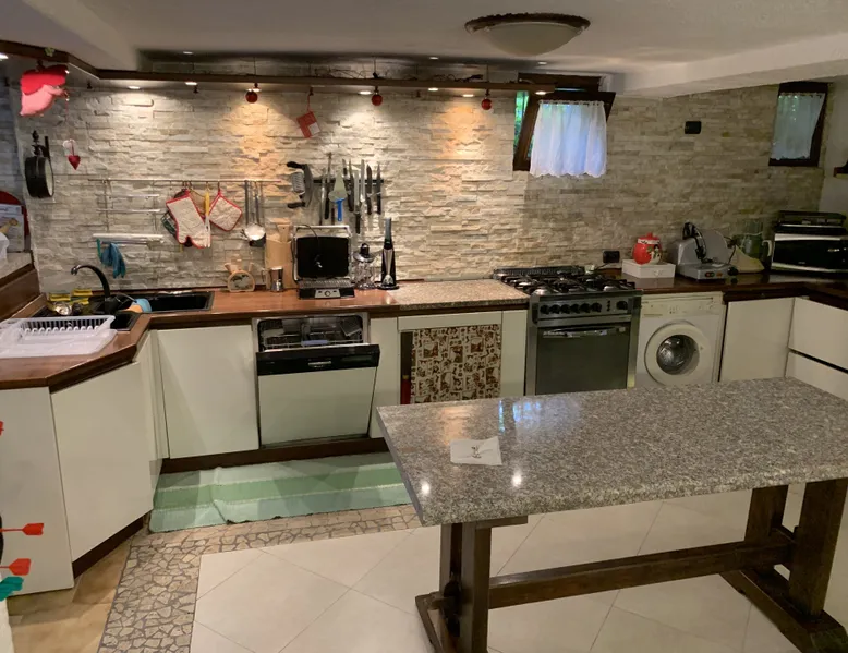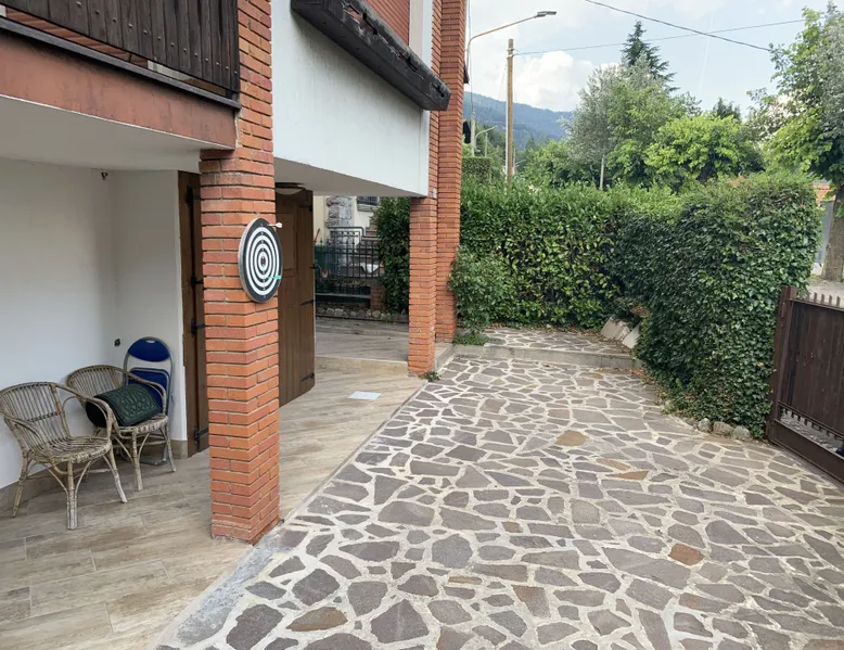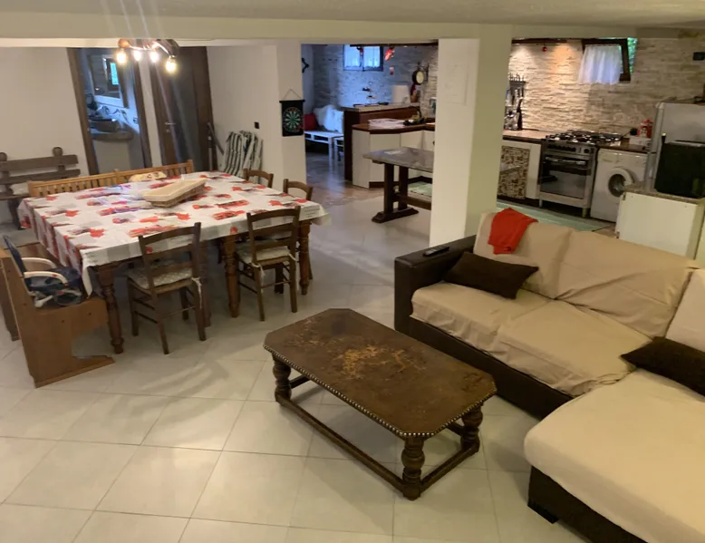 Detached house on 2 floors with porch and tiled garden. Downstairs: Comfortable entrance hall with benches and shoe racks, large kitchen with table for 6, large dining room with two other tables for 10 people each. living room with sofa bed and TV with playstation, newly renovated bathroom with 2 sinks and large shower with multi-function column. On the second floor: Small living room with sofa bed and fireplace, large living room with two sofas and a tavoo for 8, TV with Wii and Bluray dvd, spacious antechamber with access to 2 double bedrooms, a bedroom with 2 bunk beds and baby bed and 2 bathrooms one also has a bath and shower. Nice little balcony with access from both living rooms. sheets and towels provided. Available CDs, DVDs of various types of films, games for children from 2-4 years and 2 folding beds for children up to 4 years