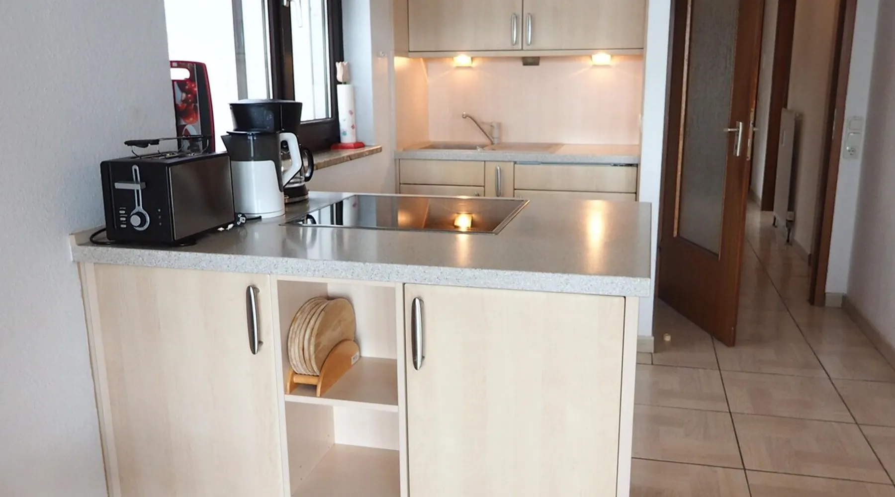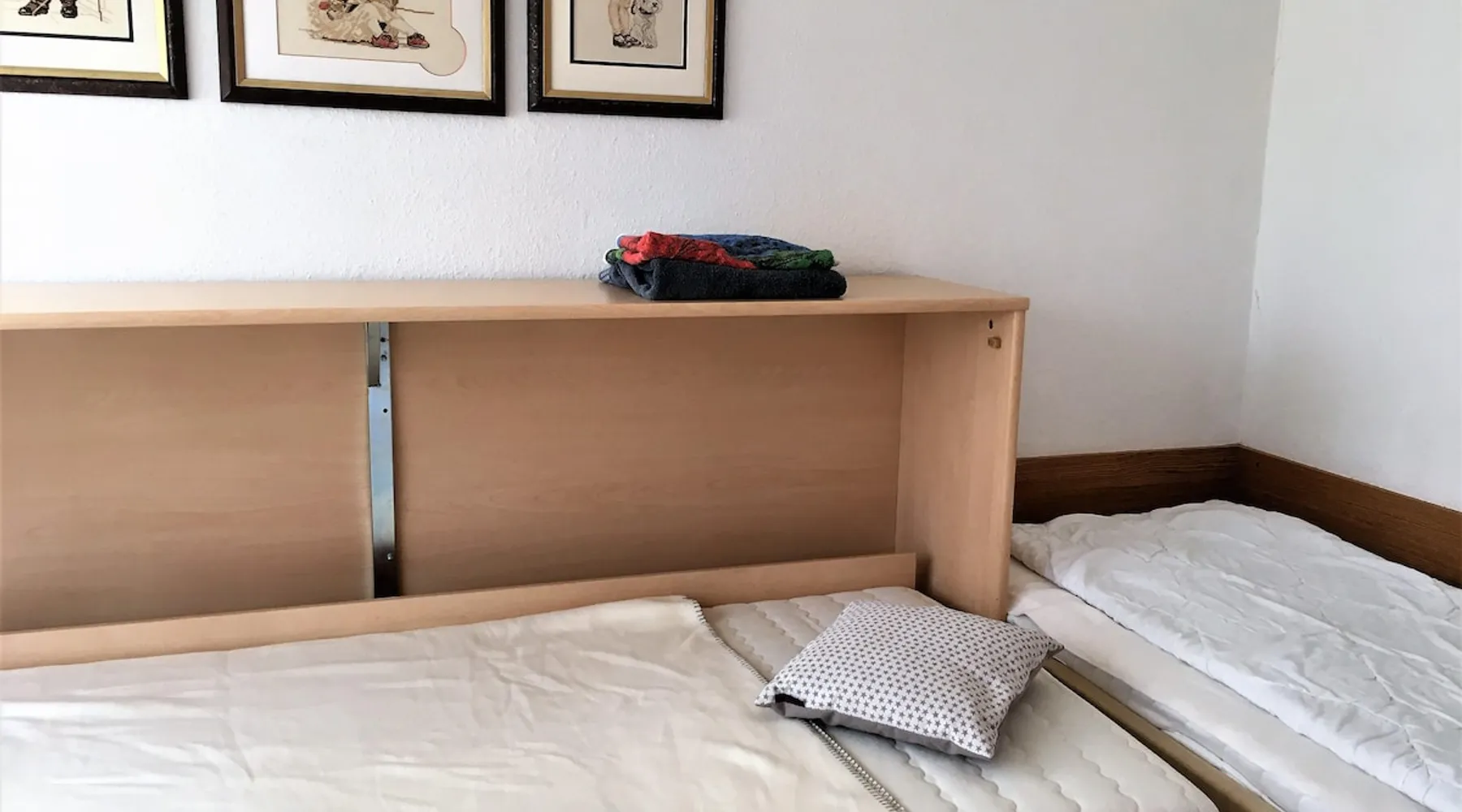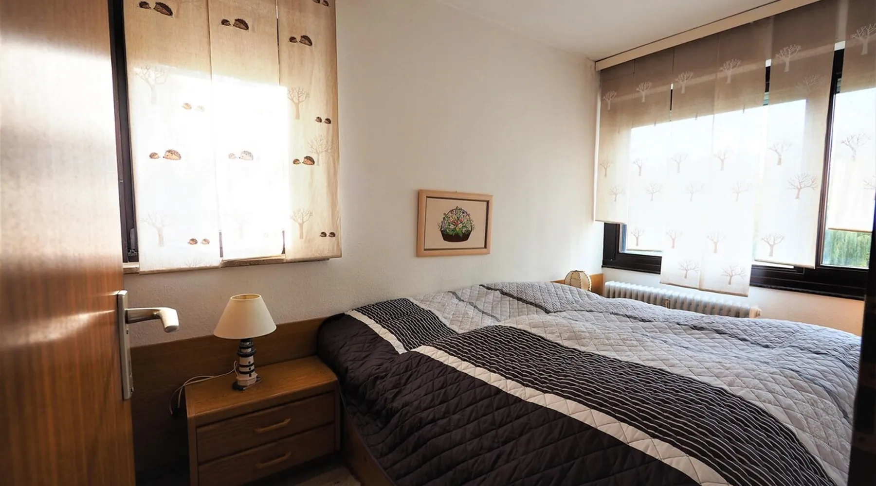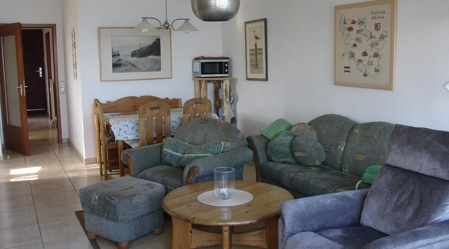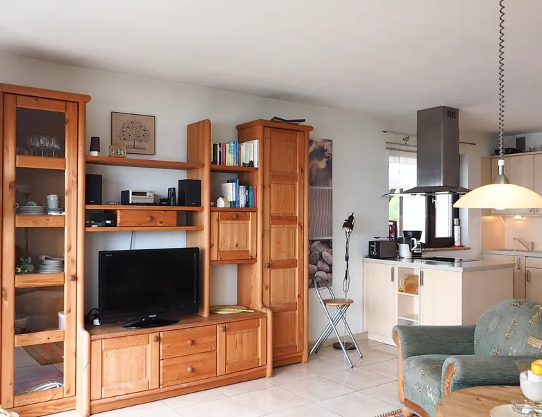Other things to note Apartment in residence Am Hang *contact info removed* % Seeblick! The 52 sqm large 3-room apartment is located on the 4th floor and is easily accessible by lift. From the balcony, you can enjoy the wonderful view on the sea. In cooler weather, sit in the cozy conservatory. The living room is laid out with tiles, there is an upholstered sofa with armchair, coffee table and TV. The open kitchen next to cooking island and dining area is equipped with sufficient utensils. The dining area can accommodate four people. In one of the bedrooms there is a double bed (two standard mattresses), bedside table and a wardrobe for your wardrobe. In the second bedroom there is a single bed, an extra folding bed, a desk and a chair. The bathroom has a bath, vanity and WC. Smoking and bringing pets is allowed in this apartment. In summer you can let off steam with your four-legged friend at the designated beach sections. From early October to late March, all beach sections are open for dogs. A sauna is located in the house and can be used free of charge for you as a holiday guest at certain times. Washing machine and dryer are available at a charge. Bike cellar and surfboard dream available. The use of the car parking space in the underground parking is included.