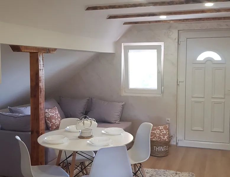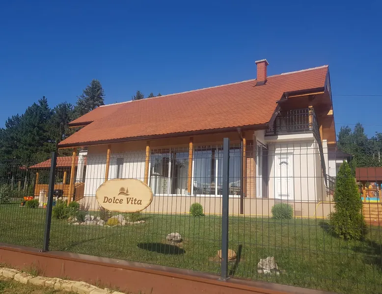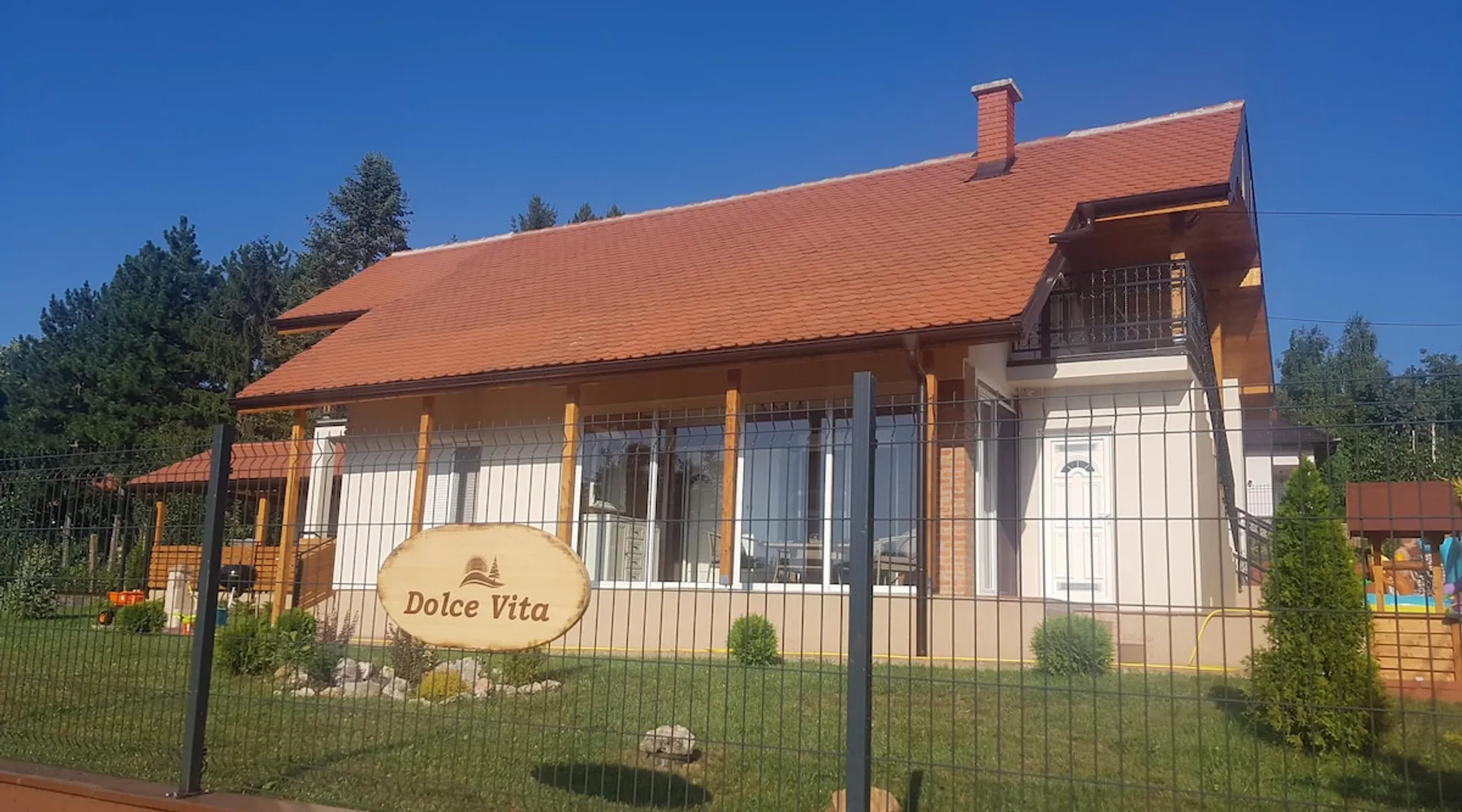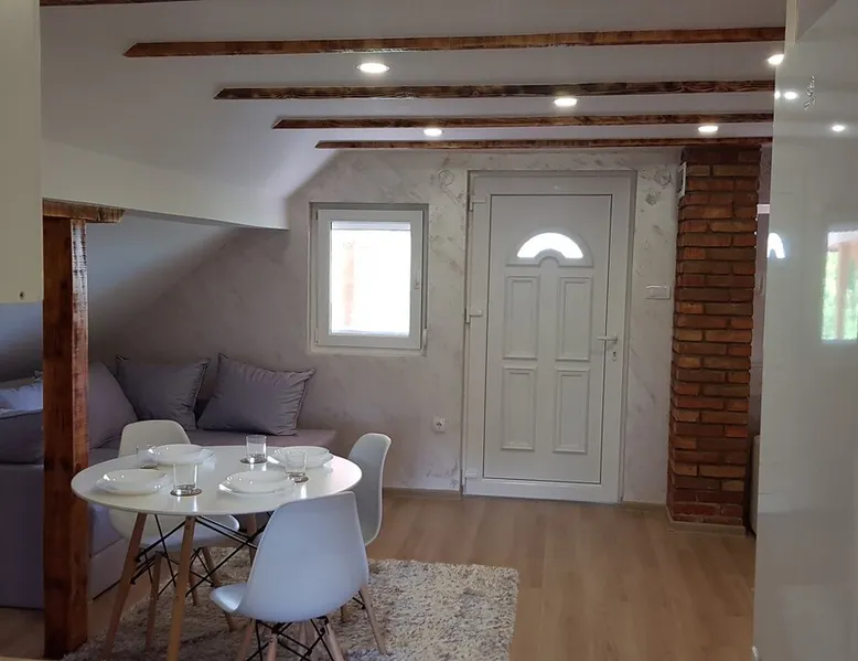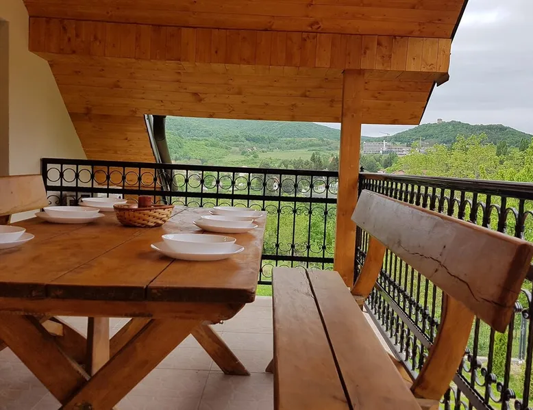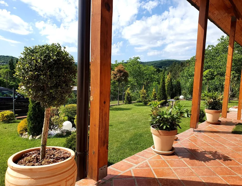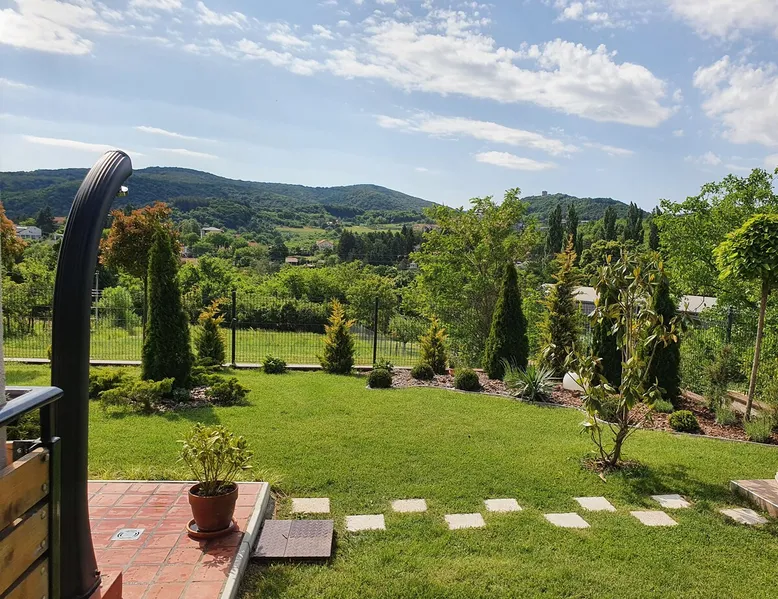 Dolce Vita is a newly built house located in a quiet spot with a breathtaking view on the Fruska Gora mountain and the ancient Vrdnik Tower.This beautiful, children friendly property, offers the perfect environment to enjoy and relax with family and friends. Located in a very peaceful area yet only 5 min walking from Vrdnik Thermal SPA pools. The house consists of two full furnished apartments completely independent and with separate entrances. The apartment one is located upstairs. The space Very well and newly furnished Dolce Vita Apartment 1 is located on the first floor and consists of a large living room including a fully equipped kitchen (fridge with freezer, oven and flat hob) and dining area. A short corridor leads to the bedroom with a big wardrobe; bathroom with shower, washing machine, free toiletries and hair dryer. The apartment has also a private terrace with a wonderful boasting view on the mountains. There is also a wide ground-floor open terrace which is in common for the whole house. The property and its wonderful surrounding with its romantic sunsets offers a great environment for unforgettable bachelorette parties.