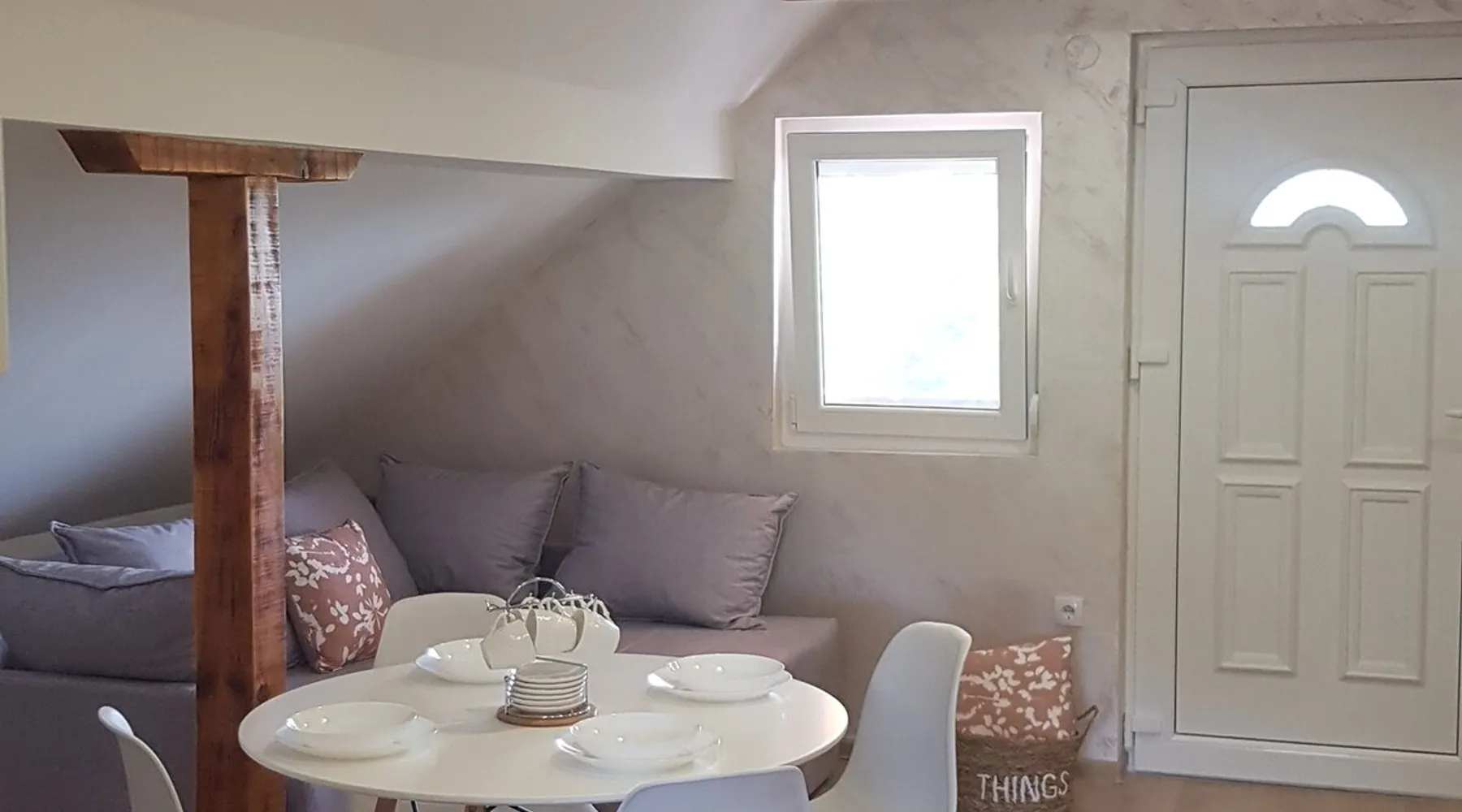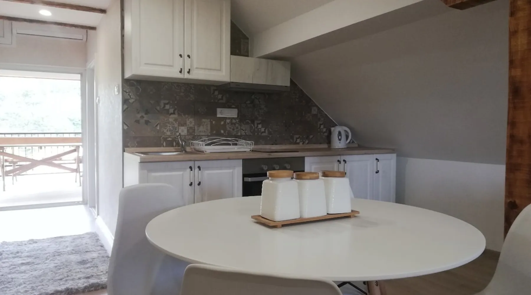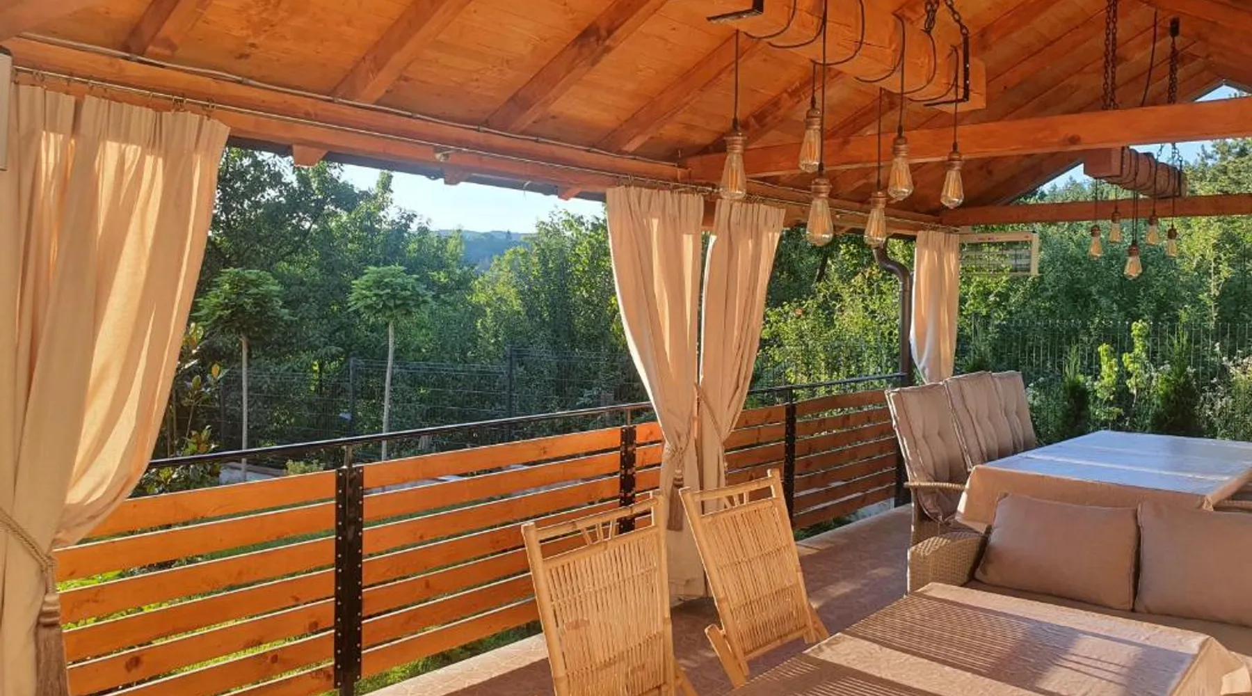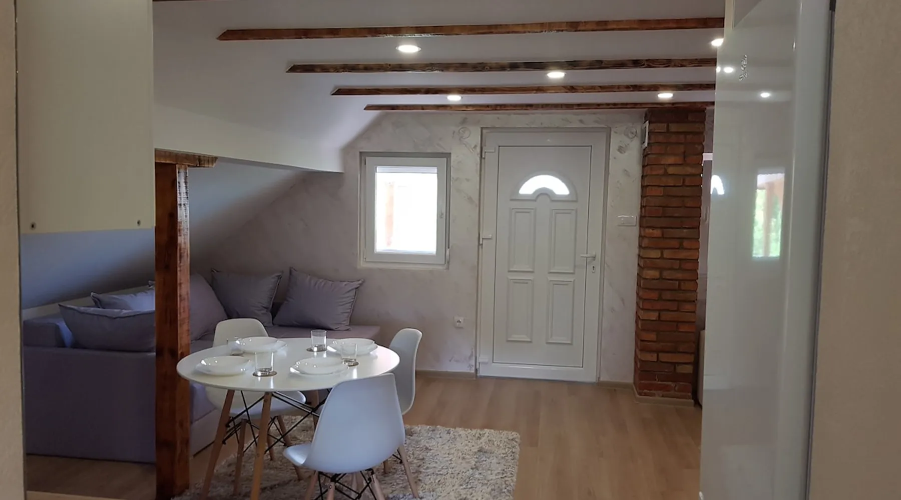 Dolce Vita is a newly built house located in a quiet spot with a breathtaking view on the Fruska Gora mountain and the ancient Vrdnik Tower.This beautiful, children friendly property, offers the perfect environment to enjoy and relax with family and friends. Located in a very peaceful area yet only 5 min walking from Vrdnik Thermal SPA pools. The house consists of two full furnished apartments completely independent and with separate entrances. The apartment one is located upstairs. The space Very well and newly furnished Dolce Vita Apartment 1 is located on the first floor and consists of a large living room including a fully equipped kitchen (fridge with freezer, oven and flat hob) and dining area. A short corridor leads to the bedroom with a big wardrobe; bathroom with shower, washing machine, free toiletries and hair dryer. The apartment has also a private terrace with a wonderful boasting view on the mountains. There is also a wide ground-floor open terrace which is in common for the whole house. The property and its wonderful surrounding with its romantic sunsets offers a great environment for unforgettable bachelorette parties.