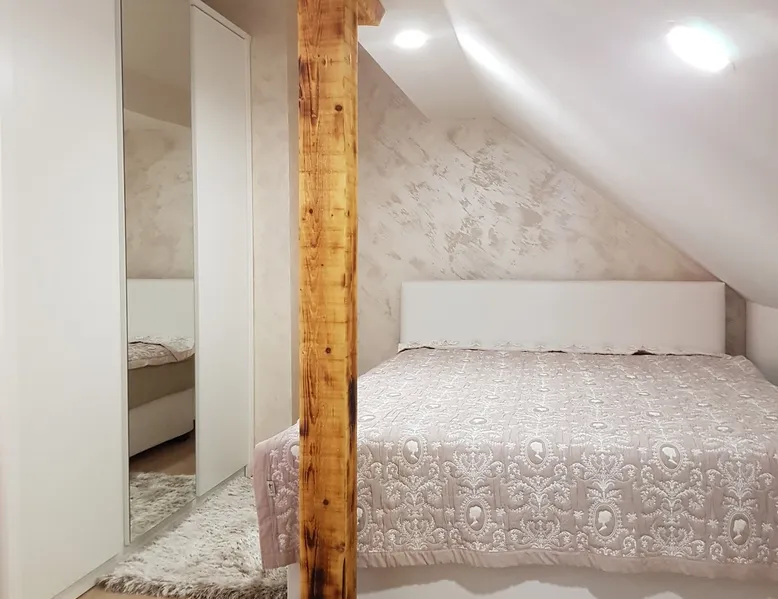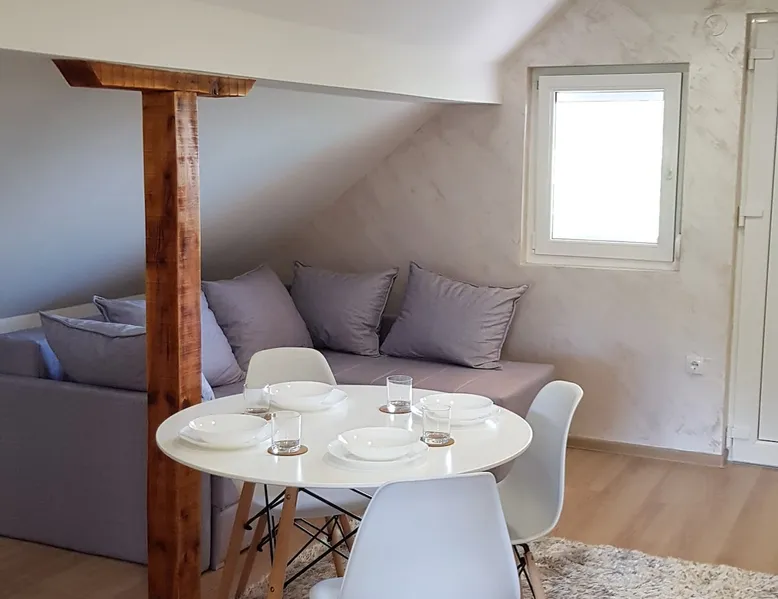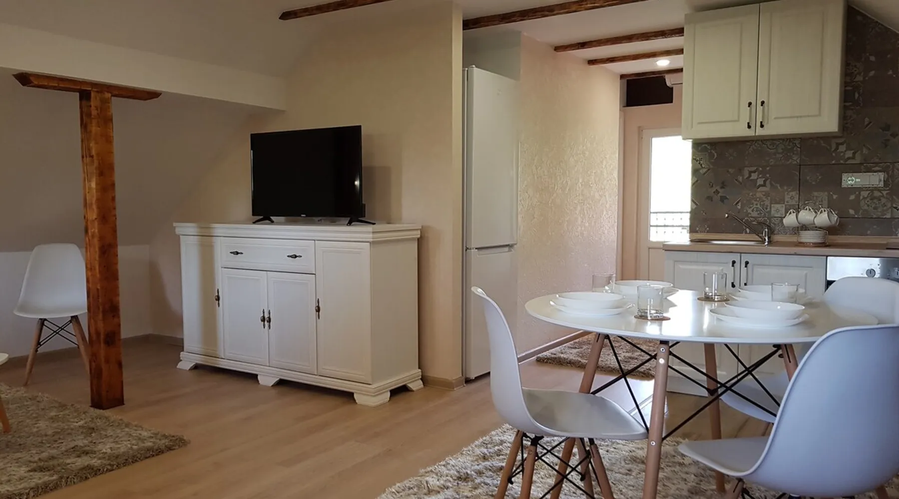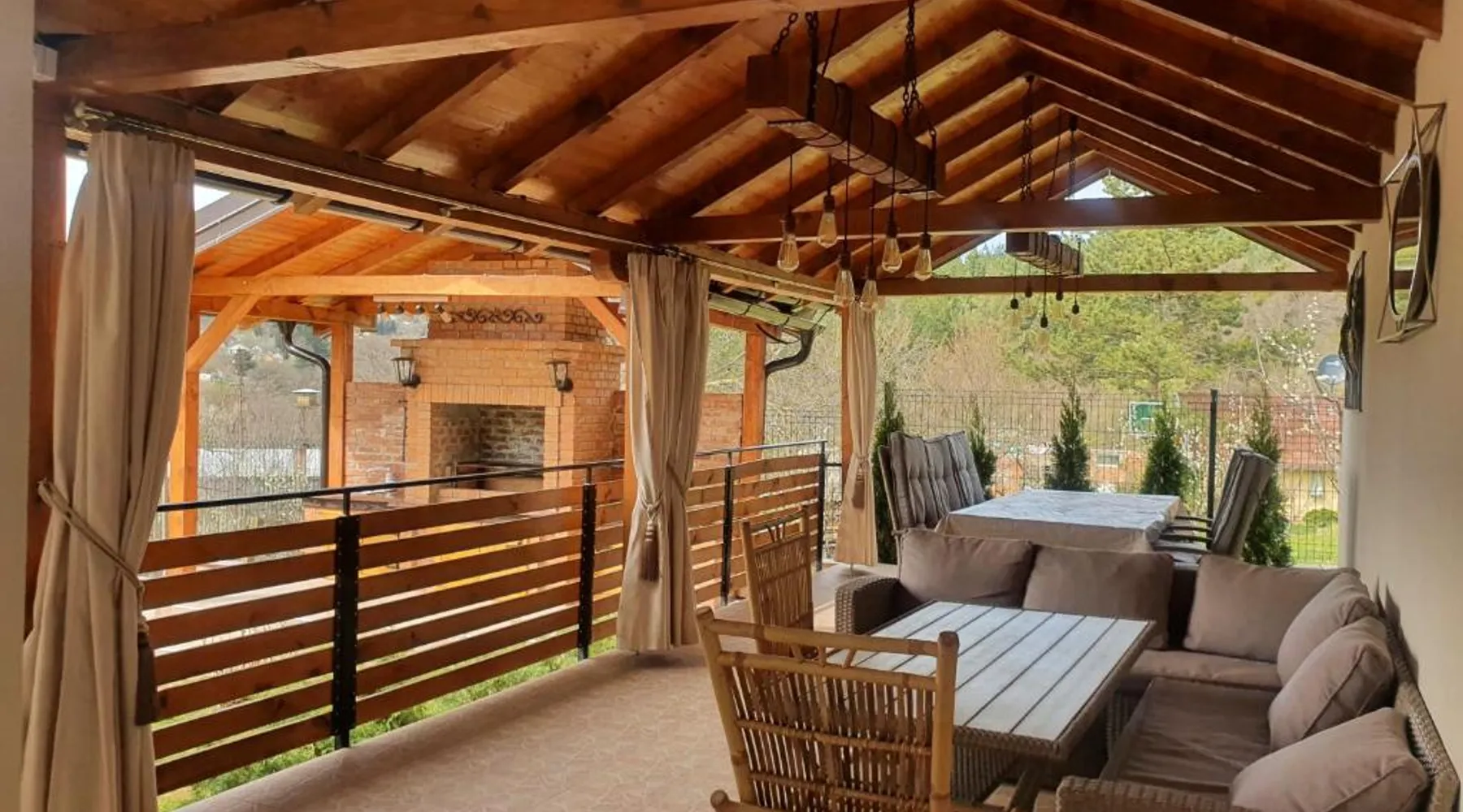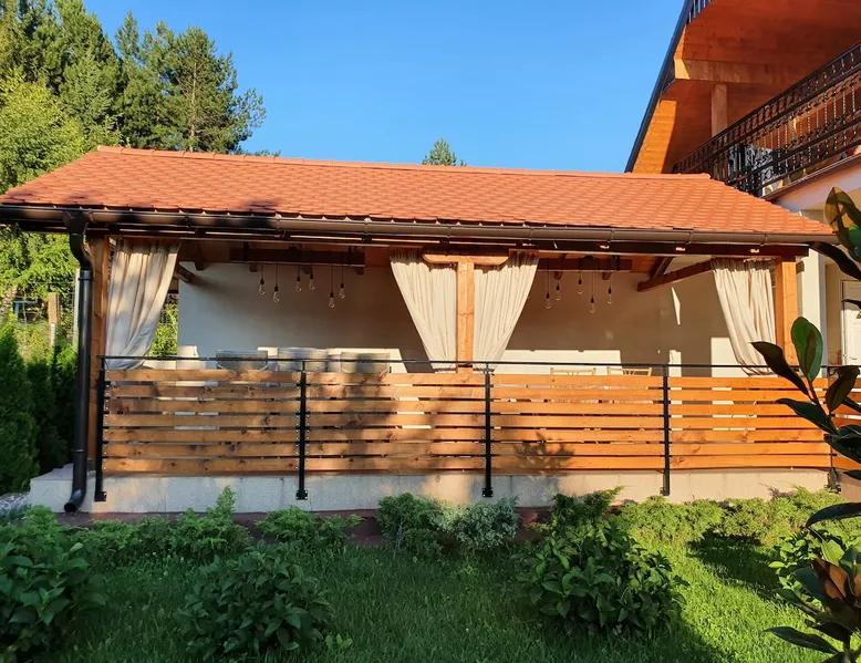 Dolce Vita is a newly built house located in a quiet spot with a breathtaking view on the Fruska Gora mountain and the ancient Vrdnik Tower.This beautiful, children friendly property, offers the perfect environment to enjoy and relax with family and friends. Located in a very peaceful area yet only 5 min walking from Vrdnik Thermal SPA pools. The house consists of two full furnished apartments completely independent and with separate entrances. The apartment one is located upstairs. The space Very well and newly furnished Dolce Vita Apartment 1 is located on the first floor and consists of a large living room including a fully equipped kitchen (fridge with freezer, oven and flat hob) and dining area. A short corridor leads to the bedroom with a big wardrobe; bathroom with shower, washing machine, free toiletries and hair dryer. The apartment has also a private terrace with a wonderful boasting view on the mountains. There is also a wide ground-floor open terrace which is in common for the whole house. The property and its wonderful surrounding with its romantic sunsets offers a great environment for unforgettable bachelorette parties.