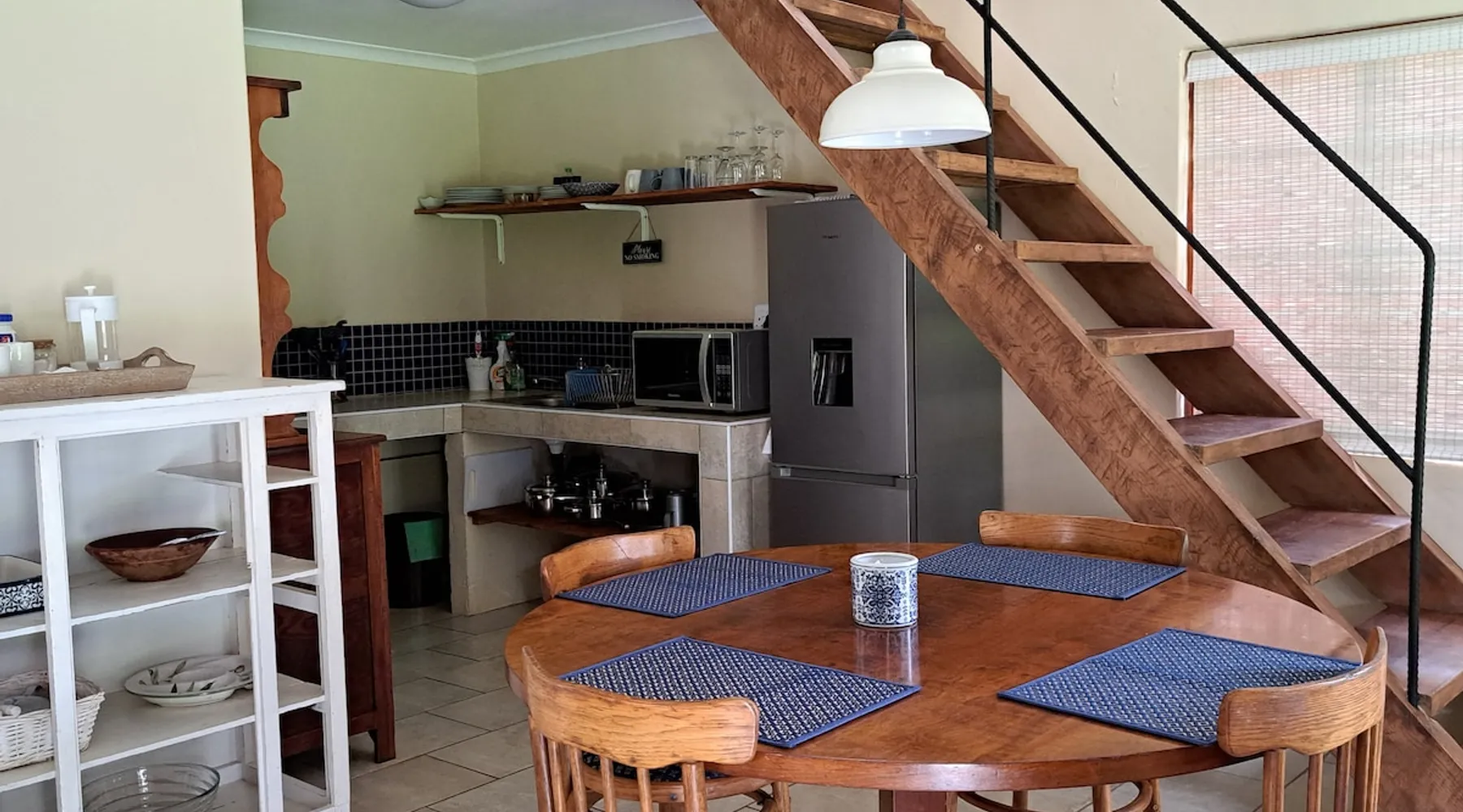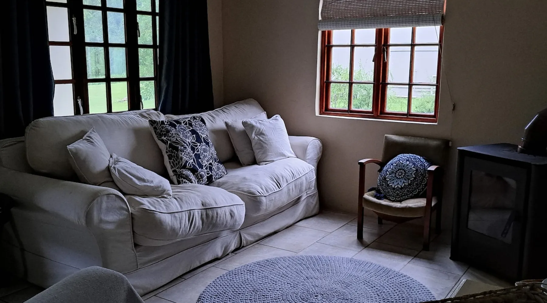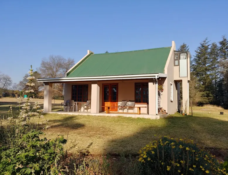 Self-catering cottage. Spacious main en suite shower, open plan kitchen & living room with wood burning firebox & tv, wooden stairs to loft with two 3/4 beds + own shower overlooking farmland. Ideal for young couples or family of 4 for weekend stay in the KZN Midlands. Equipped with large fridge/freezer, gas hob, microwave and other basic kitchen essentials. No oven. There is a weber braai and basic veranda furniture. Bushbuck and hare come out in the evening. Sunny in the morning. The space Eclectically furnished. Easy to clean. Fresh and simple. Enjoy the Midlands - whether it be for a wedding or a lunch at neighbouring wine farm / local restaurants or meandering the R103 routes - and come back for a comfortable night in front of the wood burning fireplace or a braai under the stars. Quiet. Rural. Yet not far from N3. Guest access Let us know when you get to the electronic gate and once you get up the steepish drive, the cottages are situated on a large grassy area with access to hidden rocky area under the gum and pines growing nearby. You are welcome to walk the approximately 5ha sloping property. Other things to note Wild Hare Cottages are self-catering. Water is from a borehole and delicious to drink. Power is from Eskom and subject to load shedding but rechargeable light bulbs and lamps are available. Our gas showers are now working off a gravity tank system and no longer affected by load shedding. Wi-fi is available through a satelite provider but may be affected by load shedding in some areas.