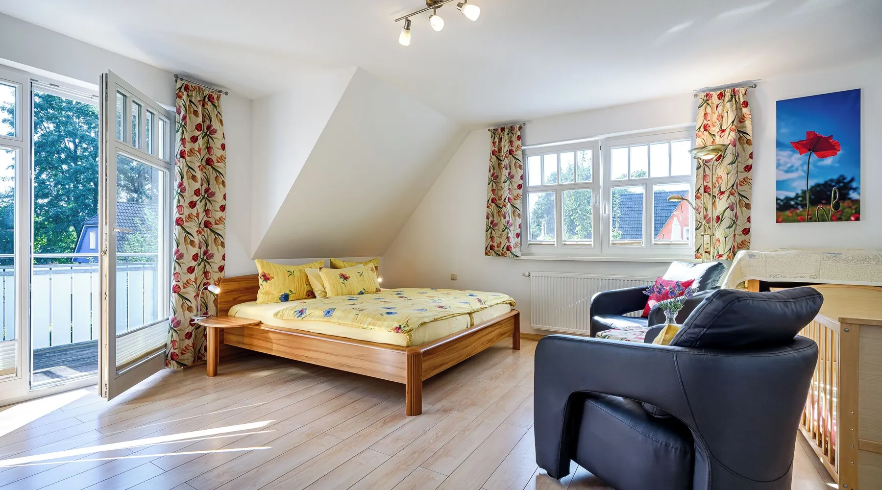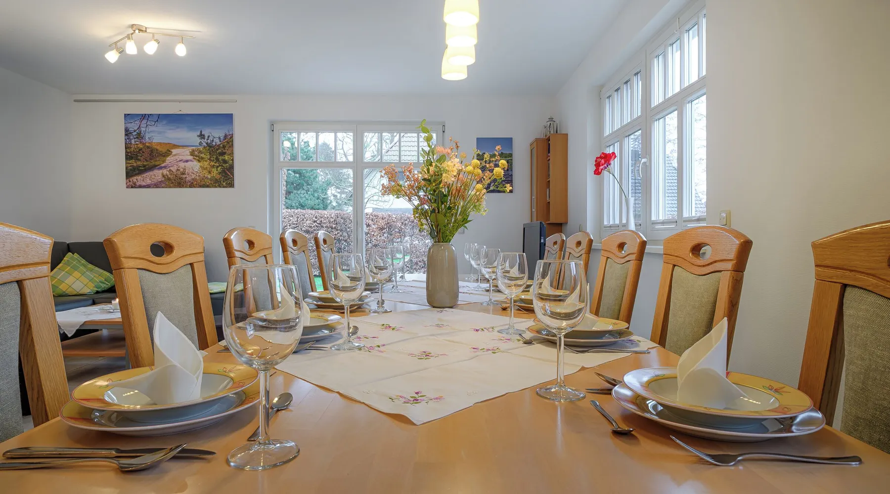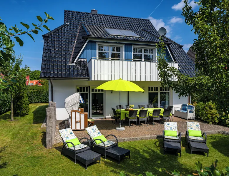 This exclusive holiday home is located in a quiet, idyllic, yet central location of the Baltic Sea resort of Prerow. The pier and the fine sandy Baltic Sea beach can be reached in about 15 minutes. The house captivates with its exposed location with south orientation, its maritime architecture paired with a spacious and high-quality interior. The ground floor is completely barrier-free and wheelchair-friendly. On the spacious property (650 sqm) - completely fenced and bordered by hedges - you can enjoy all holiday joys extensively with a larger family or with your friends. In the house you have a cozy fireplace incl. Wood, a high-quality, spacious sauna and 3 bathrooms, a guest toilet and 5 bedrooms with partly private bathrooms are available. Overall, the house with its 190 square meters offers enough space for 2 to 10 people. Service for our guests: We write service 'capital'. When you arrive, the beds are already made and the vacation can begin. You only have to choose who sleeps in which bedroom dedicated to a well-known painter. Of course, you will receive gift vouchers from us, perhaps for a milestone birthday in your Luisenlund holiday home in Prerow, including a welcome gift and a surprise. Free beds upon arrival, free towels - initial equipment, free tea towels to use, free internet, free phone German landline free beach chair at the house free firewood, free of charge up to 3 highchairs, 2 cots (mattress covered), 1 travel cot free use of washing machine and dryer free 3 - 4 parking spaces at the house