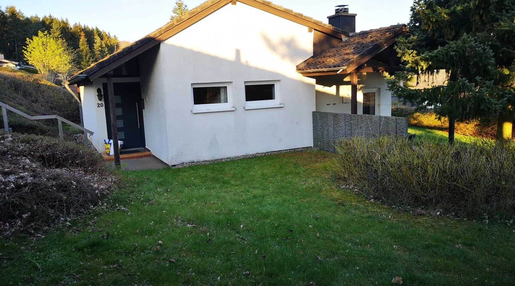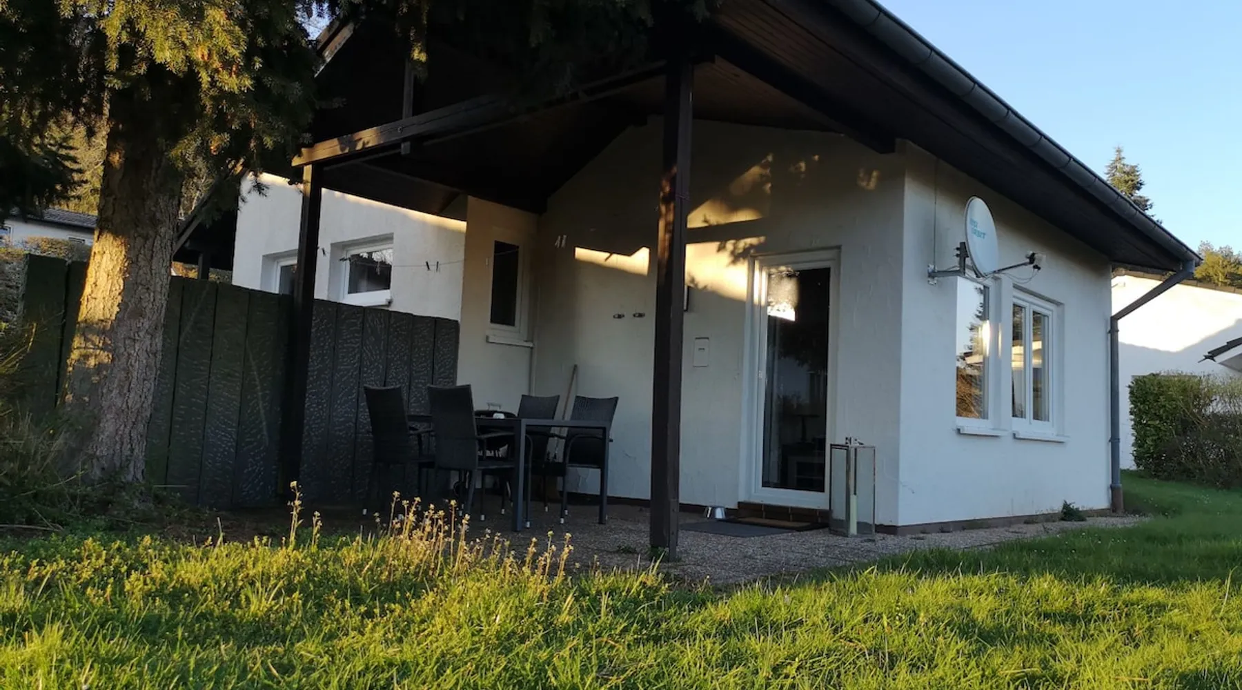 Modern cottage, bright and friendly. Modernized 2023. The space The modern, brightly designed bungalow, at Split Level construction, is situated at a holiday park with a hillside location, within walking distance of Bitburg reservoir. The place is called Biersdorf am See. The cozy house with 2 bedrooms, a bathroom and a well-cut kitchen/ living area, invite you to relax. A furnished, covered terrace with a barbecue and a possibility of completing the offer. Parking is right by the house. At the reservoir, there is a pedal boat and canoe rental, a small gastronomy, lounger or picnic meadow, a lake and a water playground are some attractions on the lake directly. Unfortunately swimming in the lake is not permitted. Guest access All rooms are at the guests' disposal. We just have some private things in a closet. Other things to note In the house there is a collection with brochures, hiking maps and flyers, from guests who have visited the beautiful place, hiking routes, squares or attractions in the area. Feel free to be inspired.... There are also ideas for the little ones.