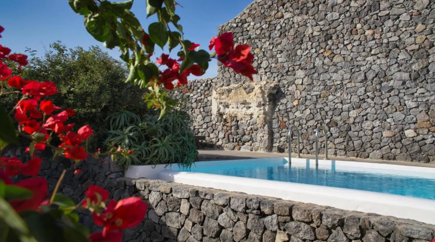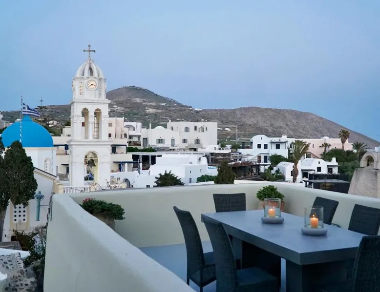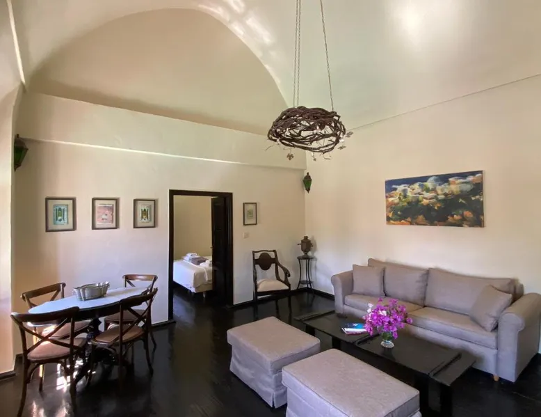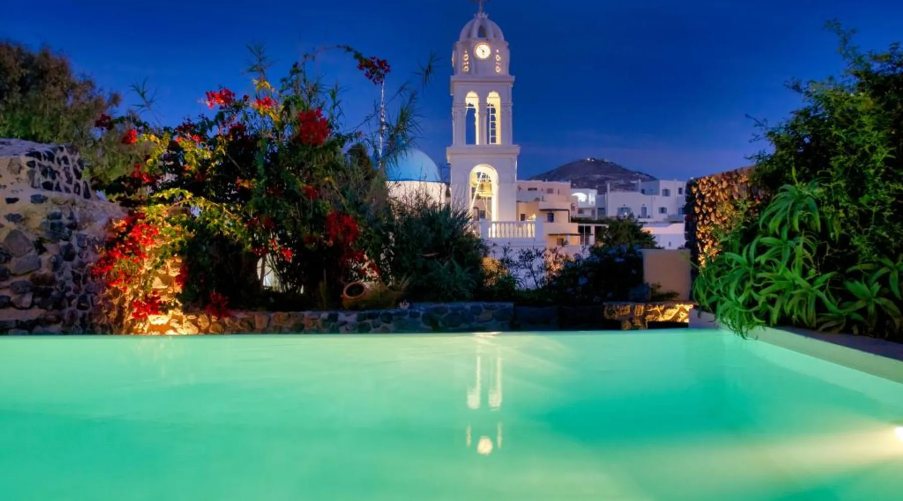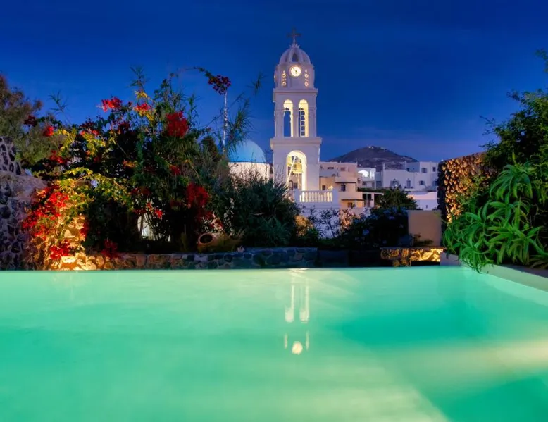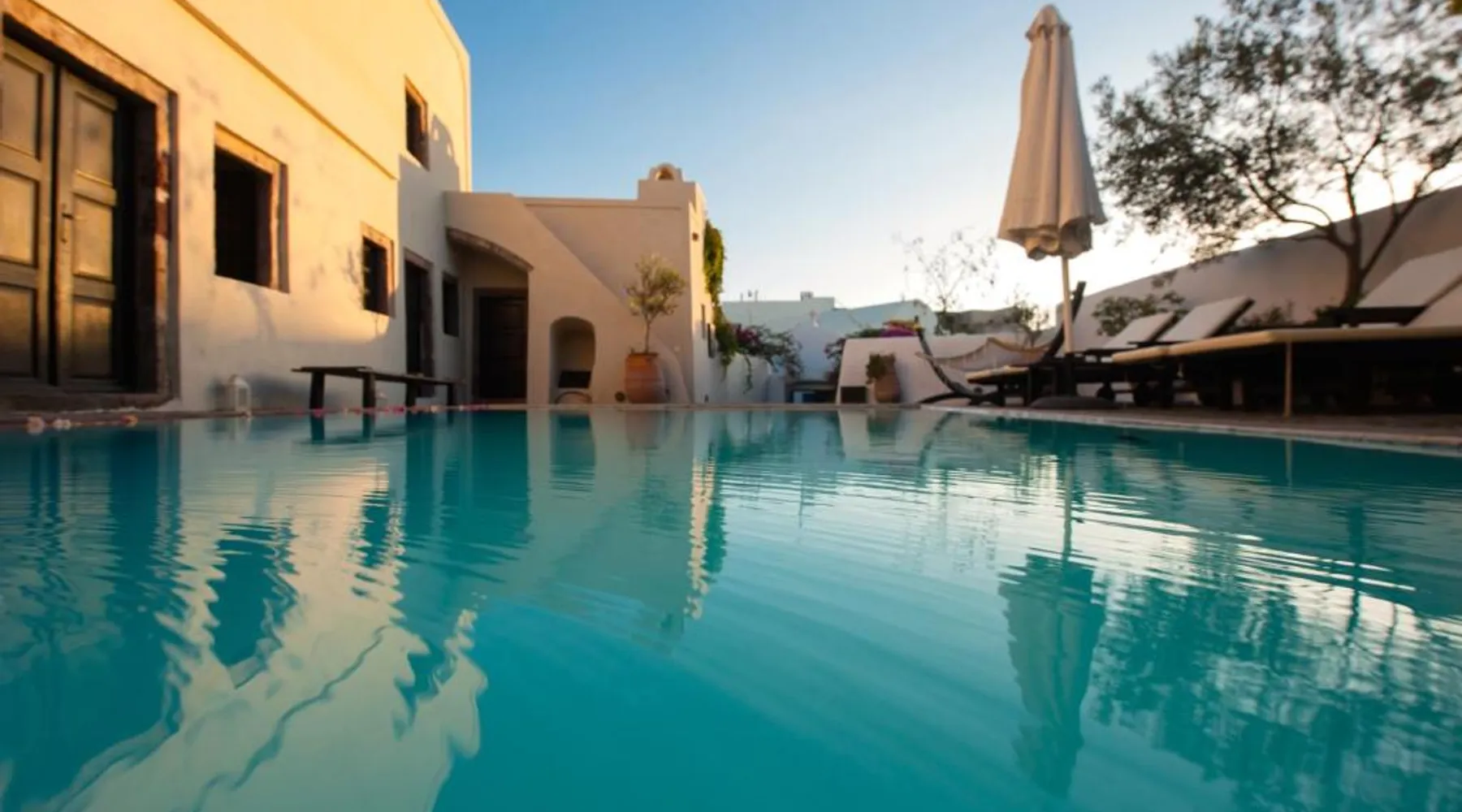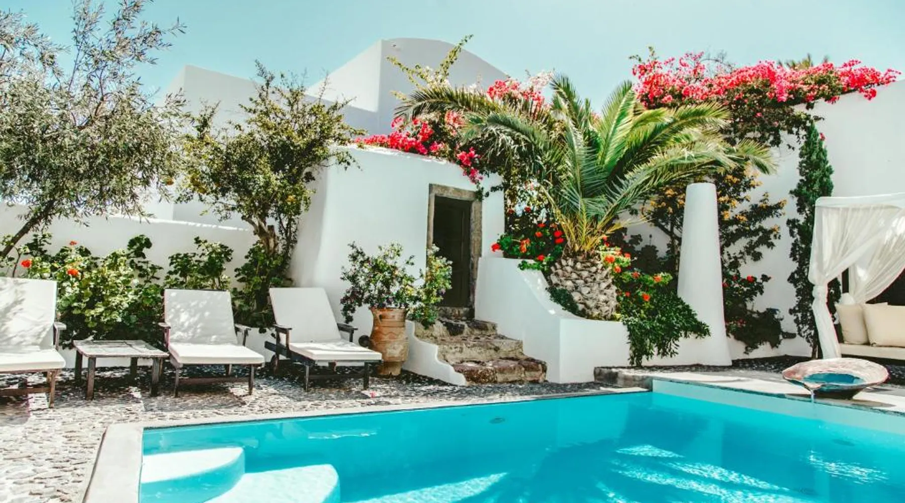 Elegant Accommodations: Santorini Heritage Villas in Megalochori offers a villa with a swimming pool, sun terrace, and lush garden. Guests enjoy free WiFi, air-conditioning, and a fully equipped kitchenette. Comfortable Amenities: The property features private check-in and check-out, a paid airport shuttle, concierge service, and housekeeping. Additional amenities include a washing machine, streaming services, and barbecue facilities. Prime Location: Located 4.3 mi from Santorini International Airport, the villa is less than 0.6 mi from Thermis Beach. Nearby attractions include Santorini Port (2.8 mi) and the Archaeological Site of Akrotiri (3.7 mi). Scuba diving is available in the surroundings. Guest Satisfaction: Highly rated by guests, Santorini Heritage Villas ensures a pleasant stay with excellent facilities and services. Historic villa, 164 feet from the center. Features a secluded courtyard, with garden and Moroccan-style pool. There is also a smaller courtyard where the guests can dine. The courtyard leads to a spacious living and dining area. There are two bedrooms with one bathroom shared between them. The villa offers a fully equipped kitchen and free Wi-Fi. Please note that there is a 50-yards distance between the villas.