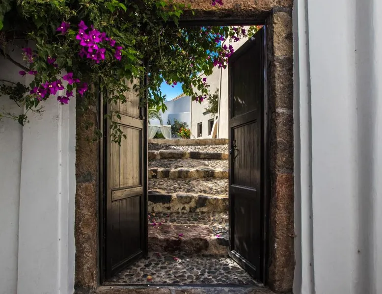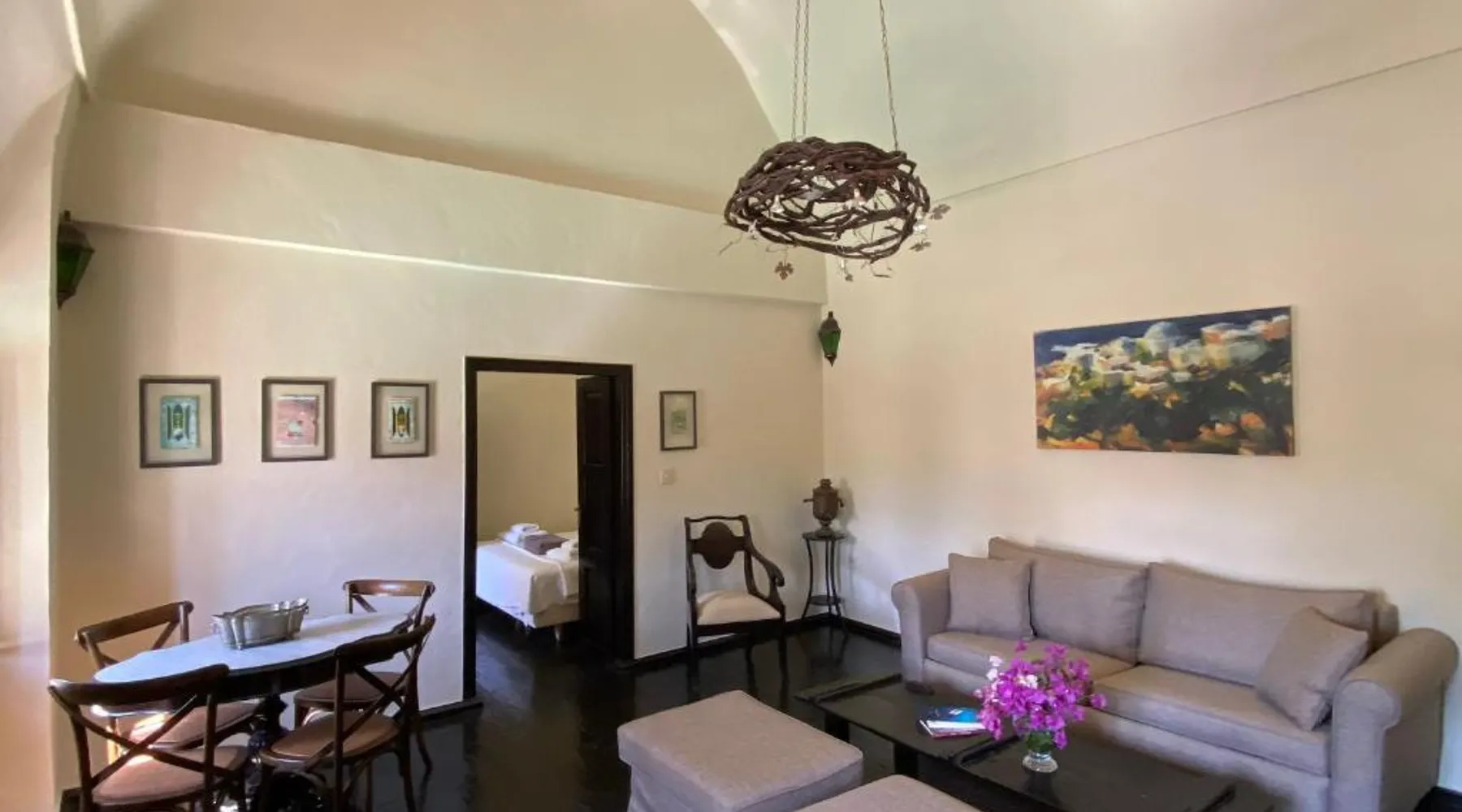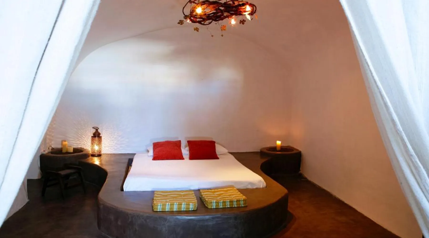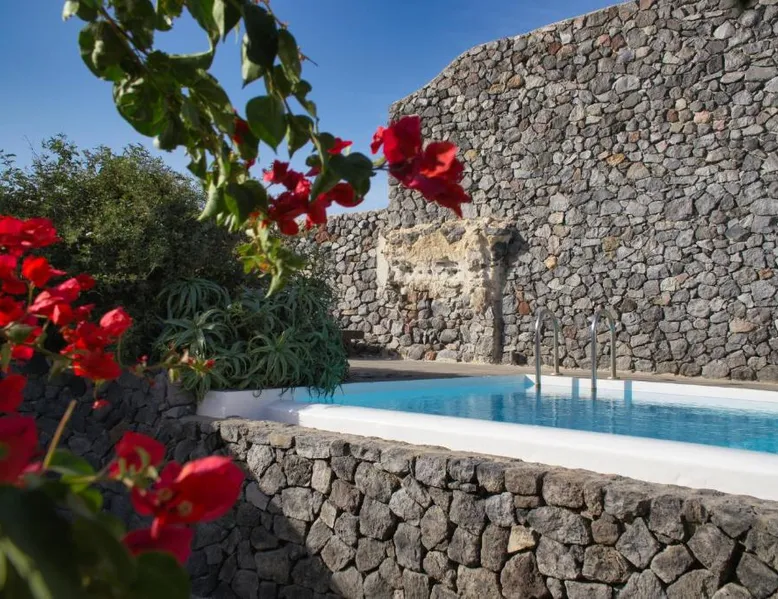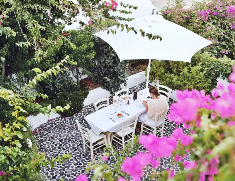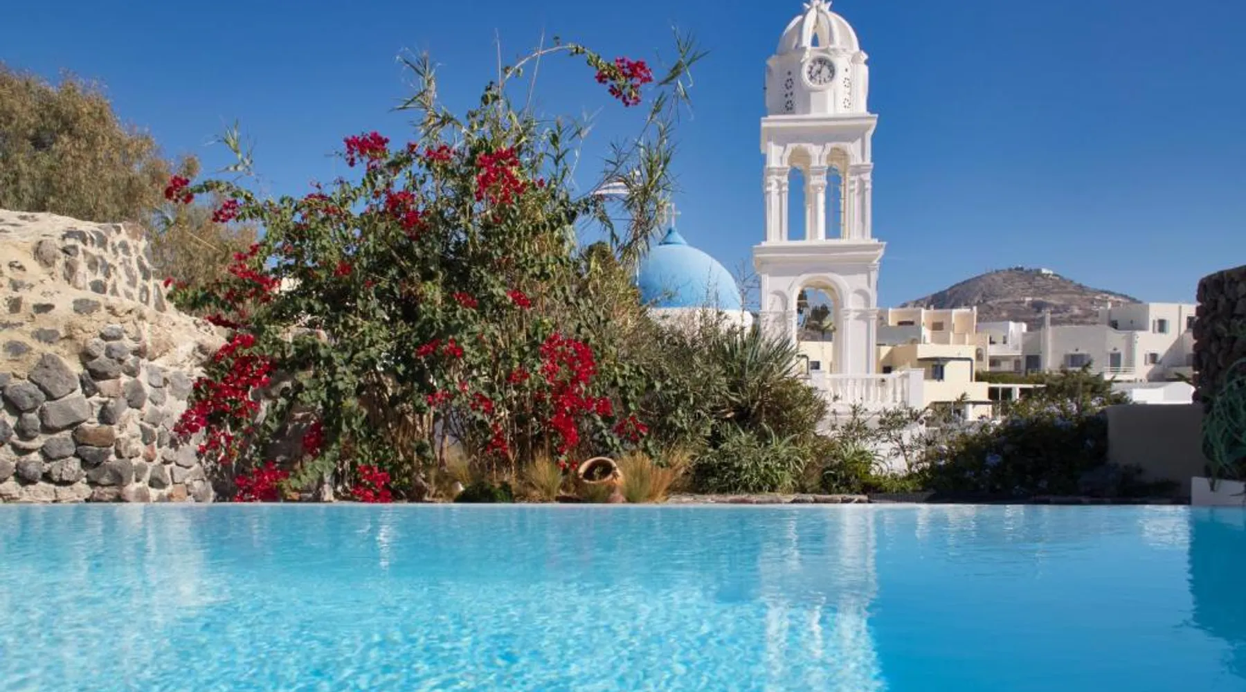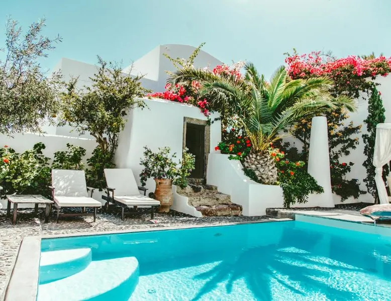 Elegant Accommodations: Santorini Heritage Villas in Megalochori offers a villa with a swimming pool, sun terrace, and lush garden. Guests enjoy free WiFi, air-conditioning, and a fully equipped kitchenette. Comfortable Amenities: The property features private check-in and check-out, a paid airport shuttle, concierge service, and housekeeping. Additional amenities include a washing machine, streaming services, and barbecue facilities. Prime Location: Located 4.3 mi from Santorini International Airport, the villa is less than 0.6 mi from Thermis Beach. Nearby attractions include Santorini Port (2.8 mi) and the Archaeological Site of Akrotiri (3.7 mi). Scuba diving is available in the surroundings. Guest Satisfaction: Highly rated by guests, Santorini Heritage Villas ensures a pleasant stay with excellent facilities and services. Historic villa, 164 feet from the center. Features a secluded courtyard, with garden and Moroccan-style pool. There is also a smaller courtyard where the guests can dine. The courtyard leads to a spacious living and dining area. There are two bedrooms with one bathroom shared between them. The villa offers a fully equipped kitchen and free Wi-Fi. Please note that there is a 50-yards distance between the villas.