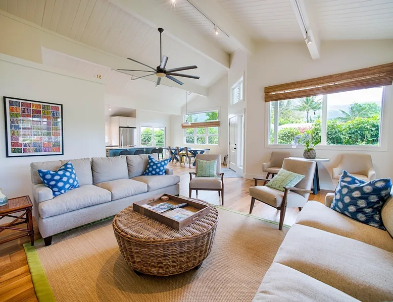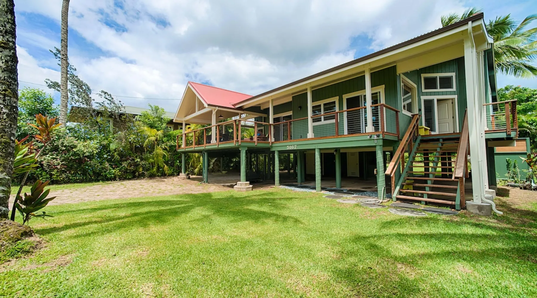 Hawaii Life Rentals Presents Hale Hoku Just across the street from the sand, a 5 bedroom/4 bathroom beach cottage with a sunny and open floor plan. Built up on post and pier, it is as if you are residing in your own private and breezy treehouse! The space Just across the street from the sand, Hale Hoku is a 5 bedroom/4 bathroom beach cottage with a sunny and open floor plan. Built up on post and pier, it is as if you are residing in your own private and breezy treehouse! Three master bedrooms with king beds and ensuite baths. The fourth bedroom with king bed and fifth bedroom with four twins (two bunk beds) will share a guest bathroom. Indoor Features: *Three king bedrooms with en suite *One king bedroom shares guest bath with *Two sets of twin bunk beds (four twin beds) The large grassy back yard sets the perfect stage for taking in the brilliant Kauai nighttime sky or a ripe opportunity to test your green thumb on the various fruit trees. Being just steps from the beach and town, the home's location couldn't be more ideal. Hanalei is a 2-mile long half-moon bay with white sand and maje stic mountains - more than just beautiful, Hanalei is also an amazing ocean playground. Loved by visitors and residents alike, there is no place like Hanalei. While Hanalei is small enough to get around by foot or bike, a car is recommended if wanting to travel outside of the area. Hawaii Life Rentals is a locally owned, licensed real estate company with rentals on Kauai, Maui, Oahu, and Hawaii. We offer on-island personal assistance and Concierge services. Rates do not include taxes, cleaning and applicable fees. Hawaii Life/VRBO bookings: Guests must sign a rental contract within 48 hours of booking to confirm the reservation. **THIS HOME IS LOCATED IN A TSUNAMI ZONE** TVNCU 1011 TA-072-741-6832-01 TMK-550020160000 Registration Details 550020160000, TA-072-741-6832-01