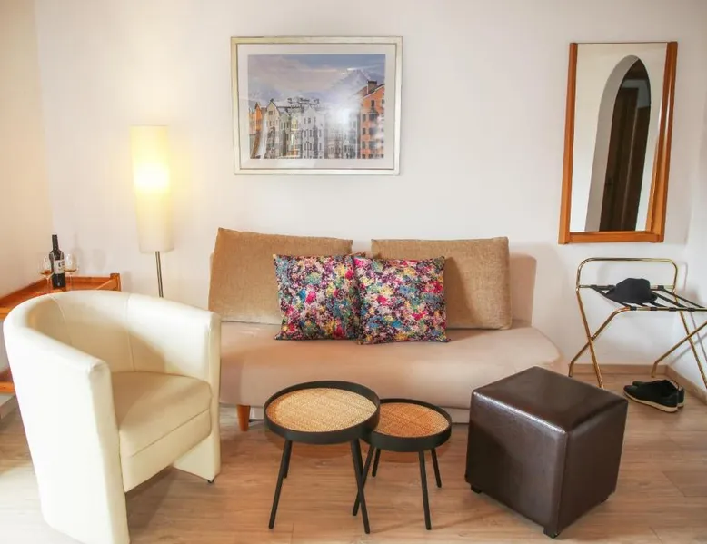 The Hotel Sonnenhof Igls – bed & breakfast & apartments is located on a sunny plateau above Innsbruck at the foot of the Patscherkofels hiking and skiing area. Only 3.1 mi from Innsbruck and a 5-minute walk from the center of Igls. All quiet, bright rooms have a balcony with views of the Tyrolean Alps, free Wi-Fi and free private parking are available. The individually designed rooms feature a flat-screen cable TV, a seating area, and a bathroom with a hairdryer. Daily housekeeping service is available. A rich breakfast buffet is served every morning. The bus stop is just 984 feet from the property and takes you to the center of Innsbruck within 10 minutes. The Innsbruck Mitte motorway exit is 1.9 mi from the hotel. The tram takes you to Ambras Castle and the Bergiselschanze in 15 minutes. Hiking, Nordic walking and cycling trails start right outside the front door. Discounted green fees are available at nearby golf courses. In winter the hotel is located directly in the middle of 9 ski areas. Room with a seating area, a flat-screen satellite TV and a bathroom with a shower or a bathtub. A balcony with a seating area and mountain views is provided. Free Wi-Fi is provided. Please note that extra beds are not available in this room type.