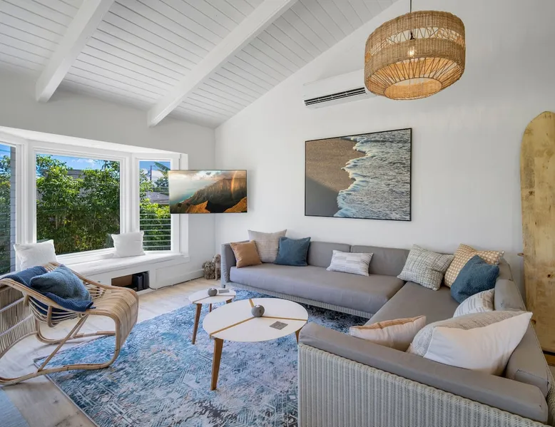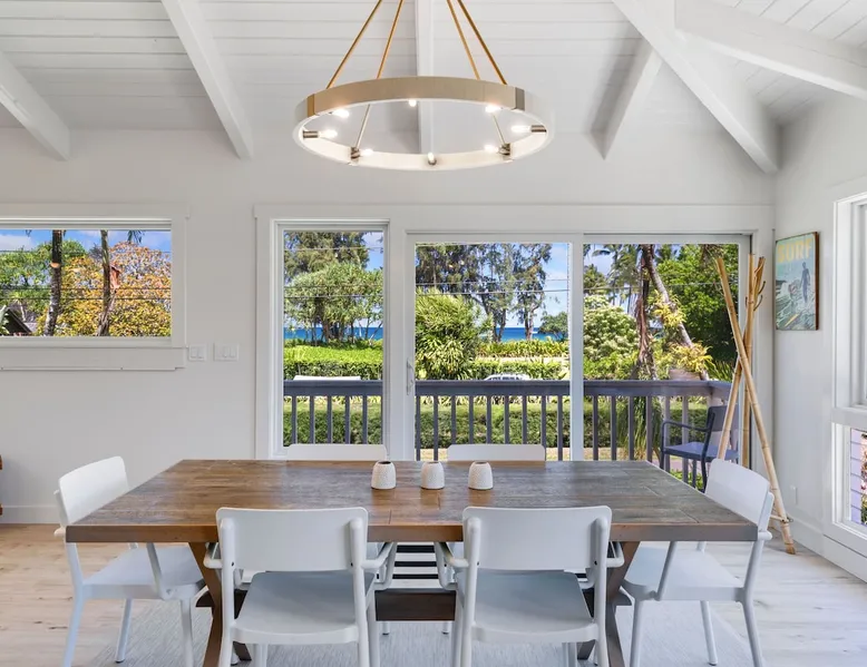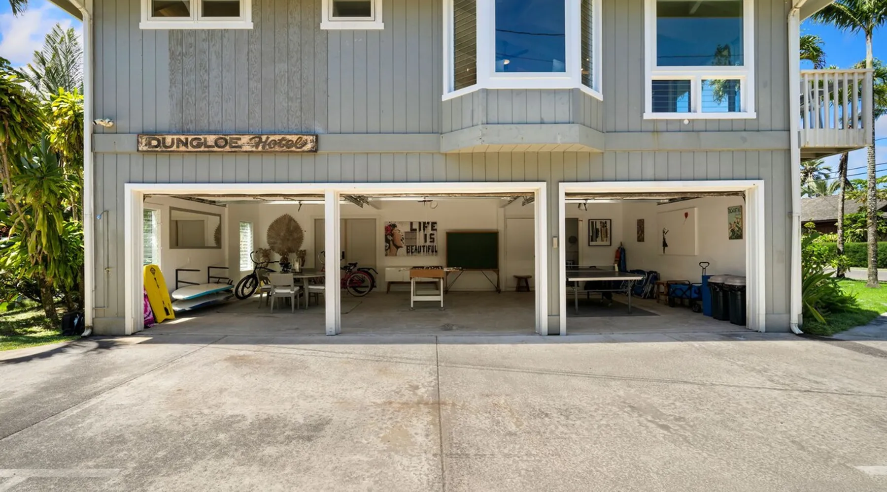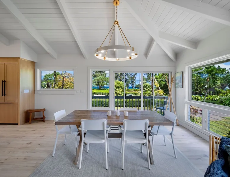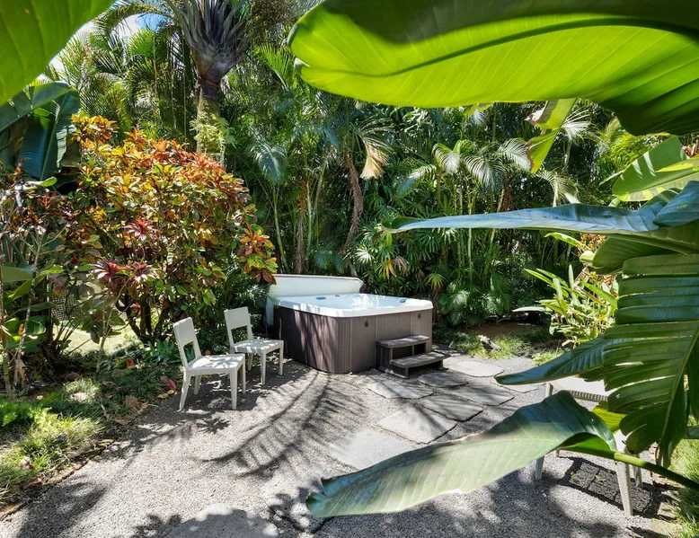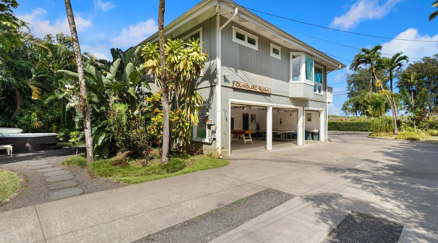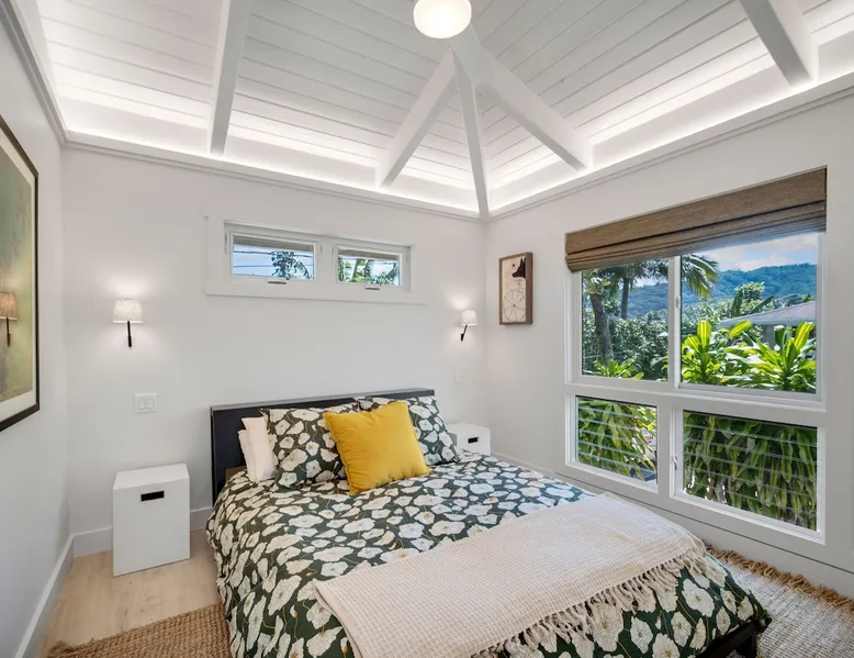 Hawaii Life Rentals presents Camp Magic 1 A modern 3 bedroom, 2 bath home across the street from Hanalei Bay with private hot tub and a/c in the bedrooms and living area. Sleeps 6. The space Nestled in the heart of Kauai, this vacation rental unit is a modern country bungalow that effortlessly blends contemporary design with a rustic charm. The interior is characterized by hardwood floors and vaulted ceilings, creating a sense of spaciousness and grandeur. The open design concept allows for an abundance of natural light to flood the living spaces, enhancing the warmth of the hardwood and creating an inviting atmosphere. The living area seamlessly transitions into the dining and kitchen areas, making it a perfect space for entertaining or simply relaxing after a day of exploring Kauai. The garage has been ingeniously converted into a game room, providing a fun and unique space for guests to unwind and enjoy some indoor entertainment. This adds a playful element to the property, ensuring there's never a dull moment during your stay. The above-ground spa is perfect for a relaxing soak after a simple day of bicycle riding down to the beach. The bungalow boasts three beautifully appointed bedrooms, including a master bedroom complete with an en-suite bathroom. The master suite serves as a private retreat within the home, offering a serene space to relax and rejuvenate. With one additional bathroom, the property ensures ample space and privacy for all guests. Each bathroom is designed with modern fixtures and finishes, adding to the overall contemporary aesthetic of the home. In summary, this Kauai vacation rental unit is a stylish and comfortable haven, offering a unique blend of modern design and country charm. It's the perfect home away from home for those seeking a relaxing and memorable vacation in Kauai. The property is shared with another vacation rental home, Camp Magic 2. *Stays longer than 2 weeks will require a mandatory mid-stay cleaning* Hawaii Life Rentals is a locally owned, licensed real estate company with rentals on Kauai, Maui, Oahu, and Hawaii. We offer on-island personal assistance and Concierge services. Rates do not include taxes, cleaning and applicable fees. VRBO/Hawaii Life bookings: Guests must sign a rental contract within 48 hours of booking to confirm the reservation. **THIS HOME IS LOCATED IN A TSUNAMI ZONE** TVNC 1299 TA-161-511-8336-01 TMK-550030170000 Registration details 550030170000, TA-161-511-8336-01