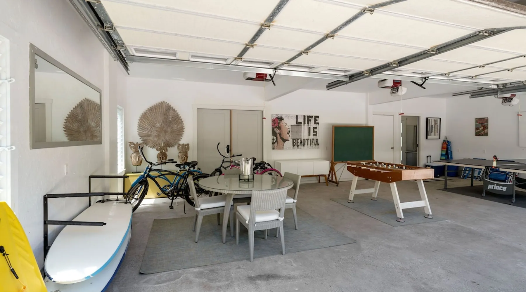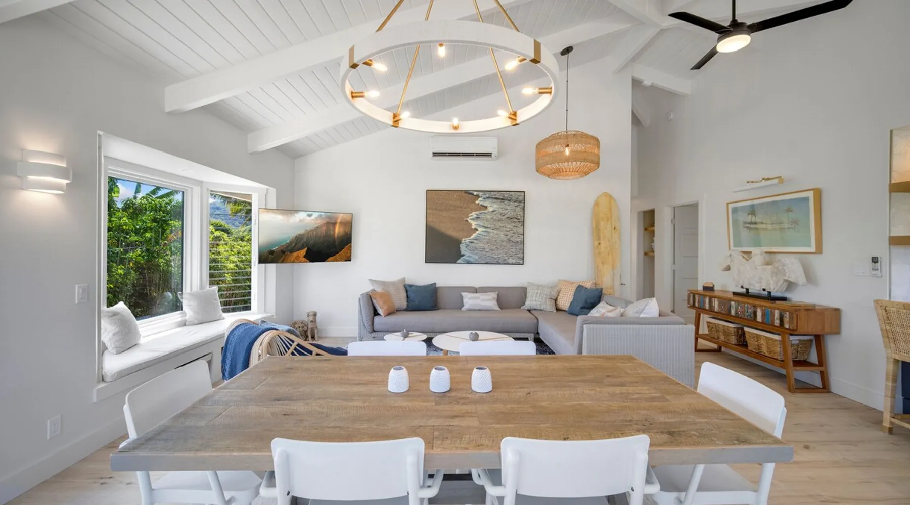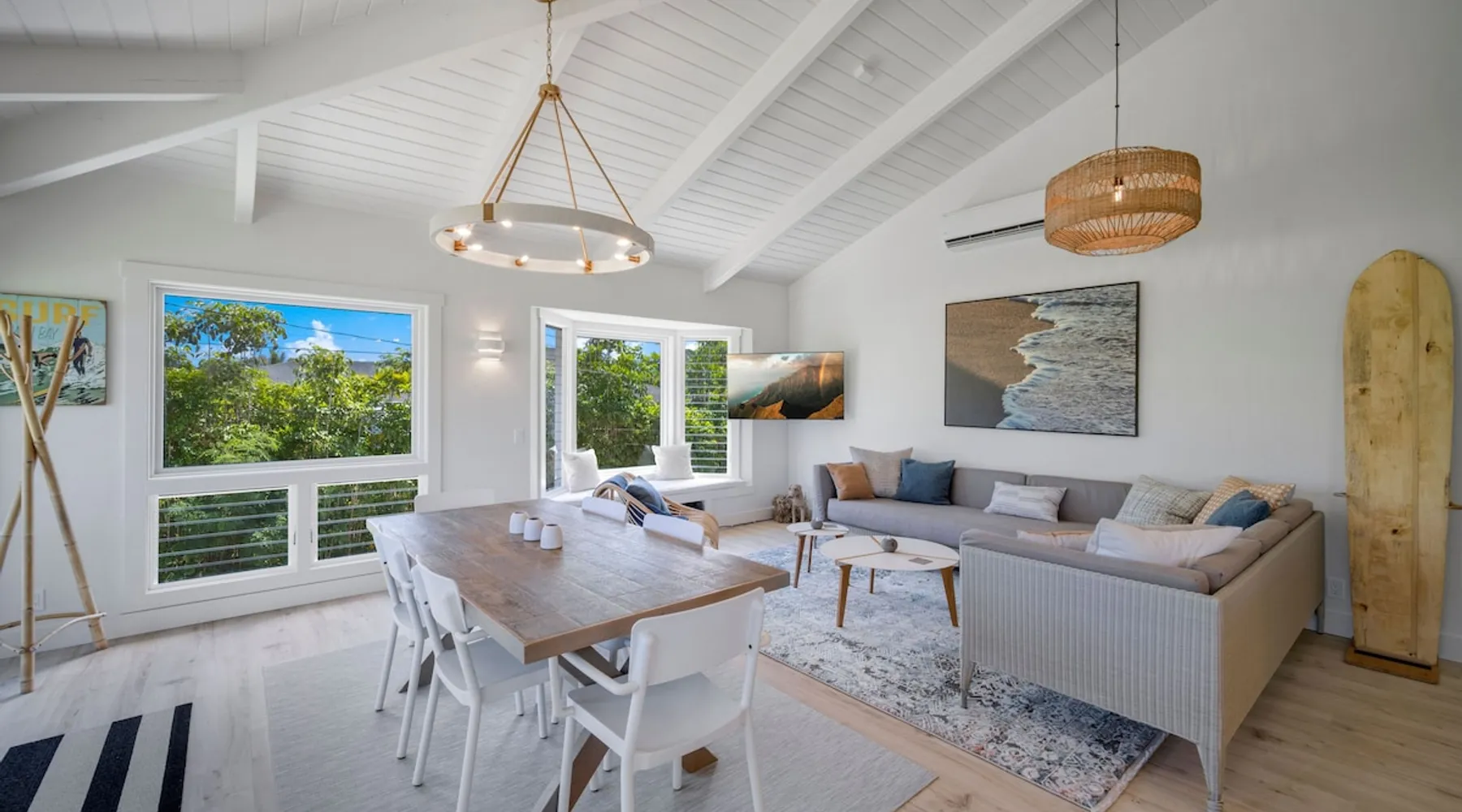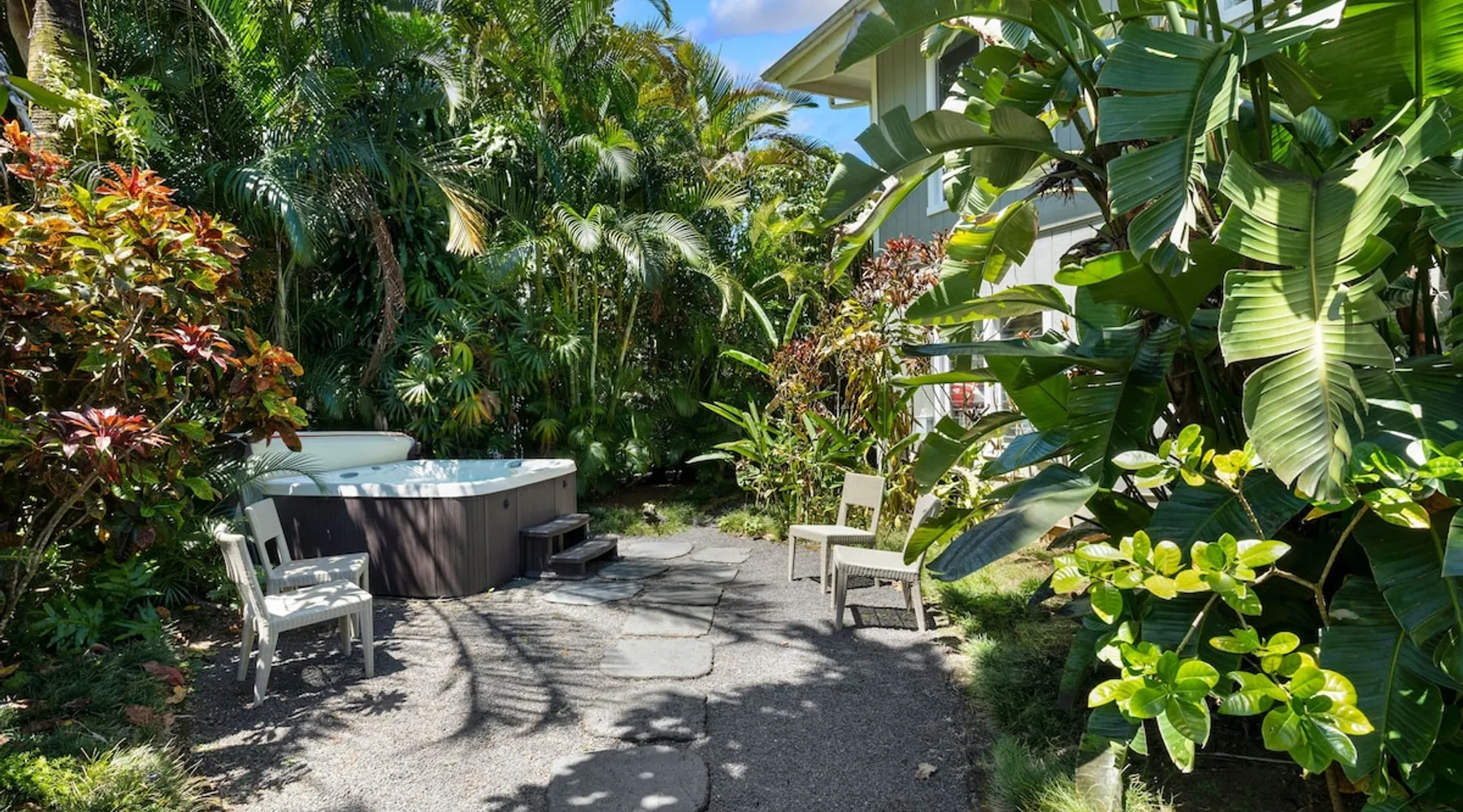 Hawaii Life Rentals presents Camp Magic 1 A modern 3 bedroom, 2 bath home across the street from Hanalei Bay with private hot tub and a/c in the bedrooms and living area. Sleeps 6. The space Nestled in the heart of Kauai, this vacation rental unit is a modern country bungalow that effortlessly blends contemporary design with a rustic charm. The interior is characterized by hardwood floors and vaulted ceilings, creating a sense of spaciousness and grandeur. The open design concept allows for an abundance of natural light to flood the living spaces, enhancing the warmth of the hardwood and creating an inviting atmosphere. The living area seamlessly transitions into the dining and kitchen areas, making it a perfect space for entertaining or simply relaxing after a day of exploring Kauai. The garage has been ingeniously converted into a game room, providing a fun and unique space for guests to unwind and enjoy some indoor entertainment. This adds a playful element to the property, ensuring there's never a dull moment during your stay. The above-ground spa is perfect for a relaxing soak after a simple day of bicycle riding down to the beach. The bungalow boasts three beautifully appointed bedrooms, including a master bedroom complete with an en-suite bathroom. The master suite serves as a private retreat within the home, offering a serene space to relax and rejuvenate. With one additional bathroom, the property ensures ample space and privacy for all guests. Each bathroom is designed with modern fixtures and finishes, adding to the overall contemporary aesthetic of the home. In summary, this Kauai vacation rental unit is a stylish and comfortable haven, offering a unique blend of modern design and country charm. It's the perfect home away from home for those seeking a relaxing and memorable vacation in Kauai. The property is shared with another vacation rental home, Camp Magic 2. *Stays longer than 2 weeks will require a mandatory mid-stay cleaning* Hawaii Life Rentals is a locally owned, licensed real estate company with rentals on Kauai, Maui, Oahu, and Hawaii. We offer on-island personal assistance and Concierge services. Rates do not include taxes, cleaning and applicable fees. VRBO/Hawaii Life bookings: Guests must sign a rental contract within 48 hours of booking to confirm the reservation. **THIS HOME IS LOCATED IN A TSUNAMI ZONE** TVNC 1299 TA-161-511-8336-01 TMK-550030170000 Registration details 550030170000, TA-161-511-8336-01