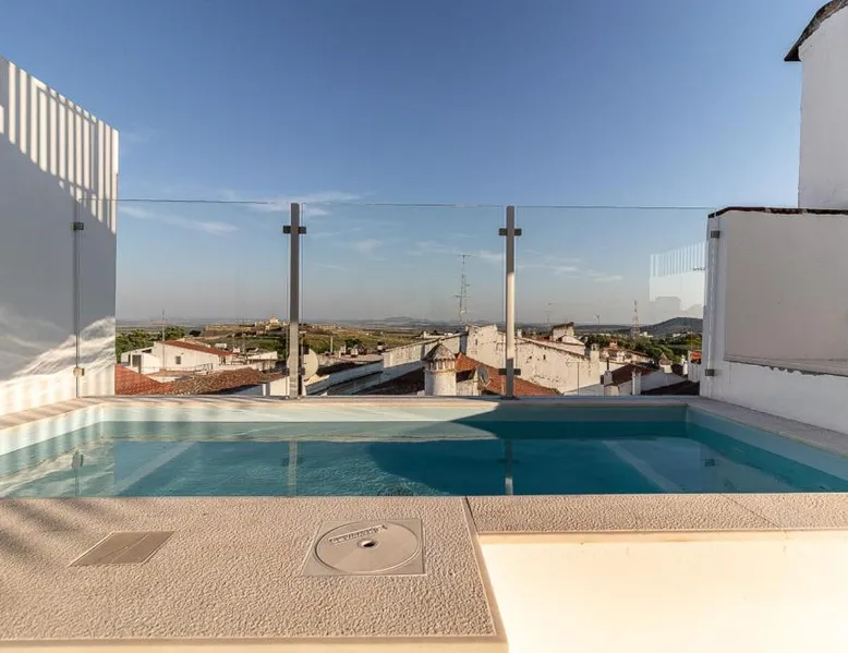 Comfortable Accommodations: CASA d’OLIVENÇA in Elvas offers family rooms with private bathrooms, air-conditioning, and free WiFi. Each room includes a work desk, soundproofing, and parquet floors. Exceptional Facilities: Guests can enjoy a rooftop swimming pool, sun terrace, bar, and outdoor seating area. Additional amenities include a lounge, minimarket, coffee shop, and kids' pool. Delicious Breakfast: A continental, buffet, or full English/Irish breakfast is served daily, featuring local specialties, fresh pastries, cheese, fruits, and juice. Prime Location: Located a 2-minute walk from the Municipal Library of Elvas, the homestay is 12 mi from El Corte Ingles and Badajoz Fortress. Highly rated for its host, convenient location, and room cleanliness. This family room's special feature is the rooftop pool. Providing free toiletries, this family room includes a private bathroom with a walk-in shower and a hairdryer. The air-conditioned family room provides a flat-screen TV with cable channels, a private entrance, soundproof walls, a tea and coffee maker as well as a quiet street view. The unit offers 3 beds.