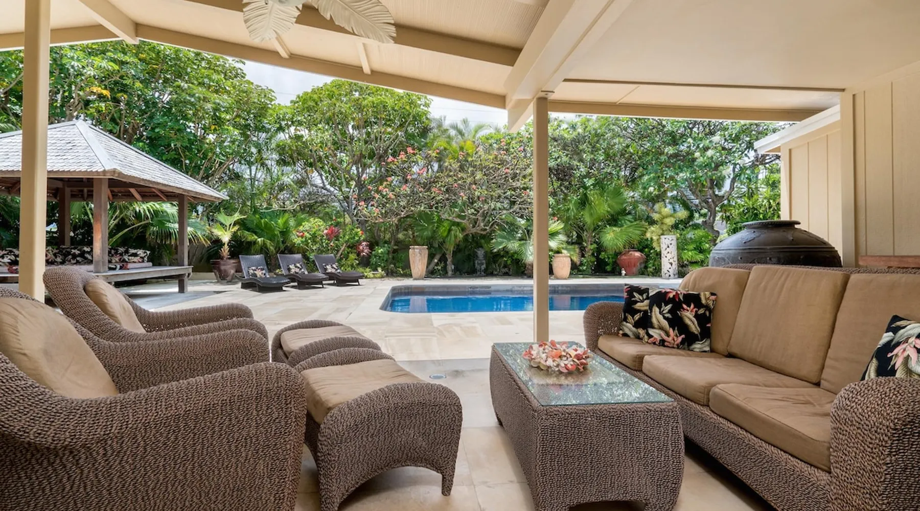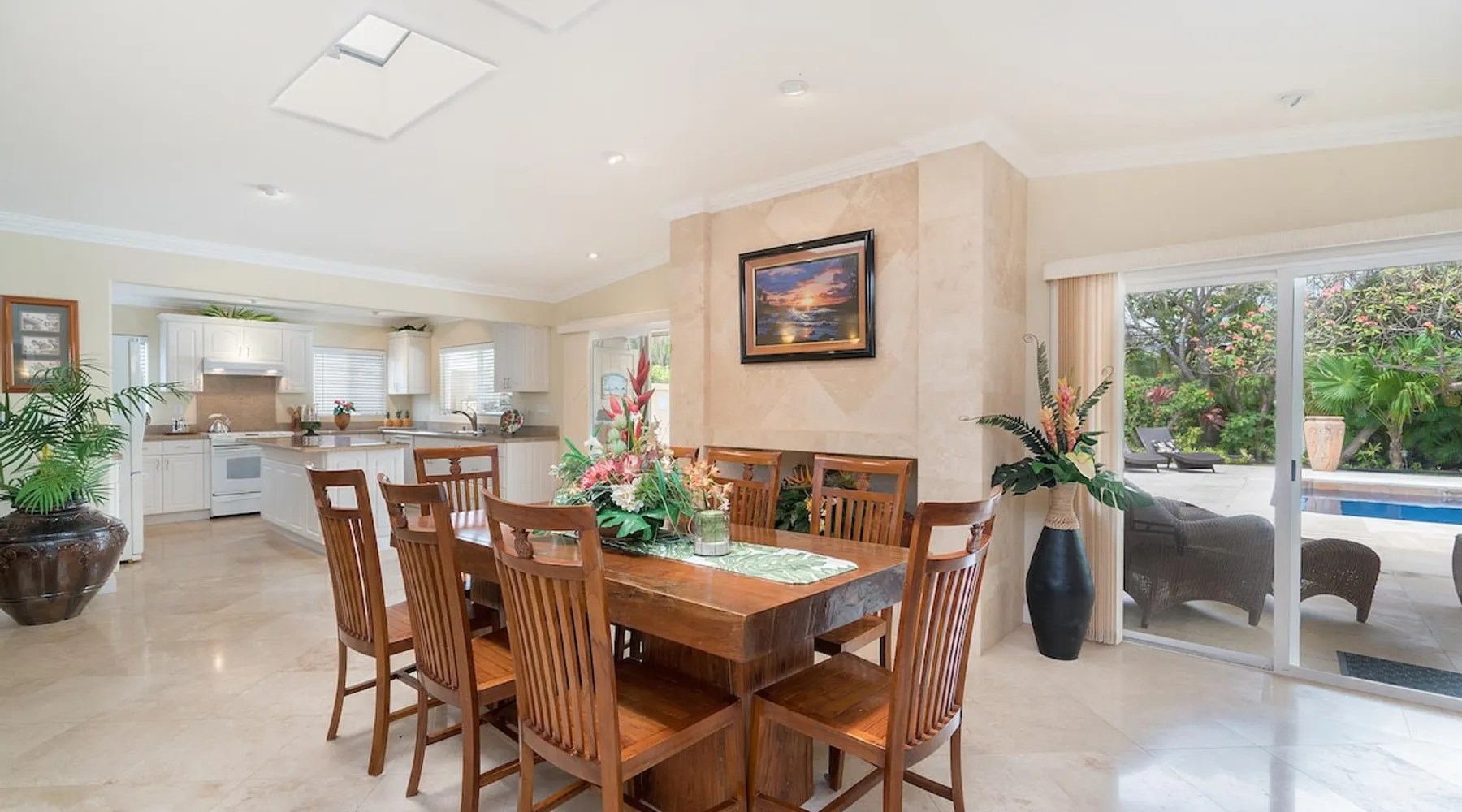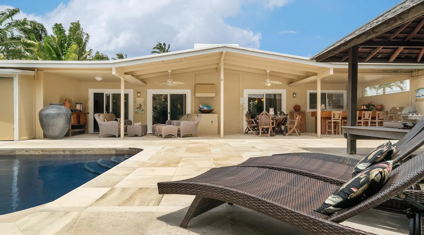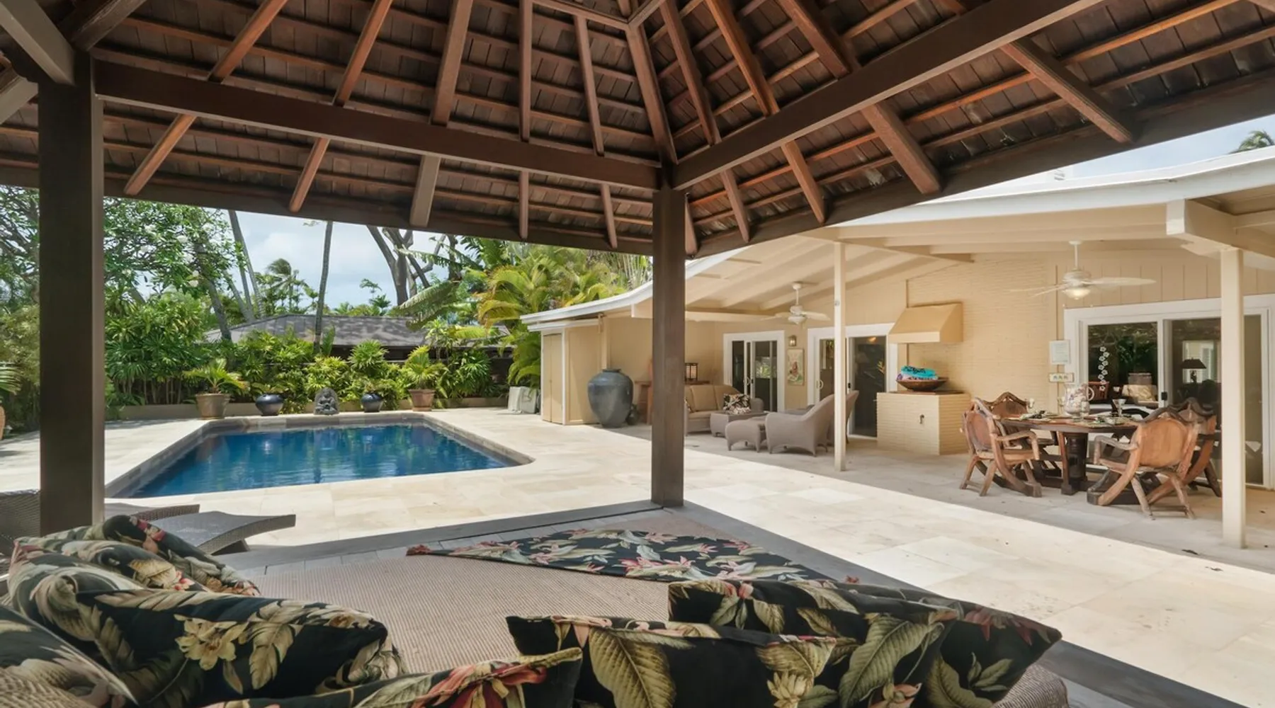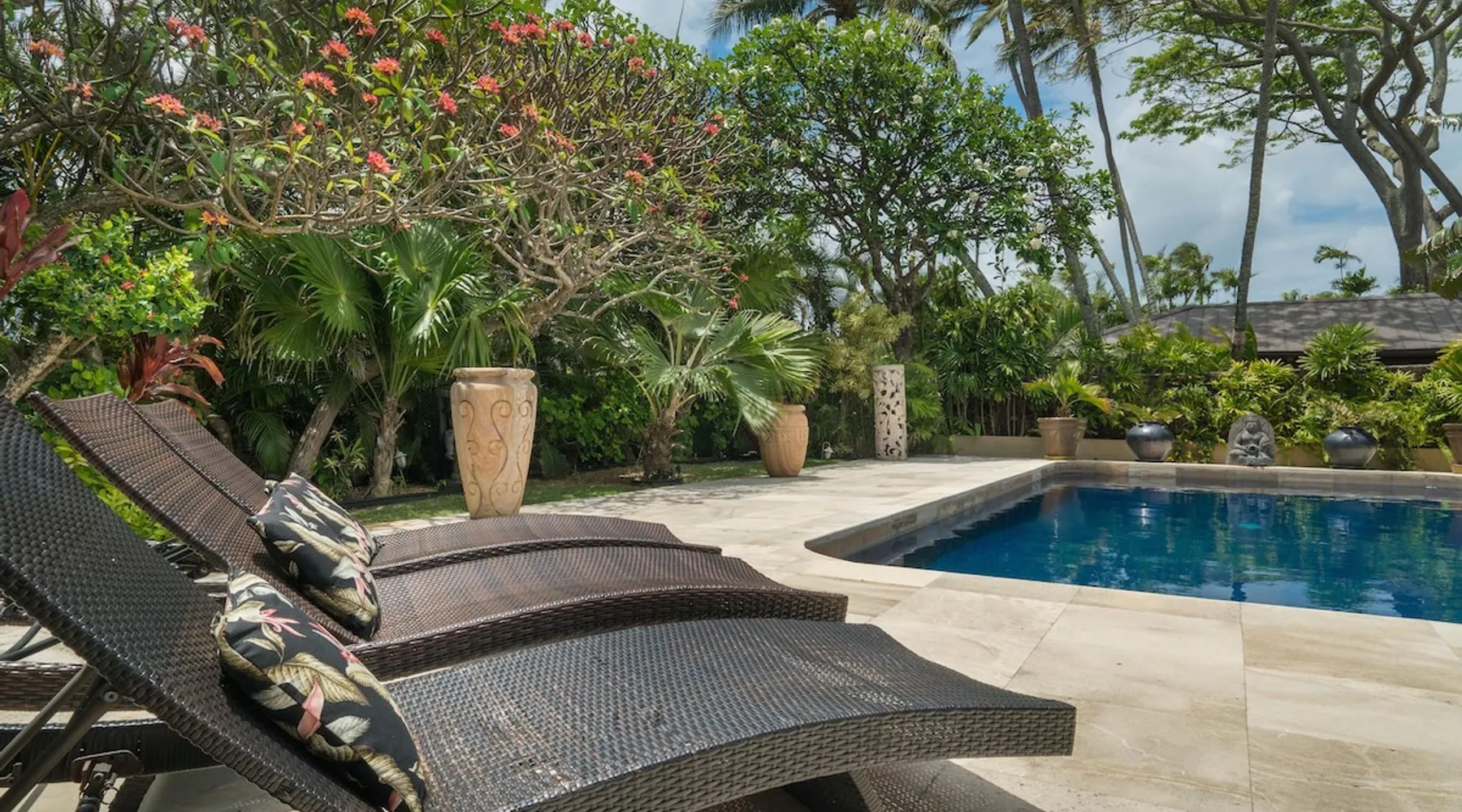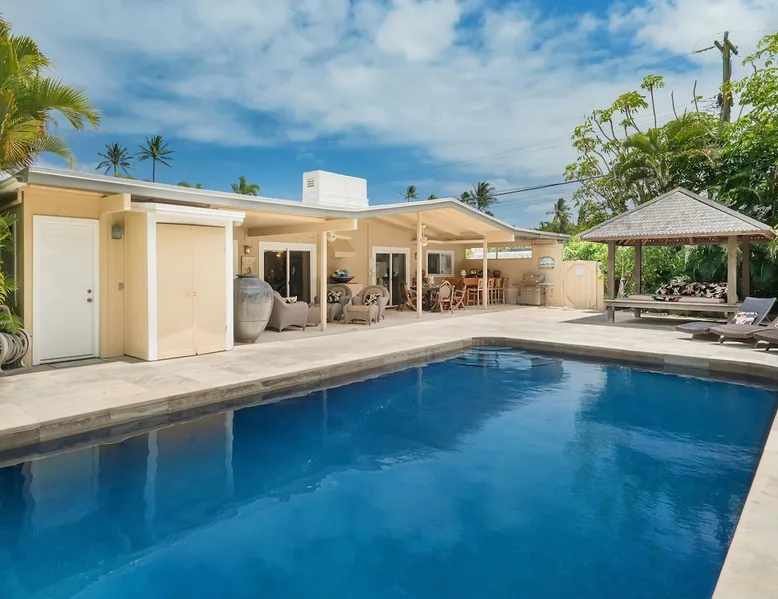 Hawaii Life Rentals presents Kailua Beachside Set on a private road with nearby beach access, this 4BD/4BA estate home has been extensively remodeled and well-cared for. Nestled amongst mature landscaping, the property offers luxurious privacy. The space Set on a private road with private beach access, Kailua Beachside is One-Story Home a 4BD/4BA (over 2,800 square feet) estate home that has been extensively remodeled and well-cared for. Nestled amongst mature landscaping, the property offers luxurious privacy. Fine finishings with a relaxed tropical feel make up this open floor plan one story home, resulting in flowing trade winds and lots of natural light. The interior living area opens up to a covered lanai and private swimming pool. The pool area has an outdoor dining table and bar area, chaise lounges, and a covered bale with a daybed and newly renovated full bathroom with shower. The master bedroom with private access to the pool area has a King bed with ensuite bath, split a/c unit, and large sitting area equipped with a sofa sleeper. The remaining three bedrooms each have a Queen bed and a/c units. There is also a bonus room off one of the guest rooms with two twin trundle beds, perfect for families with children. The floors are travertine tile throughout except for the bedrooms which have carpet. Just a few houses off the beach, the home has public beach access to the famous Kailua Beach. A half mile of white sand, sparkling turquoise waters, and gentle flowing breezes are what await you at this iconic beach. The buzzing town of Kailua offers trendy boutiques and both casual and fine dining. Kailua is 30 minutes outside of Honolulu and Waikiki. Approximate pool size: 16x32 feet Disclosures:Online bookings are subject to manager or owner approval. Hawaii Life Rentals is a locally owned, licensed real estate company with rentals on Kauai, Maui, Oahu, and Hawaii. We offer on-island personal assistance and Concierge services. Rates do not include taxes, cleaning and applicable fees. Hawaii Life/VRBO bookings: Guests must sign a rental contract within 48 hours of booking to confirm the reservation. TMK- TA-196-376-7808-01 In compliance with the Ordinances of the City & County of Honolulu, the Property will be made available to you for your use and occupancy for a minimum period of thirty (30) days. Registration Details 430180560000, TA-196-376-7808-01