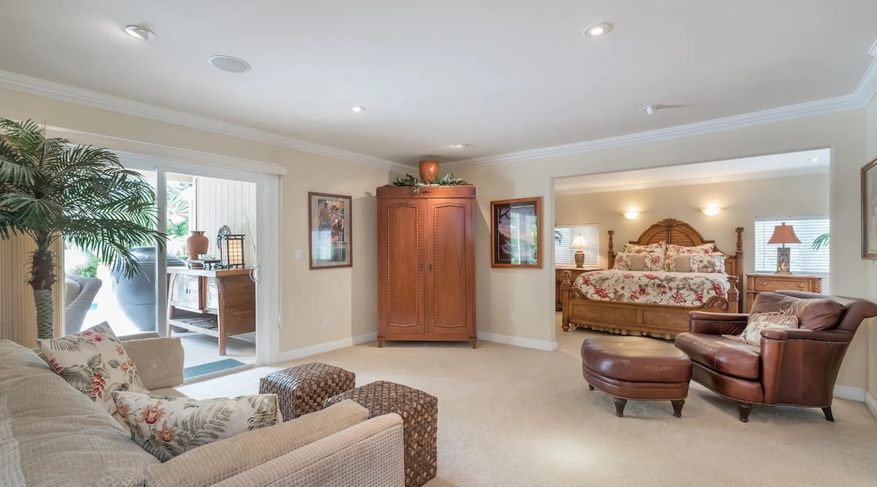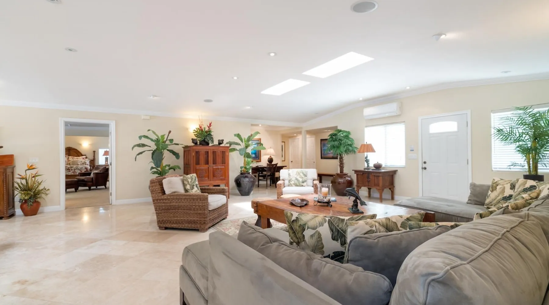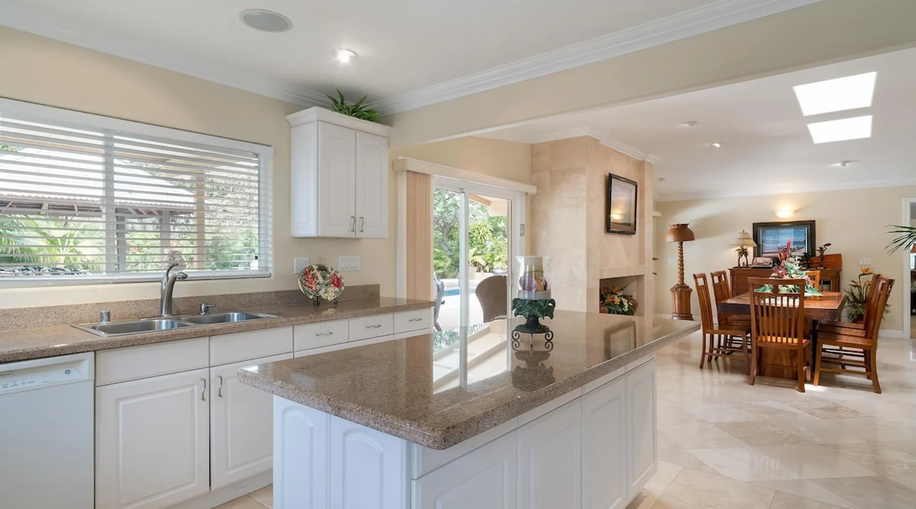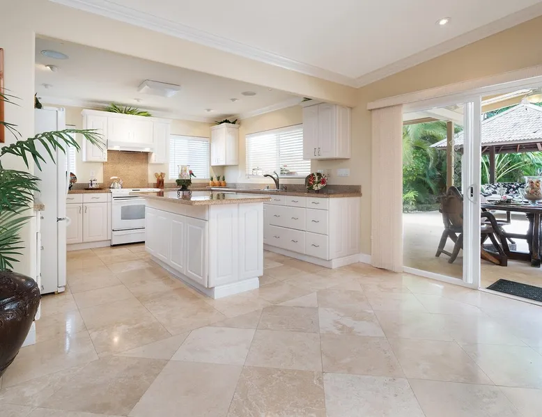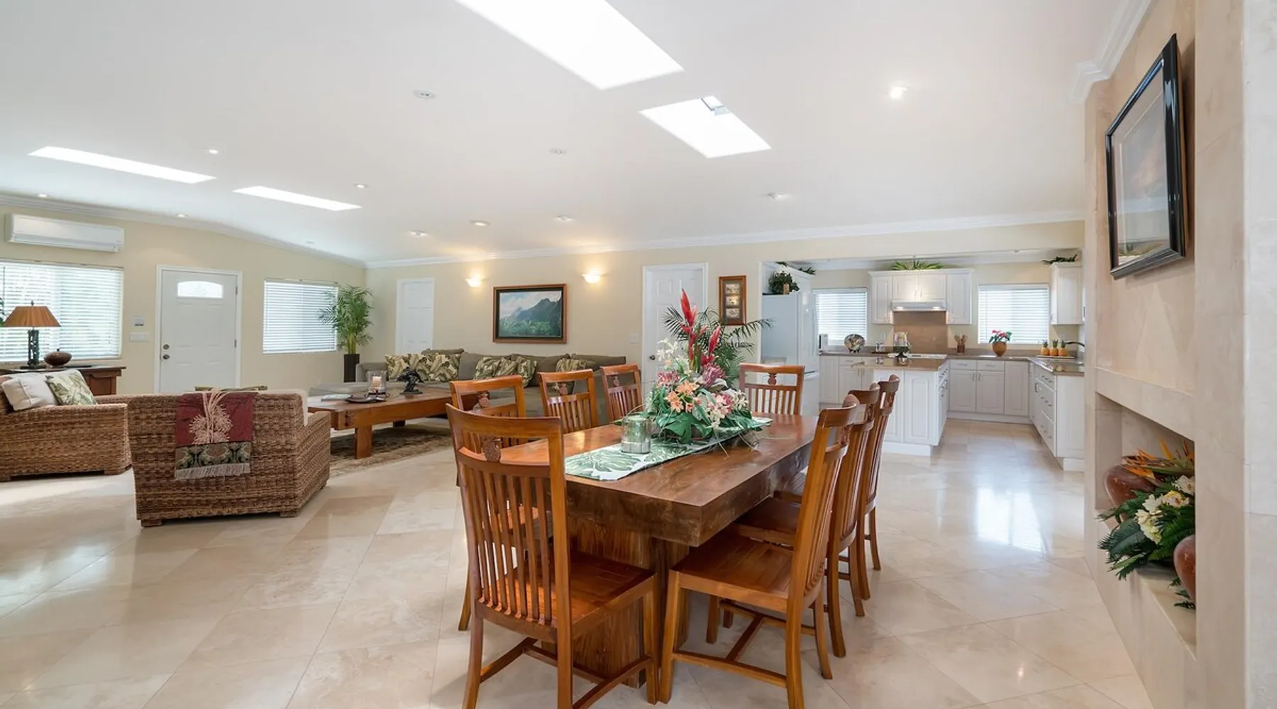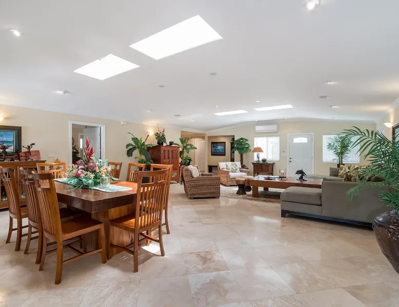 Hawaii Life Rentals presents Kailua Beachside Set on a private road with nearby beach access, this 4BD/4BA estate home has been extensively remodeled and well-cared for. Nestled amongst mature landscaping, the property offers luxurious privacy. The space Set on a private road with private beach access, Kailua Beachside is One-Story Home a 4BD/4BA (over 2,800 square feet) estate home that has been extensively remodeled and well-cared for. Nestled amongst mature landscaping, the property offers luxurious privacy. Fine finishings with a relaxed tropical feel make up this open floor plan one story home, resulting in flowing trade winds and lots of natural light. The interior living area opens up to a covered lanai and private swimming pool. The pool area has an outdoor dining table and bar area, chaise lounges, and a covered bale with a daybed and newly renovated full bathroom with shower. The master bedroom with private access to the pool area has a King bed with ensuite bath, split a/c unit, and large sitting area equipped with a sofa sleeper. The remaining three bedrooms each have a Queen bed and a/c units. There is also a bonus room off one of the guest rooms with two twin trundle beds, perfect for families with children. The floors are travertine tile throughout except for the bedrooms which have carpet. Just a few houses off the beach, the home has public beach access to the famous Kailua Beach. A half mile of white sand, sparkling turquoise waters, and gentle flowing breezes are what await you at this iconic beach. The buzzing town of Kailua offers trendy boutiques and both casual and fine dining. Kailua is 30 minutes outside of Honolulu and Waikiki. Approximate pool size: 16x32 feet Disclosures:Online bookings are subject to manager or owner approval. Hawaii Life Rentals is a locally owned, licensed real estate company with rentals on Kauai, Maui, Oahu, and Hawaii. We offer on-island personal assistance and Concierge services. Rates do not include taxes, cleaning and applicable fees. Hawaii Life/VRBO bookings: Guests must sign a rental contract within 48 hours of booking to confirm the reservation. TMK- TA-196-376-7808-01 In compliance with the Ordinances of the City & County of Honolulu, the Property will be made available to you for your use and occupancy for a minimum period of thirty (30) days. Registration Details 430180560000, TA-196-376-7808-01
