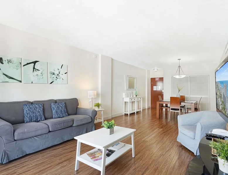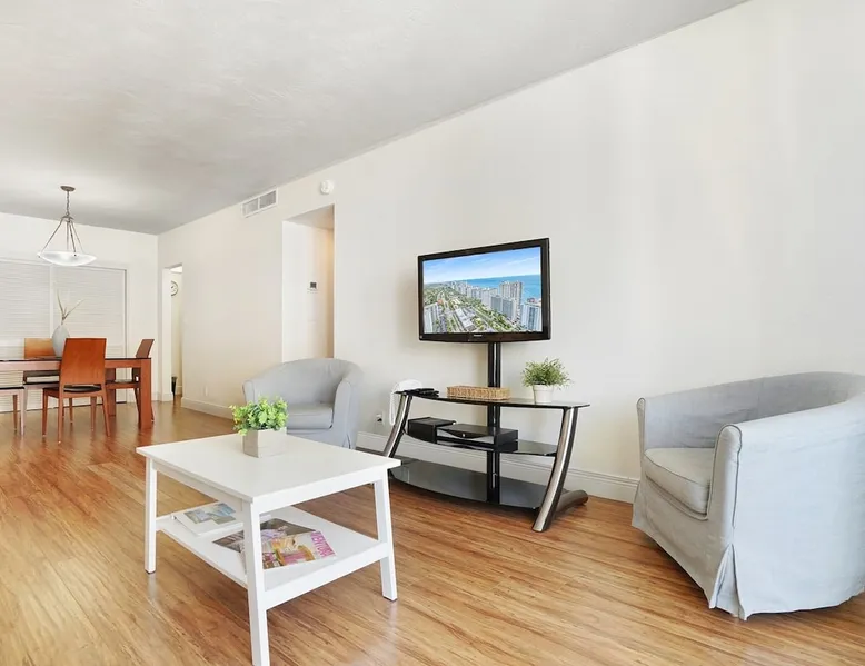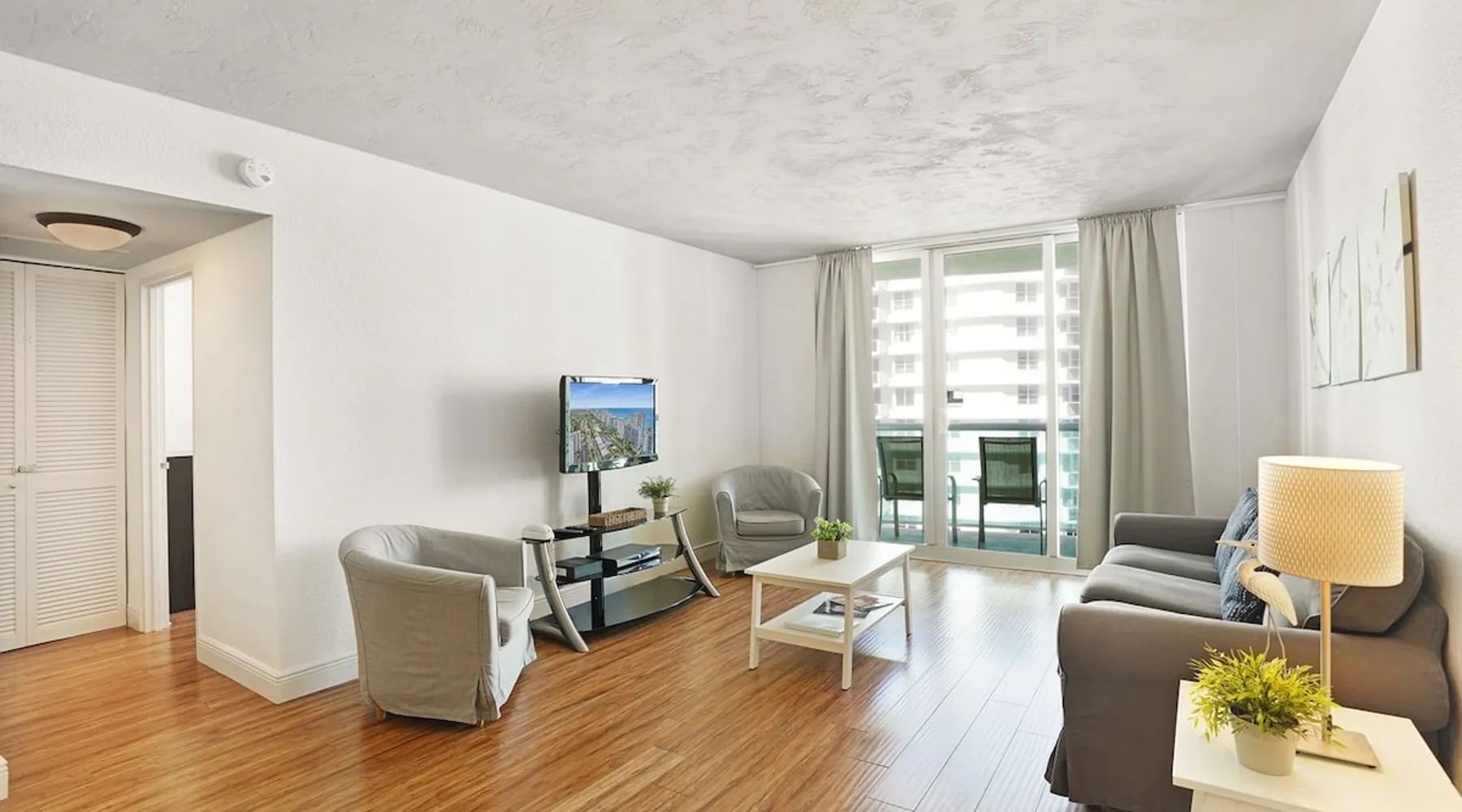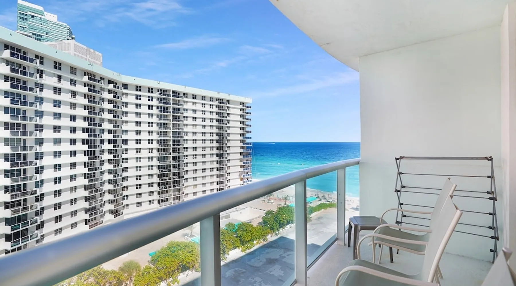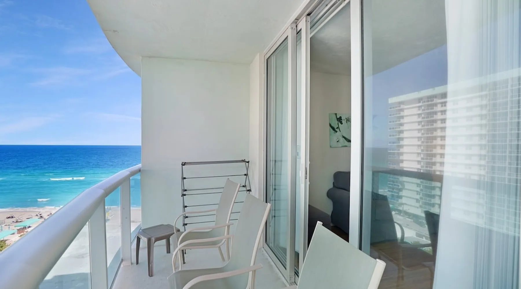 Skip the resort fees and enjoy direct beach access in this charming 1-bedroom condo at The Tides. With a private balcony offering partial ocean views, a fully equipped kitchen, and a spacious living room, this 871 sq ft retreat is designed for relaxation. Perfect for couples or solo travelers, it combines comfort with convenience, just minutes from the Hollywood Boardwalk, dining, and shopping. The space – 1 bedroom, 1 bathroom, sleeps 4 – King bed + full bed + sofabed for flexible sleeping – Spacious living room with TV + seating area – Fully equipped kitchen with modern appliances – Dining table for shared meals – Private balcony with partial ocean views – Bathroom with tub, shower, and essentials – Room-darkening shades + premium linens – Fast Wi-Fi + dedicated workspace with door for privacy – Shared laundry room per floor (not in unit, $2.50/load) Guest access – Full private condo with balcony – Access to pool, fitness center, and beach – Common laundry rooms located on each floor – Wristband access required for amenities Other things to note – FOBs: $30 each (required for guests age 14+) – Parking: $100/week, $125/2 weeks, $175/4 weeks; temp passes $20–40 – Package deliveries: $7 each from building staff – Includes: 2 beach chairs, umbrella, and towels for your use – Reclining beach chairs available for rent via beach service – Property uses noise monitoring (no indoor cameras) – Quiet hours enforced per city ordinance FAQ ➤ Is parking included? Parking is paid separately: $100/week or $175/month. Temporary passes available for $20–40. ➤ What beach gear is provided? Guests receive two foldable beach chairs, an umbrella, and towels. ➤ Is laundry in the unit? No, but each floor has a shared laundry room with full-size washer and dryer ($2.50/load).