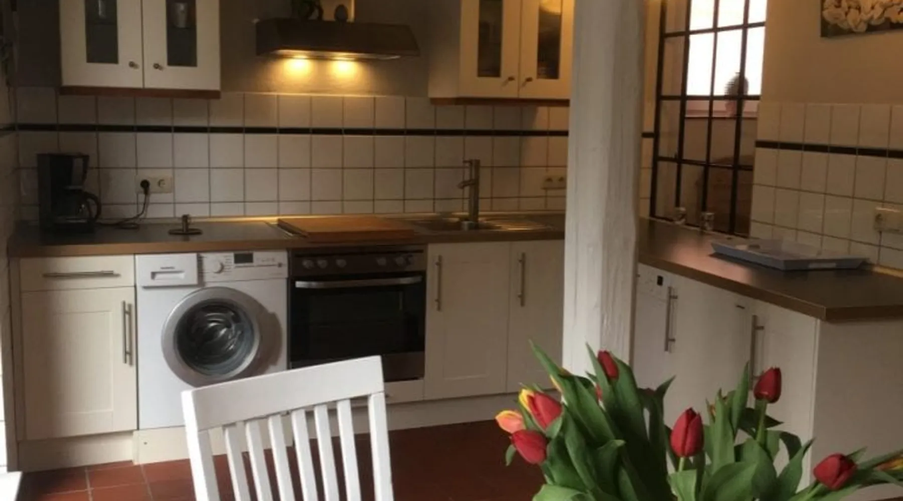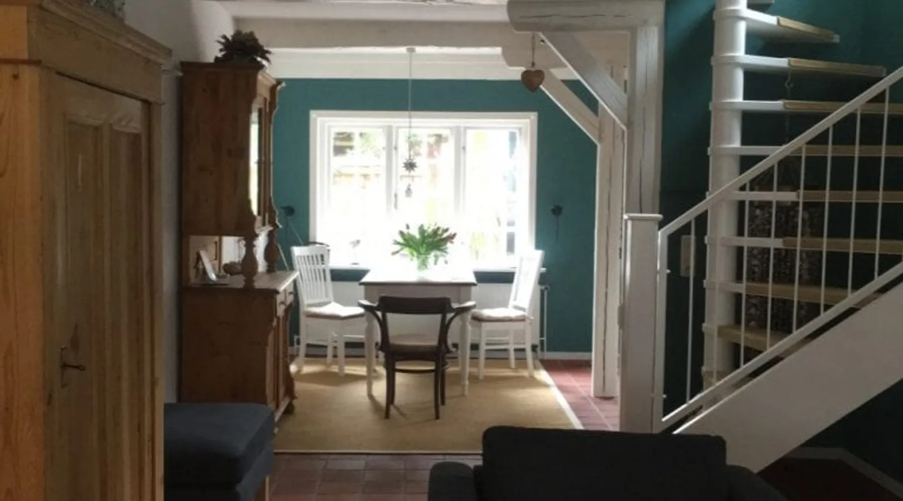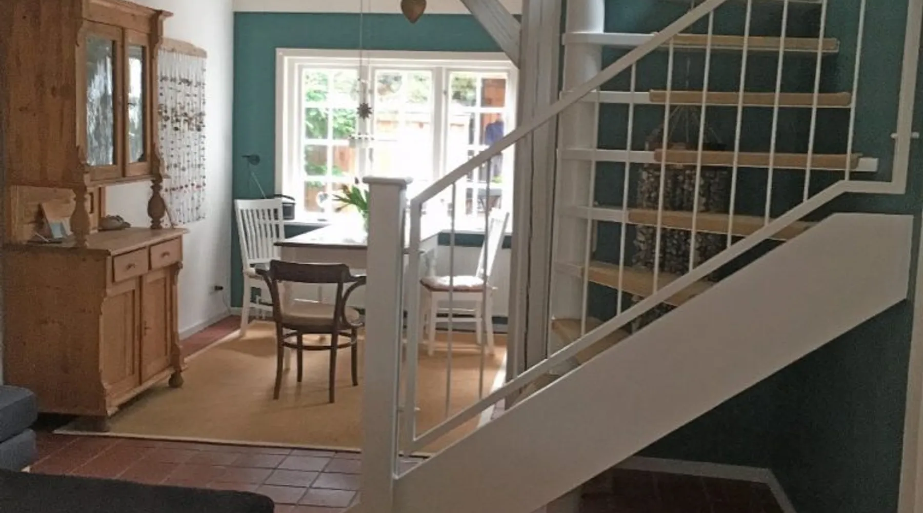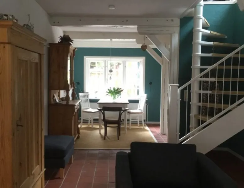 "Dat lüttje Ferienhuus" is located in the middle of the historic harbor district in the port city of Tönning. This holiday home has been lovingly restored and individually decorated Other things to note Holiday house approx. 80 square meters, 2 people, Wi-Fi. Ground floor: Hallway open living room with sofa, dining table, open kitchen with dishwasher and washing machine Underfloor heating throughout the ground floor Upper floor: bedroom with double bed, furnished balcony Hallway with wardrobe spacious bathroom with bathtub opaque furnished terrace with sunbeds and barbecue The open-plan integrated living room has a cozy sitting area, a dining area and a new, modernly furnished kitchen. Upstairs, the bathroom with bath and the bedroom with access to a balcony (10 sqm) facing south. From our quiet, yet centrally located holiday home, you have all the possibilities. The historic harbor is 200 meters away. In addition, our small cozy city center can be reached within a 3-minute walk. There you will find both bakeries, an ice cream parlor, the tourist information with the Tönninger Bücherei. Doctors and a pharmacy can also be found in the city center. Right around the corner is also the castle park, which invites you to walk and to various events, such as our traditional ring riding and other nice festivities. Within 10 minutes you can reach our green resort beach where you can find the heated outdoor swimming pool. The Multimar Wattforum in Tönning offers science background and has all the information you can learn about our Wadden Sea. Gastronomically, Tönning has a lot to offer for you about seafood restaurants, an Italian, the vineyard and the Biorestaurant Miiriamar, everything is offered to you. At the nearby ferry dock, you can take interesting ferries directly from Tönning, such as a ride to the seal banks, a ride through the Eidersperrwerk or a fishing ride through the National Park Office. Within 20 minutes you can reach both St. Peter-Ording, with its endless sandy beach, as well as the Theodor-Storm city of Husum, also Heide and Büsum can be reached during this time. In addition, the former Dutch town of Friedrichstadt is 10 km away and invites you to take a canal ride on Eider and Treene.