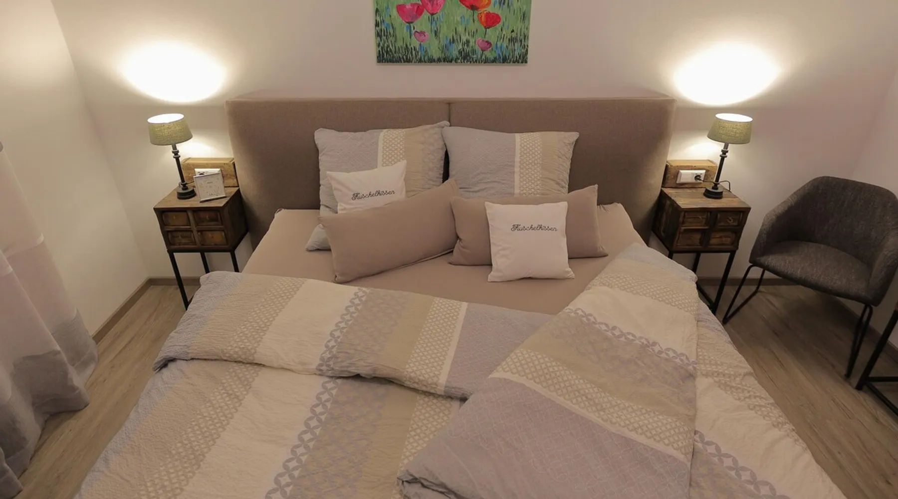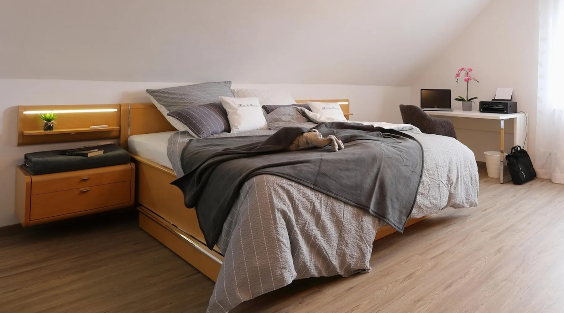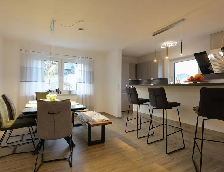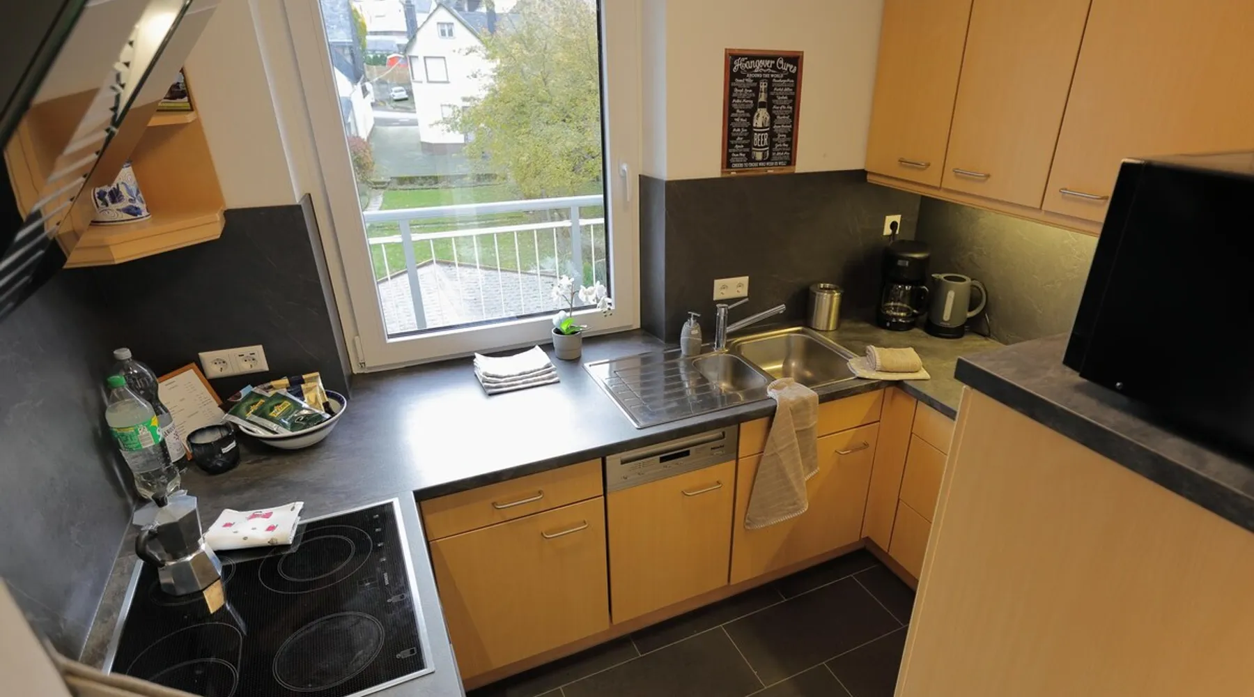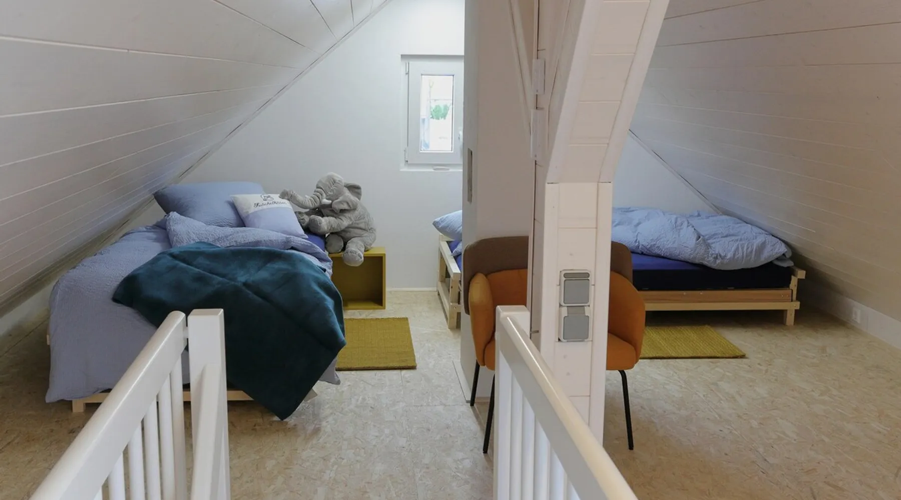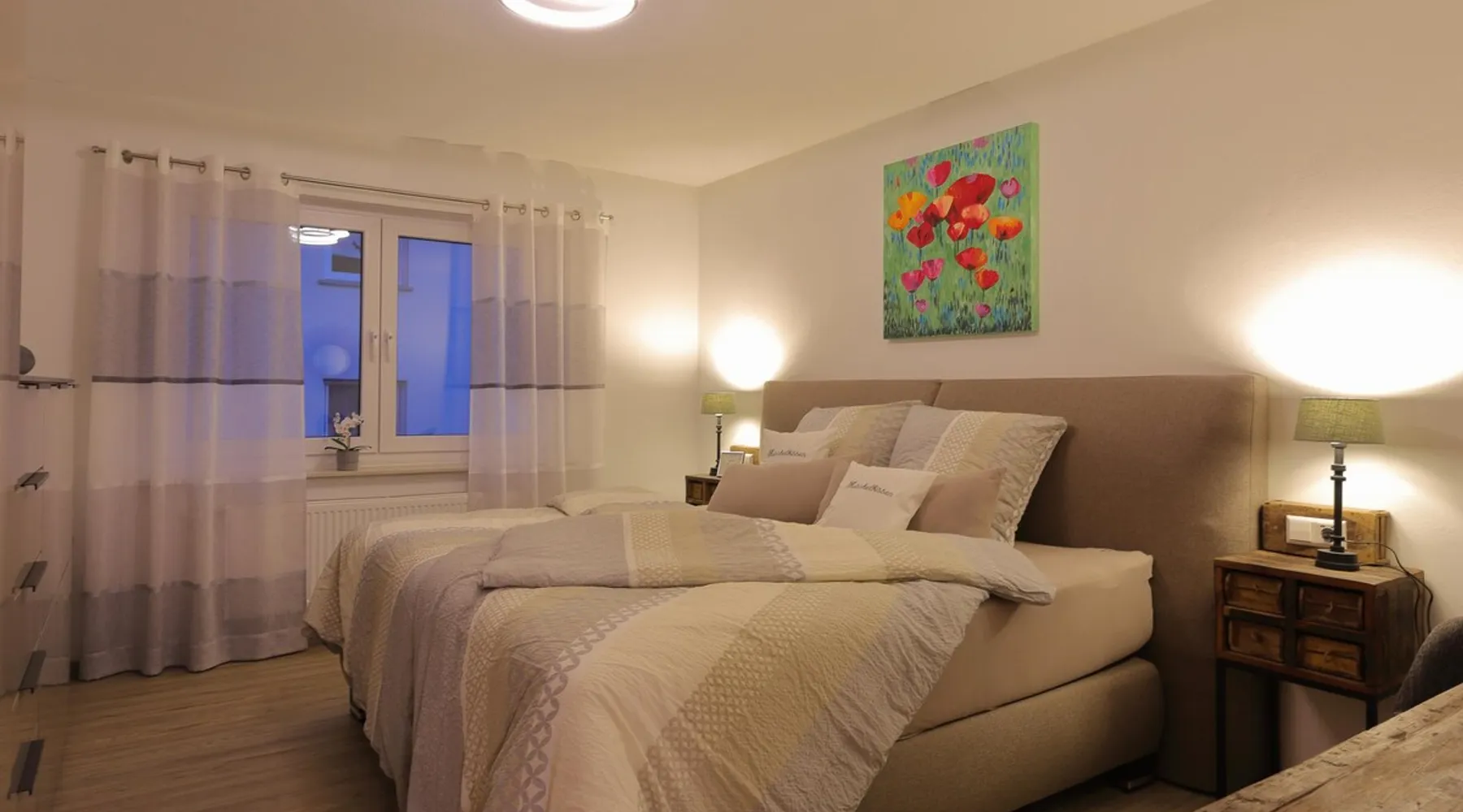 The comfortable and modern vacation home "Däschinger" with 5-star DTV classification welcomes you in the tranquil village of Mastershausen in the Hunsrück. The 210m² vacation home consists of 2 separate apartments, each with a living room, a well-equipped kitchen with dishwasher, a bathroom and a total of 4 bedrooms, offering space for 14 people. Further amenities include WLAN, a washing machine, Internet TV and a safe. The house also has a balcony. Other things to note The private outdoor area with lovingly landscaped garden, covered terrace with pergola and garden shed invites you to relax in the sun or enjoy a barbecue together. There is a bakery (170m) and a pizzeria (280m) just a few minutes' walk from the accommodation. The nearest large supermarkets are in the town of Kastellaun, a 10-minute drive away. The area is particularly popular with hikers and cyclists. The Masdascher Burgherrenweg and many other hiking and cycling trails invite you to actively explore the region. Other nearby attractions include the Hallgarten nature and adventure park with children's playground and pirate ship (1.2 km), the "Balduinseck" castle ruins (1.8 km) and the Geierlaybrücke, a suspension rope bridge between the neighboring villages of Sosberg and Mörsdorf (7.3 km). Parking spaces are available on the property and on the street. Bed linen and towels are included in the price. Iron, first aid kit and washing machine and dryer for communal use in the basement. Please note that pets are not allowed. In due course, the following fruits grow in the garden, which guests are welcome to pick and eat: Apples, cherries, strawberries and raspberries. Bedroom 1: double bed; Bedroom 2: double bed; Bedroom 3: double bed; Bedroom 4: double bed and 4 single beds; After booking, please fill in the Holidu contact form, which will be sent to you by e-mail, completely with your address. This will help the host to prepare your stay in the best possible way.