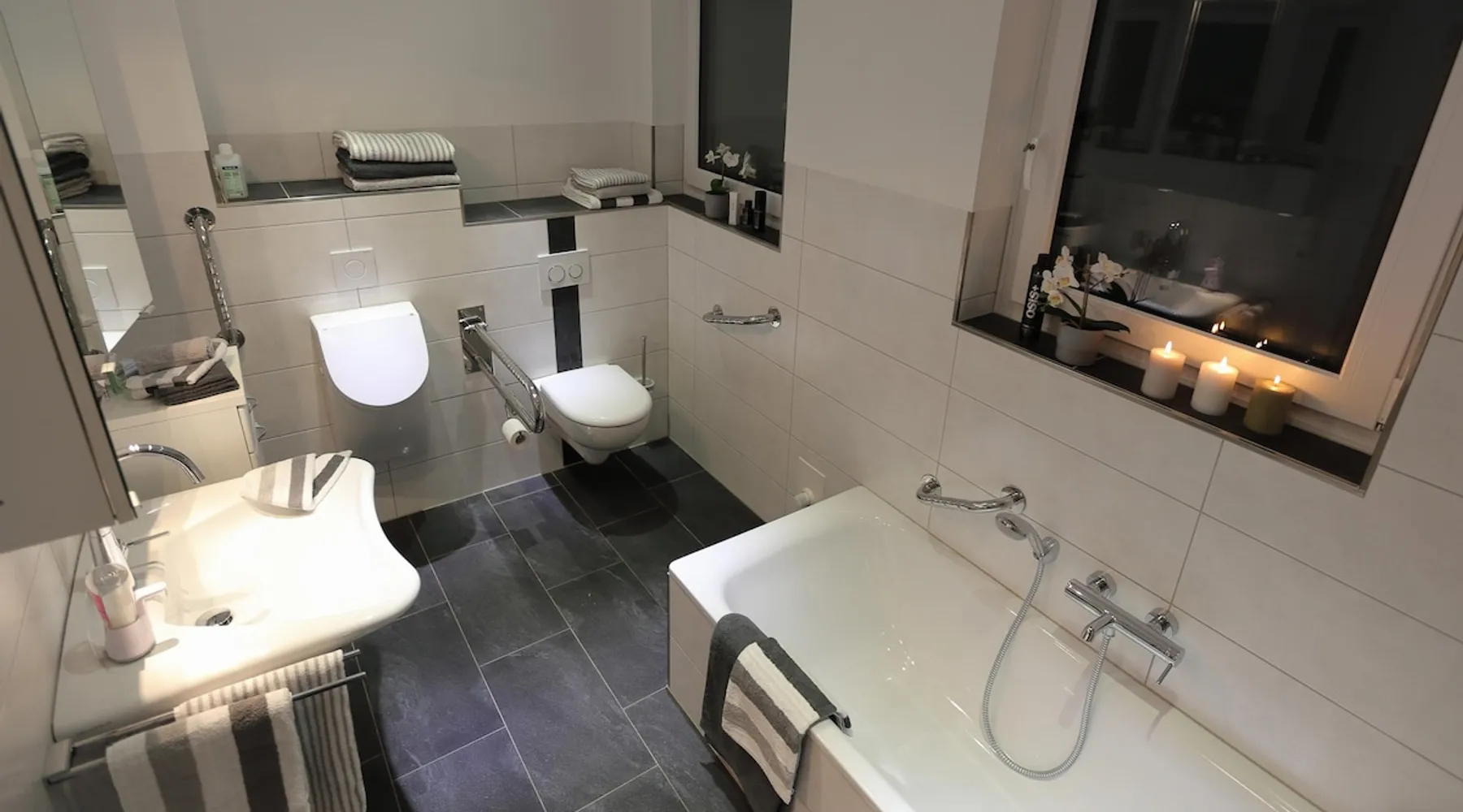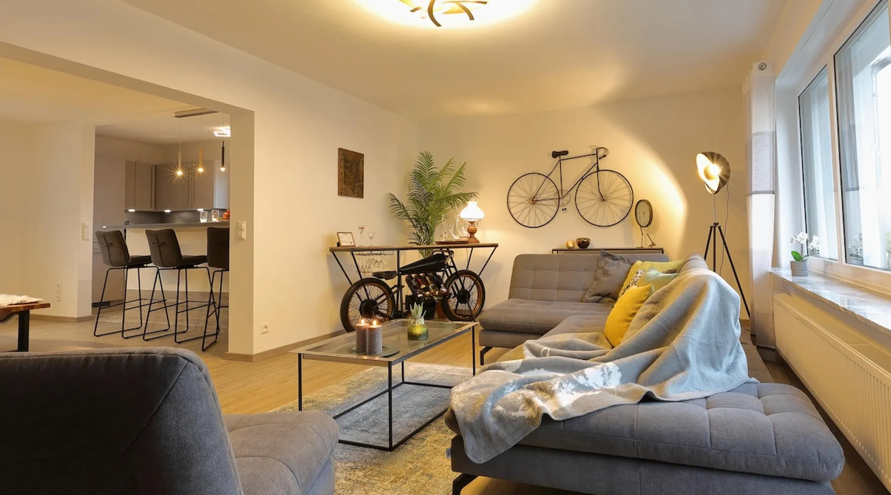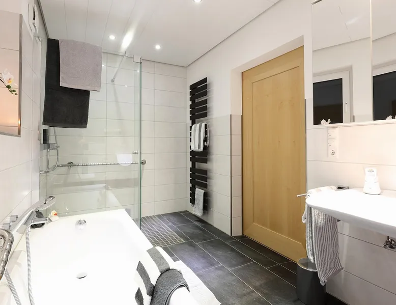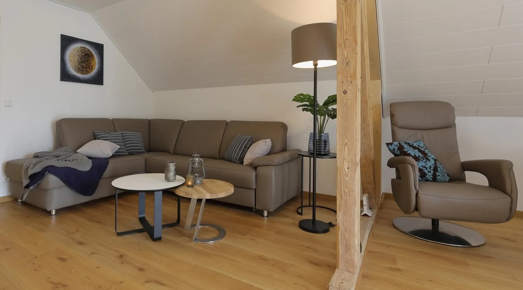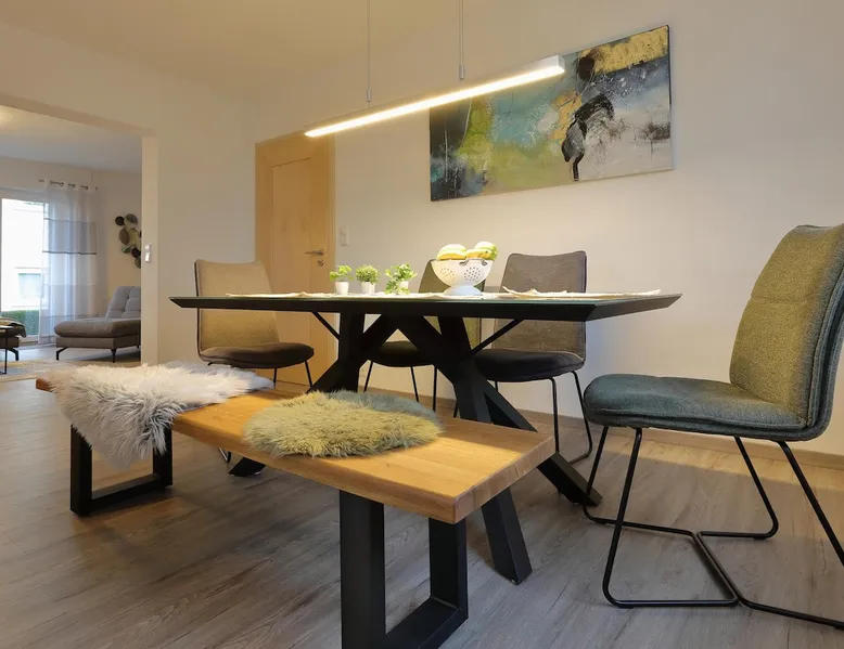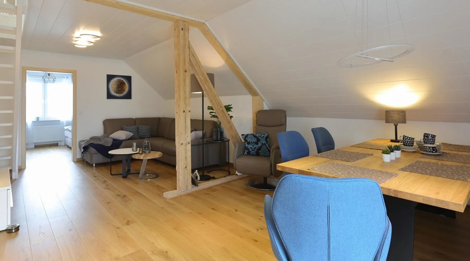 The comfortable and modern vacation home "Däschinger" with 5-star DTV classification welcomes you in the tranquil village of Mastershausen in the Hunsrück. The 210m² vacation home consists of 2 separate apartments, each with a living room, a well-equipped kitchen with dishwasher, a bathroom and a total of 4 bedrooms, offering space for 14 people. Further amenities include WLAN, a washing machine, Internet TV and a safe. The house also has a balcony. Other things to note The private outdoor area with lovingly landscaped garden, covered terrace with pergola and garden shed invites you to relax in the sun or enjoy a barbecue together. There is a bakery (170m) and a pizzeria (280m) just a few minutes' walk from the accommodation. The nearest large supermarkets are in the town of Kastellaun, a 10-minute drive away. The area is particularly popular with hikers and cyclists. The Masdascher Burgherrenweg and many other hiking and cycling trails invite you to actively explore the region. Other nearby attractions include the Hallgarten nature and adventure park with children's playground and pirate ship (1.2 km), the "Balduinseck" castle ruins (1.8 km) and the Geierlaybrücke, a suspension rope bridge between the neighboring villages of Sosberg and Mörsdorf (7.3 km). Parking spaces are available on the property and on the street. Bed linen and towels are included in the price. Iron, first aid kit and washing machine and dryer for communal use in the basement. Please note that pets are not allowed. In due course, the following fruits grow in the garden, which guests are welcome to pick and eat: Apples, cherries, strawberries and raspberries. Bedroom 1: double bed; Bedroom 2: double bed; Bedroom 3: double bed; Bedroom 4: double bed and 4 single beds; After booking, please fill in the Holidu contact form, which will be sent to you by e-mail, completely with your address. This will help the host to prepare your stay in the best possible way.