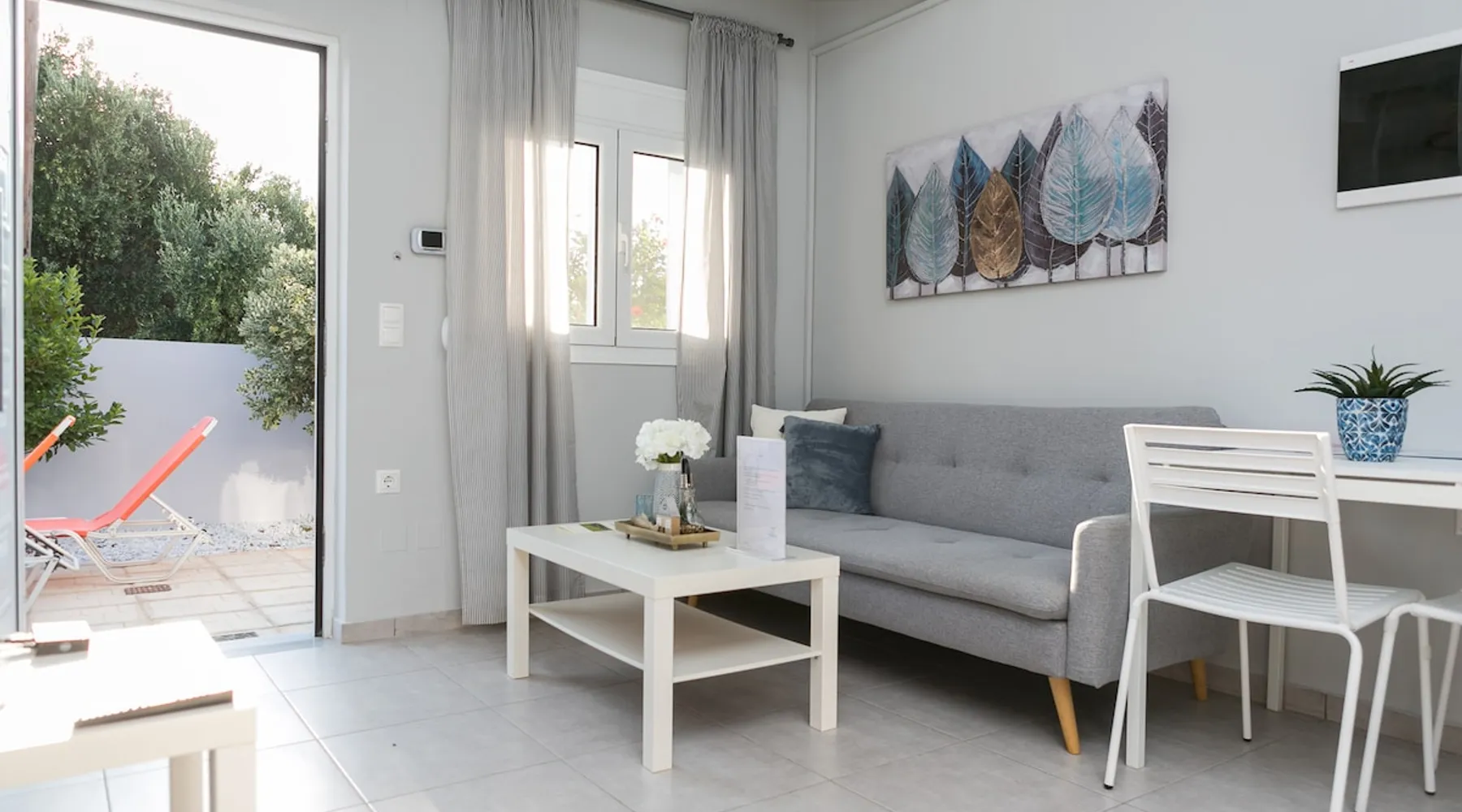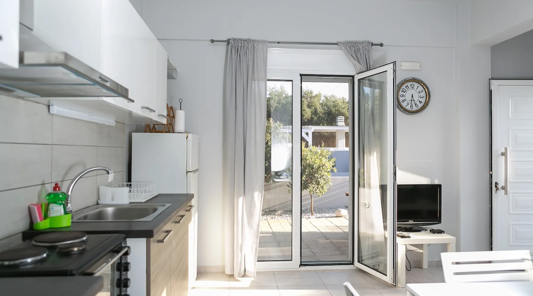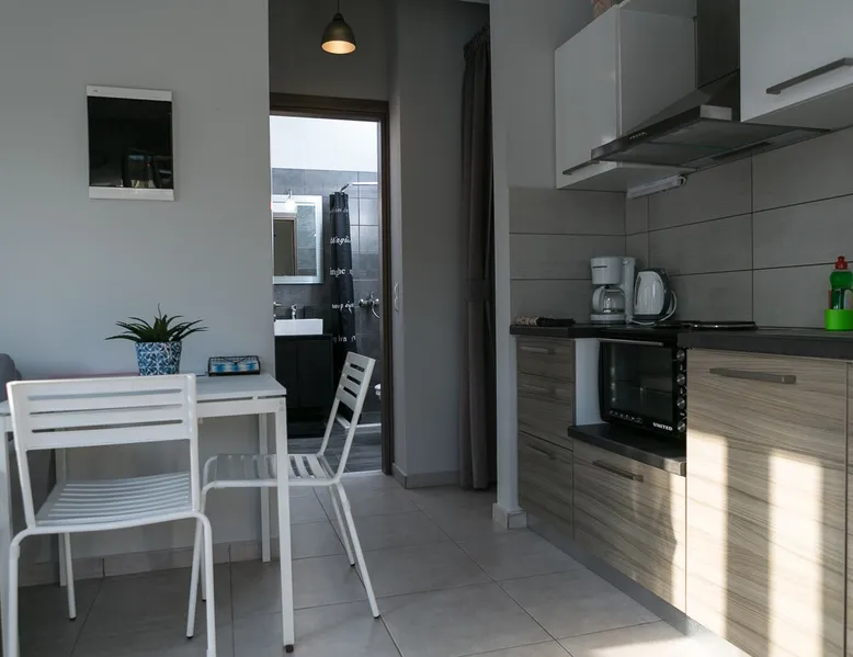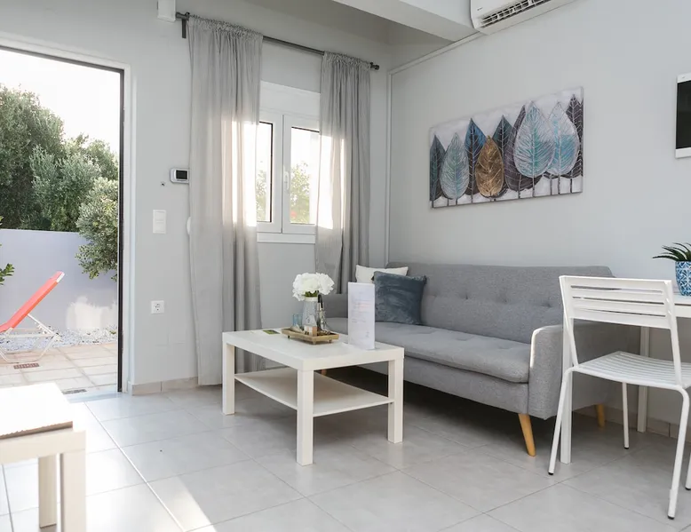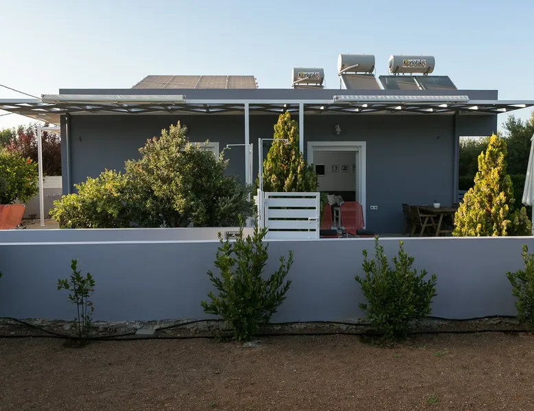 Self contained housing unit in Kato Gouves, newly built, about 40sqm, ground floor, 1 bedroom, 1 bathroom-wc, air conditioning, solar heating, private entrance and courtyard, open living room / kitchen, with car parking, CCTV, near the sea, no pets The space The housing unit (in a block of 3 joint) is located only 15 km east from Heraklion (15 minutes drive on the high way). It's only 300 meters from the beach and it's surrounded by flowers and olive trees. It has a private entrance and country yard and also a shower outside, which can be used, when return from swimming. The area is quite and you can take many walks around to discover the nature. Also in short distance, you can find supermarkets, coffee bars and little shops. The house inside, has one bedroom with a wardrobe with hangers,a floor fan, an iron and iron board. Also, there is a bathroom/wc with various amenities and essentials (towels, soap, shampoo, etc). Additionally, there is an open living room / kitchen with air-condition. This area has a smart TV with a variety of free satellite channels, a sofa bed, a fully equipped kitchen with a fridge, oven, kettle, coffee maker, dishes, glasses etc. Free wifi internet is available, in all rooms inside the house. Cretan Aquarium , one of the biggest and most interesting Aquariums in the Mediterranean Sea, is only 3km west of our location. The ''Dinosauria Park'', the ''International Exhibition Center of Crete'' and ''Planet Crete'', are also located in the same area. In Heraklion you can visit the palace of Knossos, the historical and archaeological museums, the old town of Heraklion with the Lions Square , the Loggia , the Venetian Harbor etc. Since we are located in the middle of the island , it makes it ideal for daily excursions all over the island. Guest access In the demarcated area of the house and it's yard Other things to note The Housing unit is located only 15 km east from Heraklion ( 15 minutes drive on the high way ) where you can visit the palace of Knossos, the historical and archaiological museums, the old town of Heraklion with the Lions Square , the Loggia , the Venetian Harbor etc. Cretan Aquarium , one of the biggest and most interesting Aquariums in the Mediterranean Sea, is only 1km west of our location. Since we are located in the middle of the island , it makes it ideal for daily excursions all over the island. Registration Details 00000115601