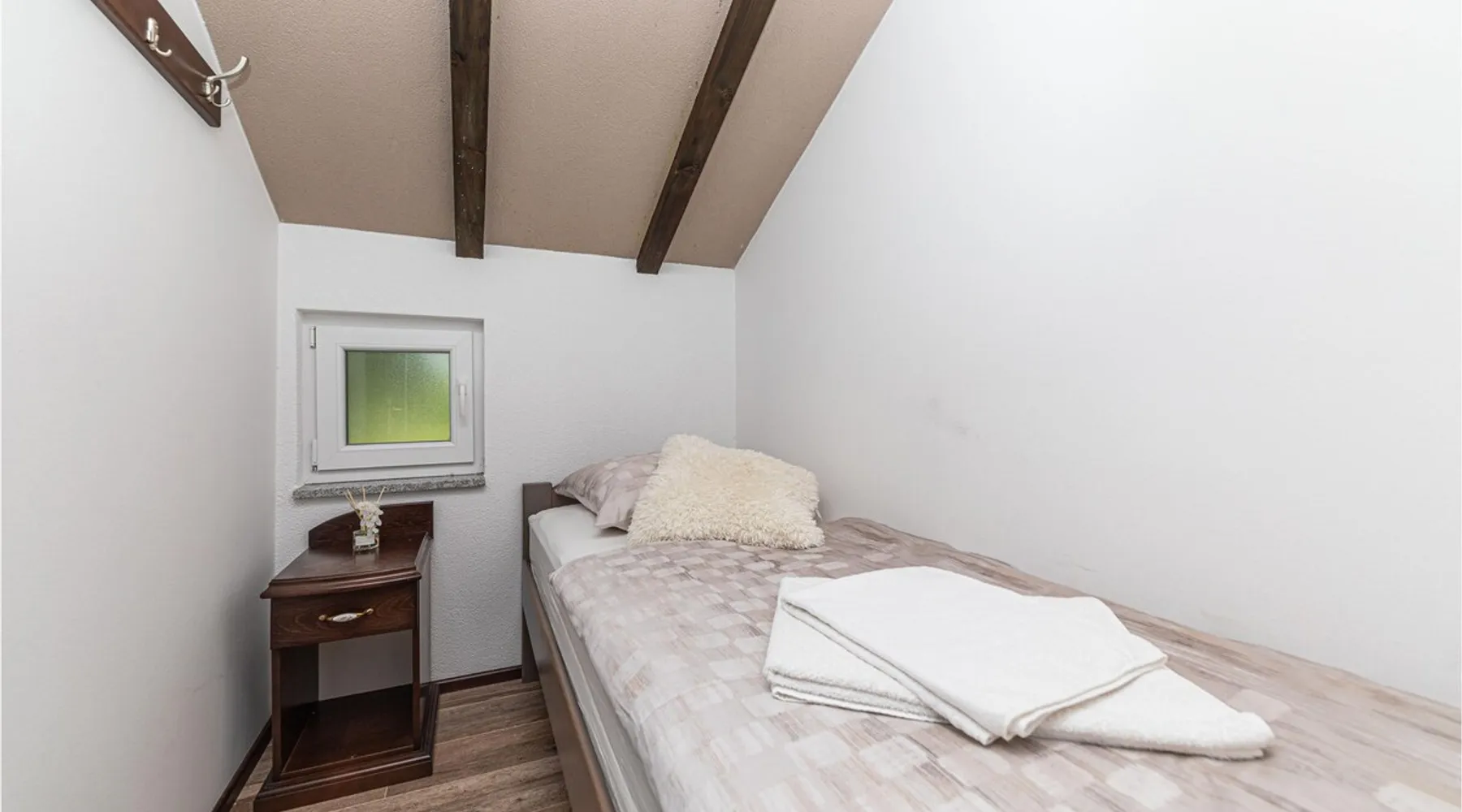 This fantastic vacation home with pool is located on an approx. The space This fantastic vacation home with pool is located on an approx. 26,000 m² plot and besides many equipment highlights, the absolute special feature is the wonderful view of the mountainous natural landscape. Here you will spend a vacation in the countryside, where you can get plenty of fresh air and enjoy your privacy. The interior consists of a kitchen-living room with dining area and a bathroom on the first floor, while upstairs are three bedrooms and another bathroom. In the well-maintained garden you will find a large pool, jacuzzi, gazebo, barbecue area as well as children's playground equipment for the younger guests. The owner offers guided tours of his own animal park. Can comfortably fit up to 5 people Other things to note Please note that: Bed linen and towels are included in the room rate in 2025. Consumption costs are included in the room rate.