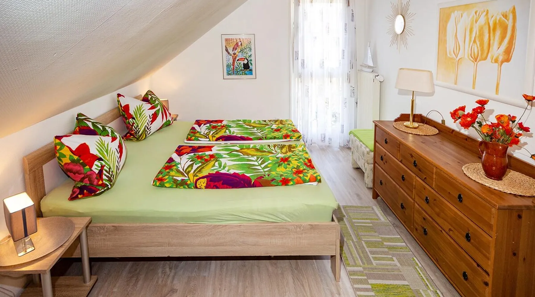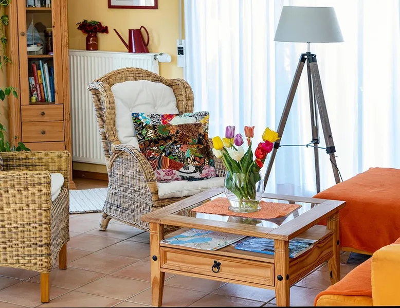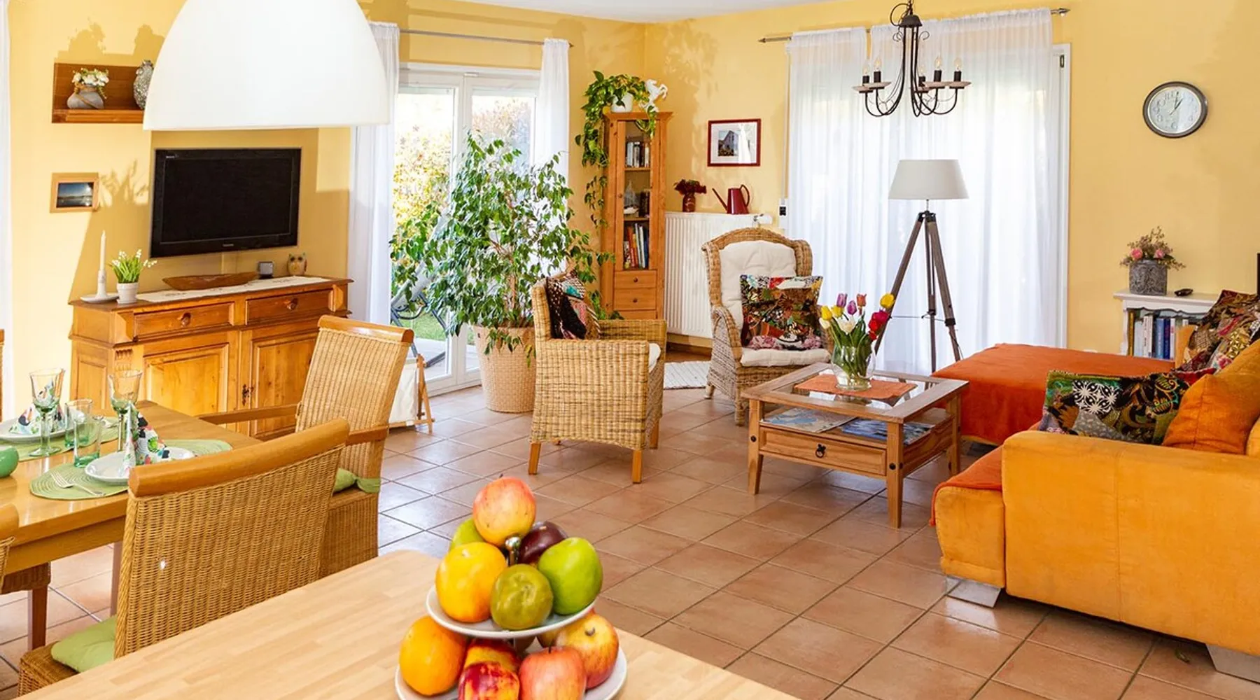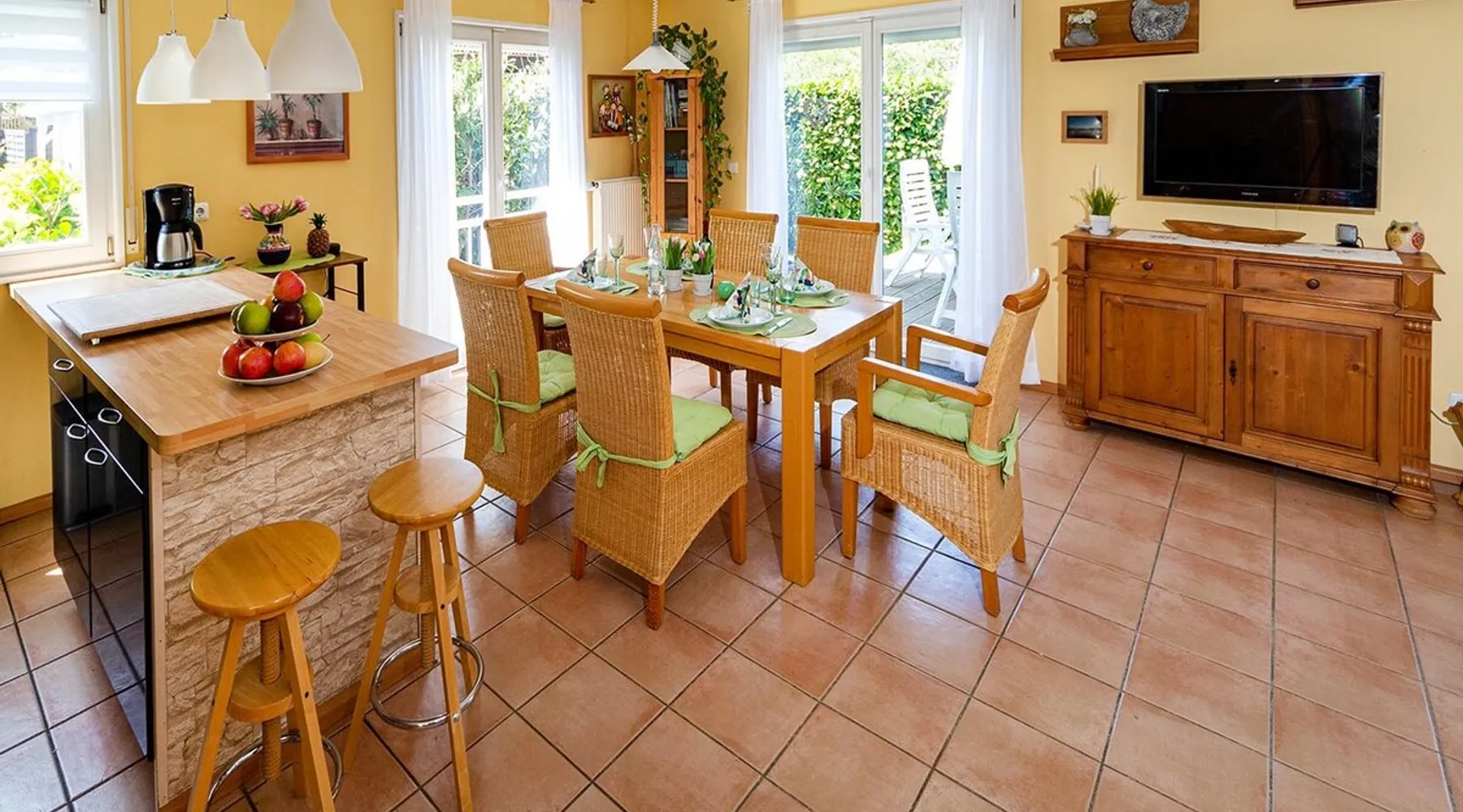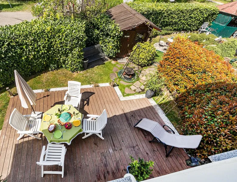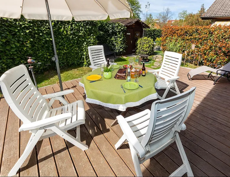 The tastefully furnished house is situated in a quiet residential area and has an idyllic garden with barbecue area.
