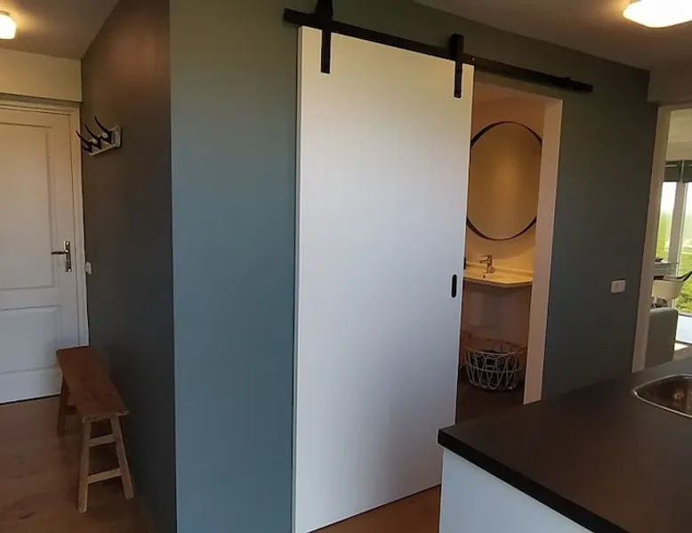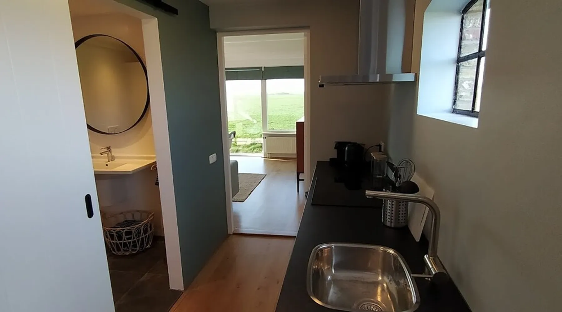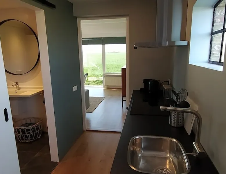 Beautiful views over the meadows! Completely new 2-person holiday apartment, located between the two Frisian eleven cities of Workum and Hindeloopen. The apartment overlooks the meadows towards Hindeloopen and offers the basis for a multi-day stay in beautiful Friesland. The apartment is within cycling distance of the most beautiful places in Southwest Friesland. You can also enjoy the woods of Gaasterland or cycle along the beautiful Frisian lakes. The space The apartment is connected to the home of the homeowners and has its own entrance and terrace. The apartment's bright living room has a sliding door that gives access to the terrace with seating, parasol and two standing chairs. The kitchen is equipped with a refrigerator, dishwasher, oven and electric hob. Also there is a kettle and a Nespresso coffee machine available. Coffee cups, tea and accessories are present in the apartment. As well as kitchen textiles (tea towels, kitchen towels and dish towels), dishwasher tablets, dish soap, hand soap, hand soap, garbage bags, pepper, salt and olive oil. The bathroom has a rain shower, a wide sink and a toilet. Towels, toilet paper and a hairdryer are provided. The bedroom is located in the upper level. The beds (2 box spring beds of 90x210 cm) are made on arrival. If desired, we can put the beds as two separate beds in the bedroom for you. No smoking inside the apartment. No smoking inside the apartment.