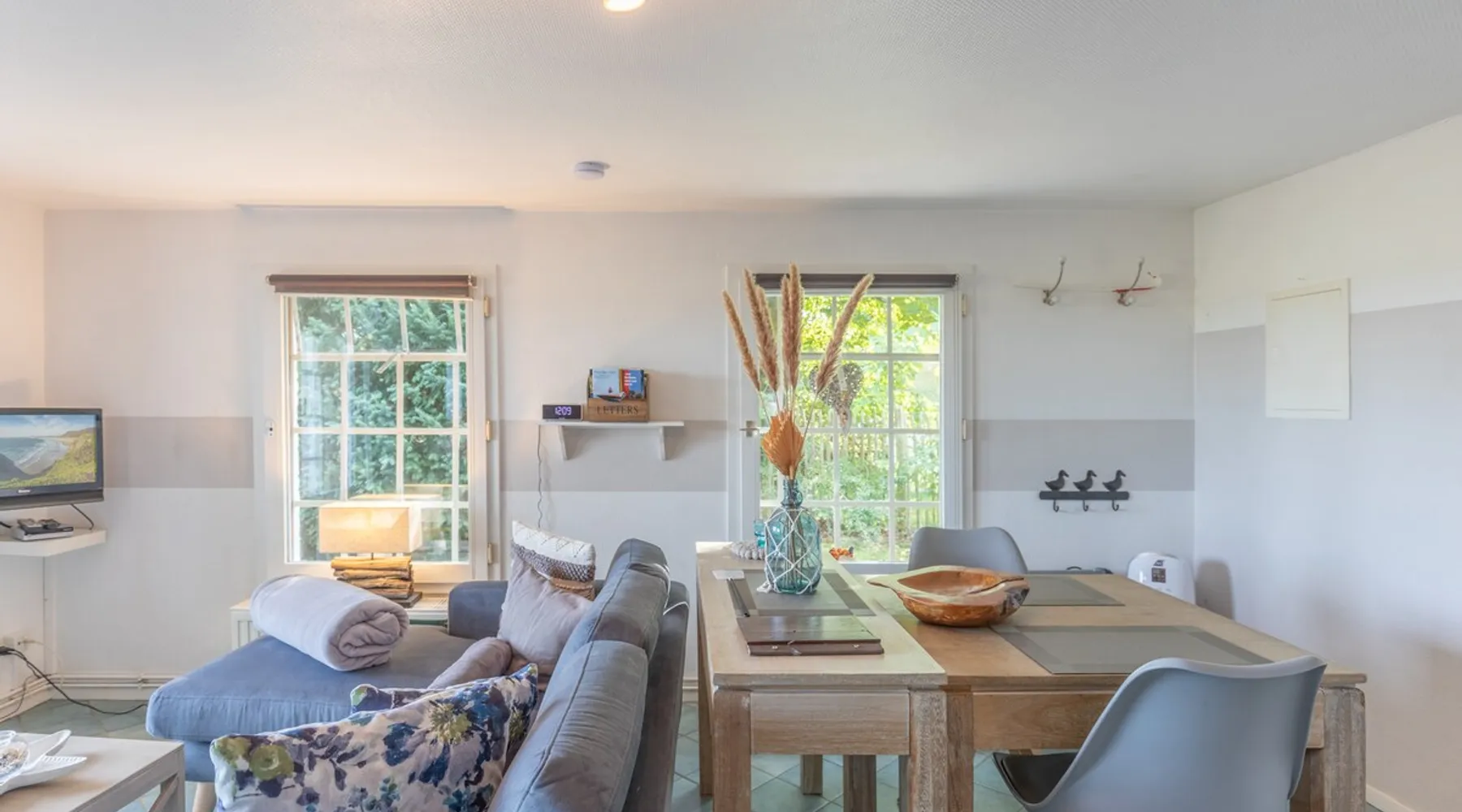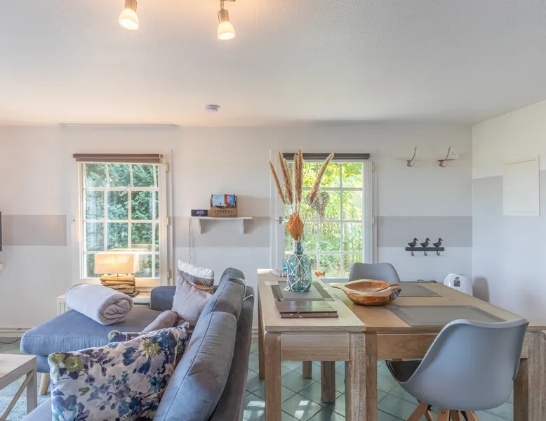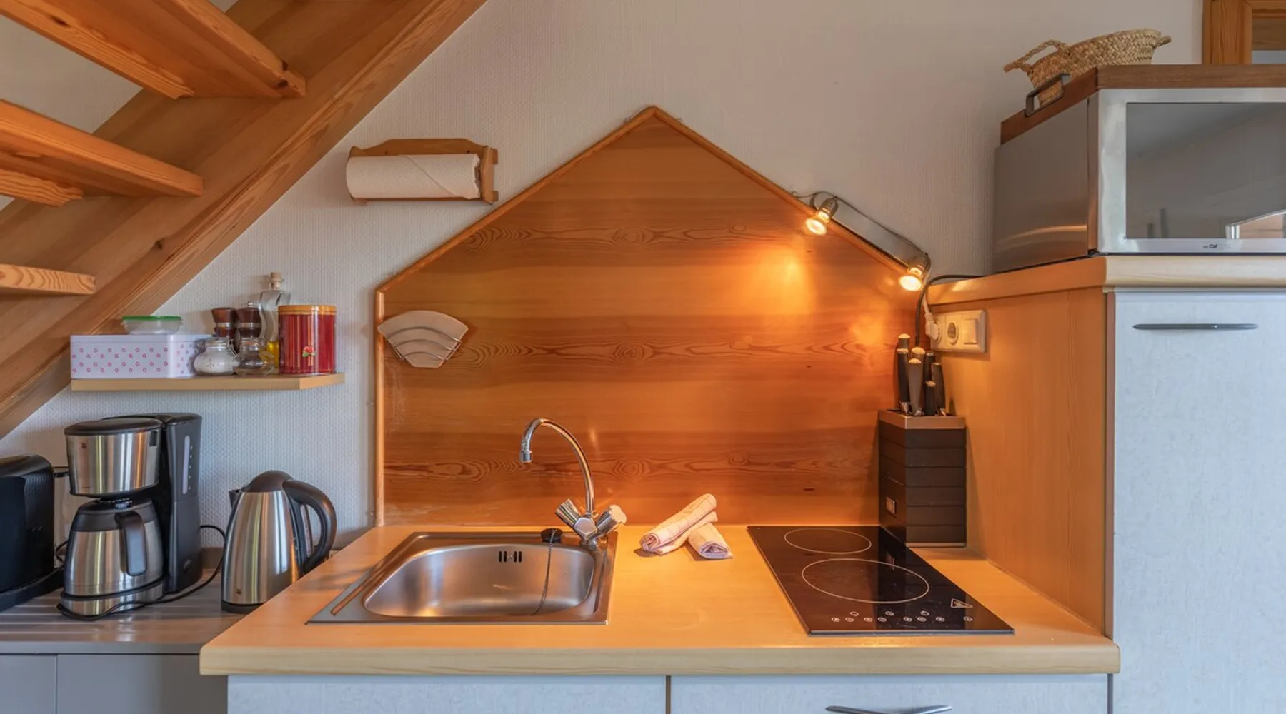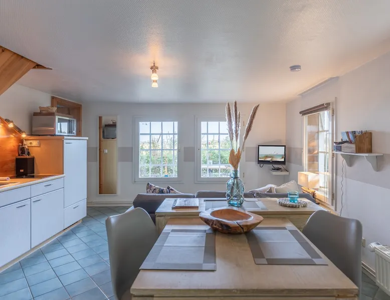 Welcome to the Kastanienhof! Spread over 2 floors, this two-person apartment offers a cozy living area, well-equipped kitchenette, and downstairs shower room. The double bedroom can be reached via a staircase upstairs. Four-legged friends are welcome, WiFi available, parking included Linens and towels are included. Enjoy nature and vastness! Other things to note Welcome to the Kastanienhof: enjoy the wide fields, the nature in abundance! Take long walks or just chill out on the *contact info removed* sqm property. Location In the middle of fields, the Kastanienhof is located on the so-called Lagedeich. Enjoy the vastness and country life. The nearest shops and bakeries can be found in Schwabstedt (about 3,5 km away). Husum with its idyllic harbor, cafes and restaurants can be reached in 12 km, St. Peter-Ording with its stretched sandy beach in 45 km. Amenities The apartment for two stretches stretches over 2 levels: in the large living area you will find a cozy sitting area with sofa, flat screen. The open kitchenette is equipped with a 2-burner stove, a microwave, Nespresso machine, coffee machine (filter size 4). The shower bathroom on the ground floor completes the picture. An open staircase leads to the upstairs bedroom with a double bed (180 x *contact info removed* On the fenced terrace, you can end your day comfortably on garden furniture. The special features In our non-smoking apartment, your four-legged friends are welcome. We are happy to provide free WiFi to our guests. The apartment has a parking space. The shared garden (fenced all around) can use two- and four-legged friends to romp and play. An initial supply of bed linen and towels is mandatory at this property and is already included in the final price. Additional laundry packages can be booked in the optional services.