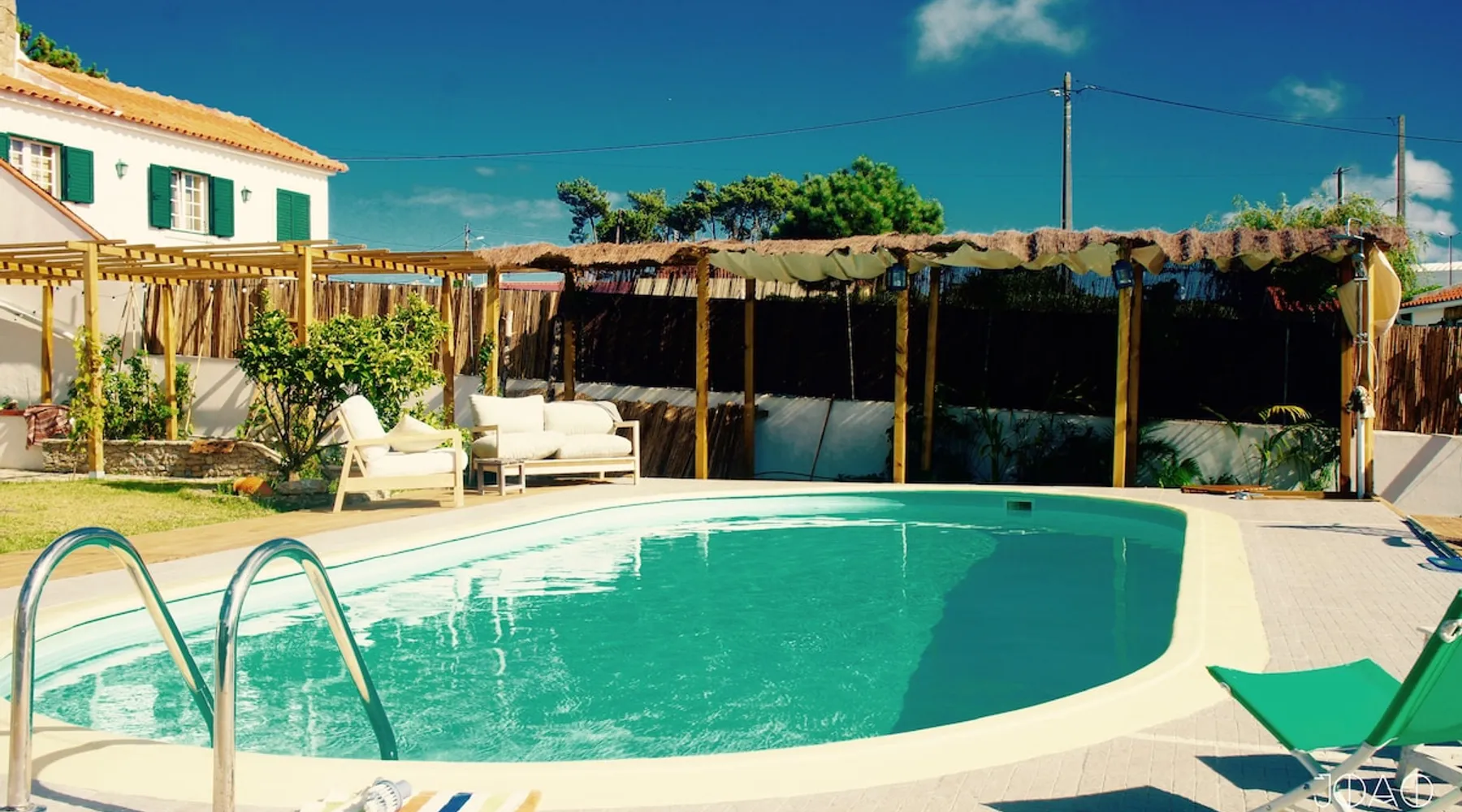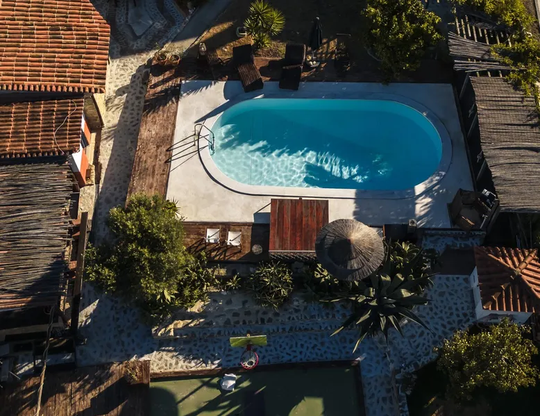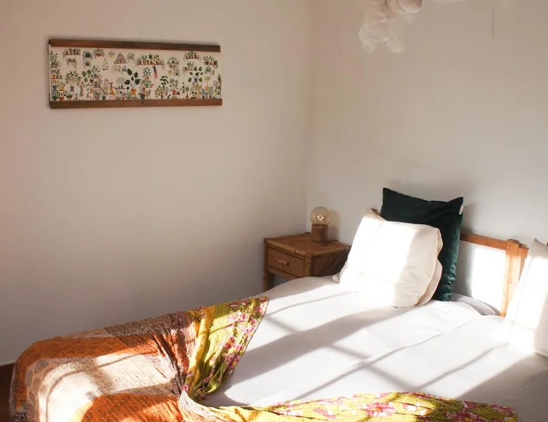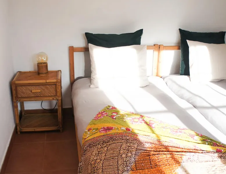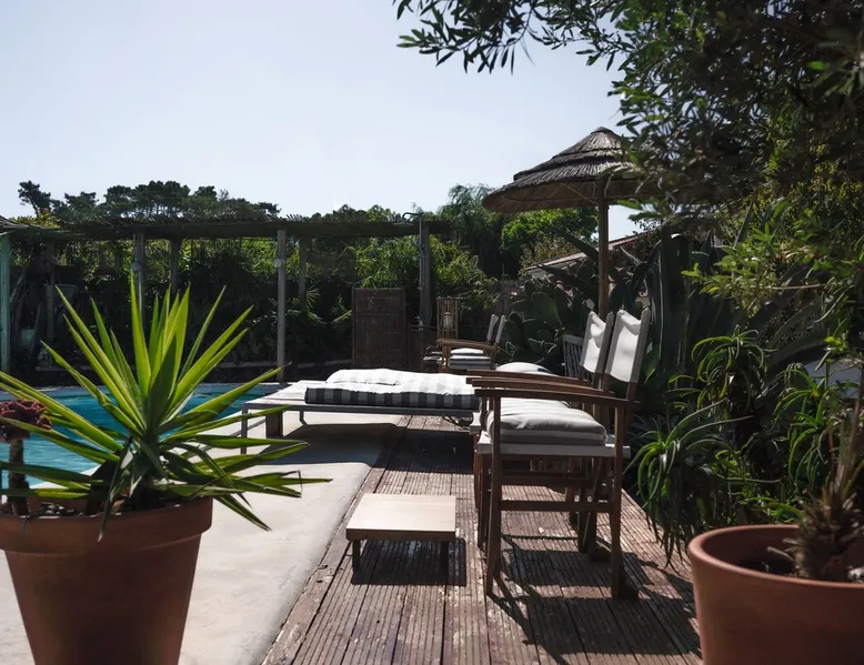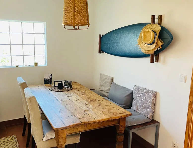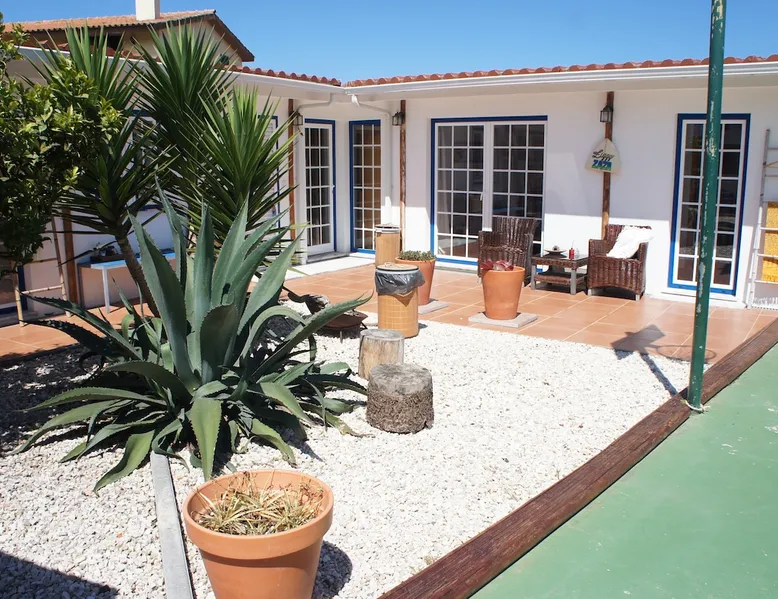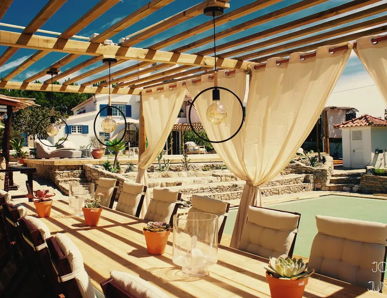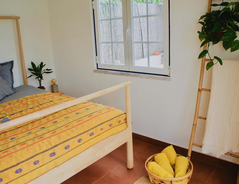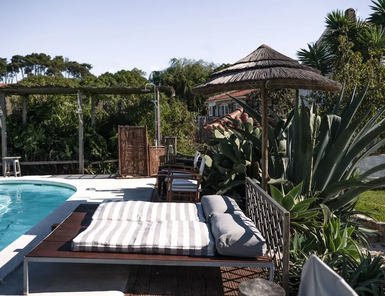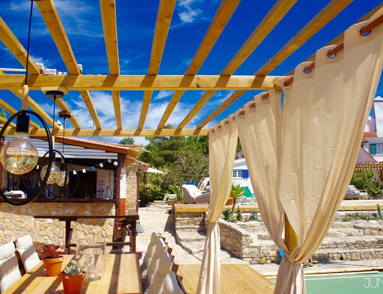 In the back of the garden the new family apartment (built in 2019 and 56 m²) has its own terrace, a living with a modern open kitchen, smart TV, internet and two double bedrooms (one with queen size bed, the other twin-bedded) with the bathroom in between. It is perfect for one or two couples or a family (an extra baby bed/cot is available). The garden has a bar and dining area. The pool is only a few steps away from your apartment and has its own terrace. The space From the private terrace there is a main entrance to the living/kitchen area, but also a separate entrance to a hall between the two bedrooms. João Jungle, located in the village of Assafora, offers three family apartments and one tastefully renovated studio apartment in the outbuilding of the villa adjoining the terrace with the swimming pool. Located in the northern part of the Unesco World Heritage Sintra Cascais Natural Park with the ocean just a few hundred meters away and only a 30-minute drive to the centre of Lisbon, the accommodation is perfectly fit for guests that enjoy nature, sports and cultural activities. Guest access Excellent Internet connection (75,82 Mbps). Work table and chair available. Guests may make use of the outside BBQ, the OFYR outdoor cooking or Wood Fired Oven (pizza oven) basket field, the pool and the outdoor bar. Other things to note Additional cost: bedlinen fee €45 and towel charge €40. Heating is available at additional cost: €56 per gas bottle. Laundry facilities are available at additional cost (only for personal, small-scale washing, not for bedding): €8 per washing/€8 per tumble dryer). Two weekly cleaning and clean bedlinen & towels are kindly required at €45. Pets are allowed at additional cost (€20 per pet, up to one week stay) and only under good terms and conditions. Suitable for two up to four people. Baby cot on request (€25). Ziggy Zaza is facing South/East Registration Details 91628/AL