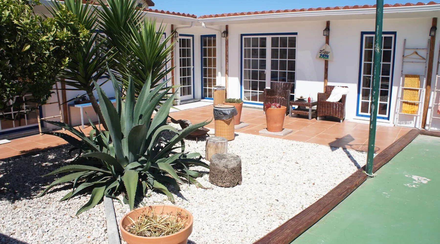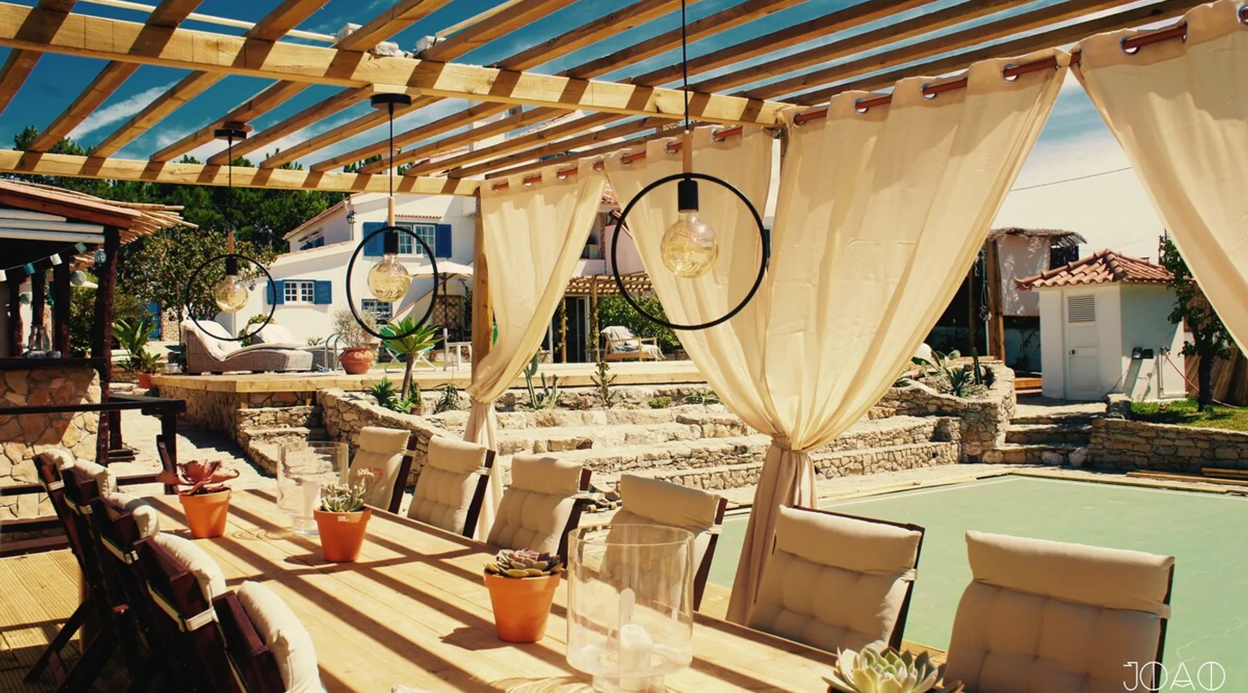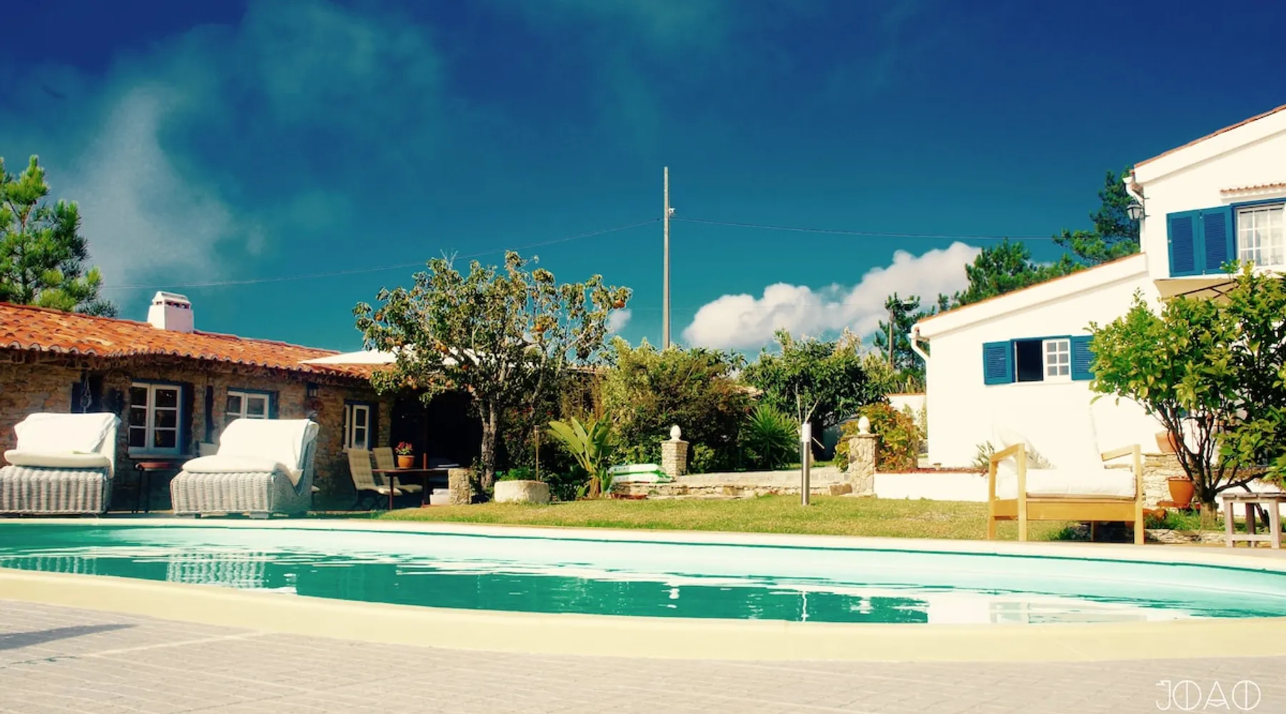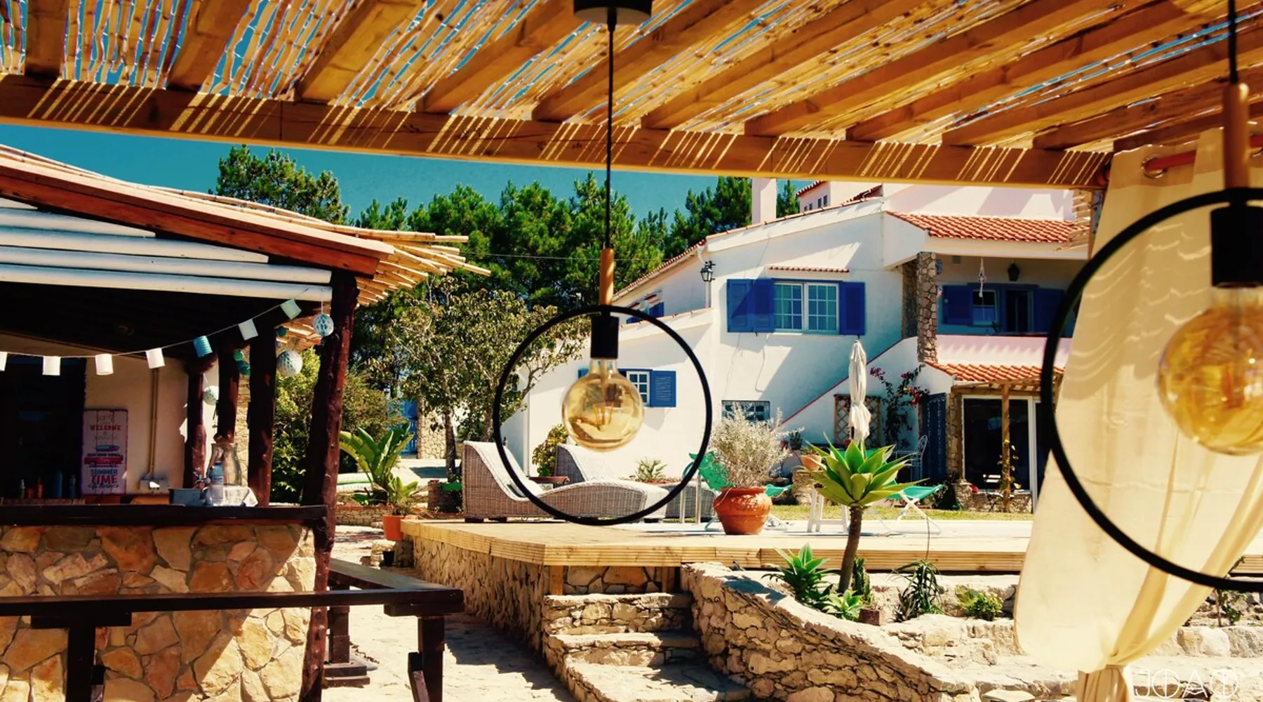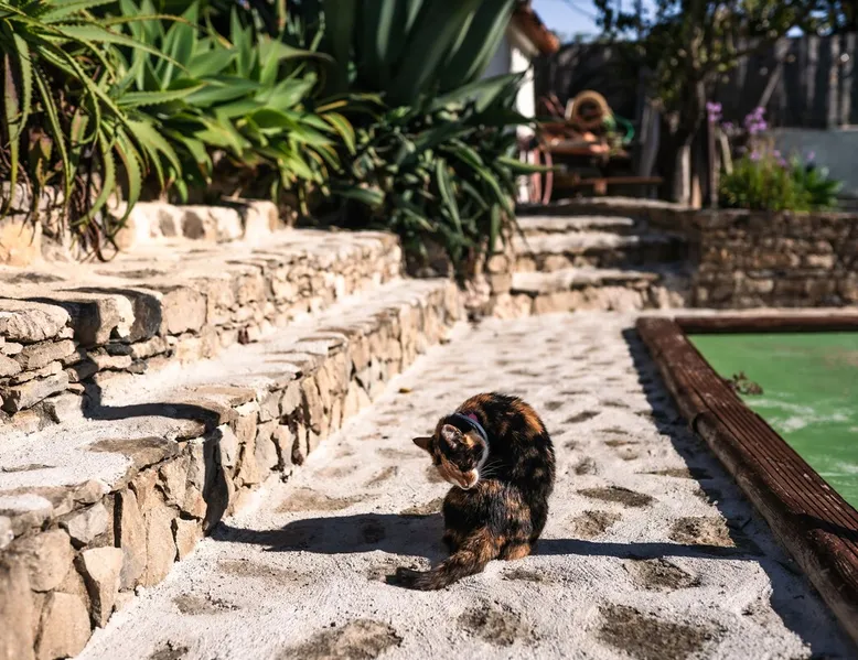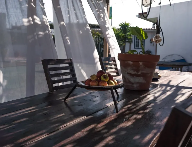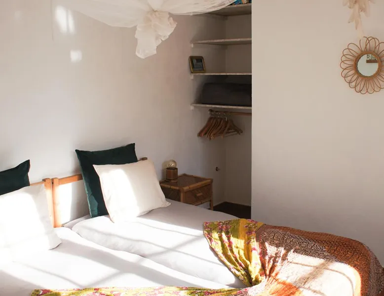 In the back of the garden the new family apartment (built in 2019 and 56 m²) has its own terrace, a living with a modern open kitchen, smart TV, internet and two double bedrooms (one with queen size bed, the other twin-bedded) with the bathroom in between. It is perfect for one or two couples or a family (an extra baby bed/cot is available). The garden has a bar and dining area. The pool is only a few steps away from your apartment and has its own terrace. The space From the private terrace there is a main entrance to the living/kitchen area, but also a separate entrance to a hall between the two bedrooms. João Jungle, located in the village of Assafora, offers three family apartments and one tastefully renovated studio apartment in the outbuilding of the villa adjoining the terrace with the swimming pool. Located in the northern part of the Unesco World Heritage Sintra Cascais Natural Park with the ocean just a few hundred meters away and only a 30-minute drive to the centre of Lisbon, the accommodation is perfectly fit for guests that enjoy nature, sports and cultural activities. Guest access Excellent Internet connection (75,82 Mbps). Work table and chair available. Guests may make use of the outside BBQ, the OFYR outdoor cooking or Wood Fired Oven (pizza oven) basket field, the pool and the outdoor bar. Other things to note Additional cost: bedlinen fee €45 and towel charge €40. Heating is available at additional cost: €56 per gas bottle. Laundry facilities are available at additional cost (only for personal, small-scale washing, not for bedding): €8 per washing/€8 per tumble dryer). Two weekly cleaning and clean bedlinen & towels are kindly required at €45. Pets are allowed at additional cost (€20 per pet, up to one week stay) and only under good terms and conditions. Suitable for two up to four people. Baby cot on request (€25). Ziggy Zaza is facing South/East Registration Details 91628/AL