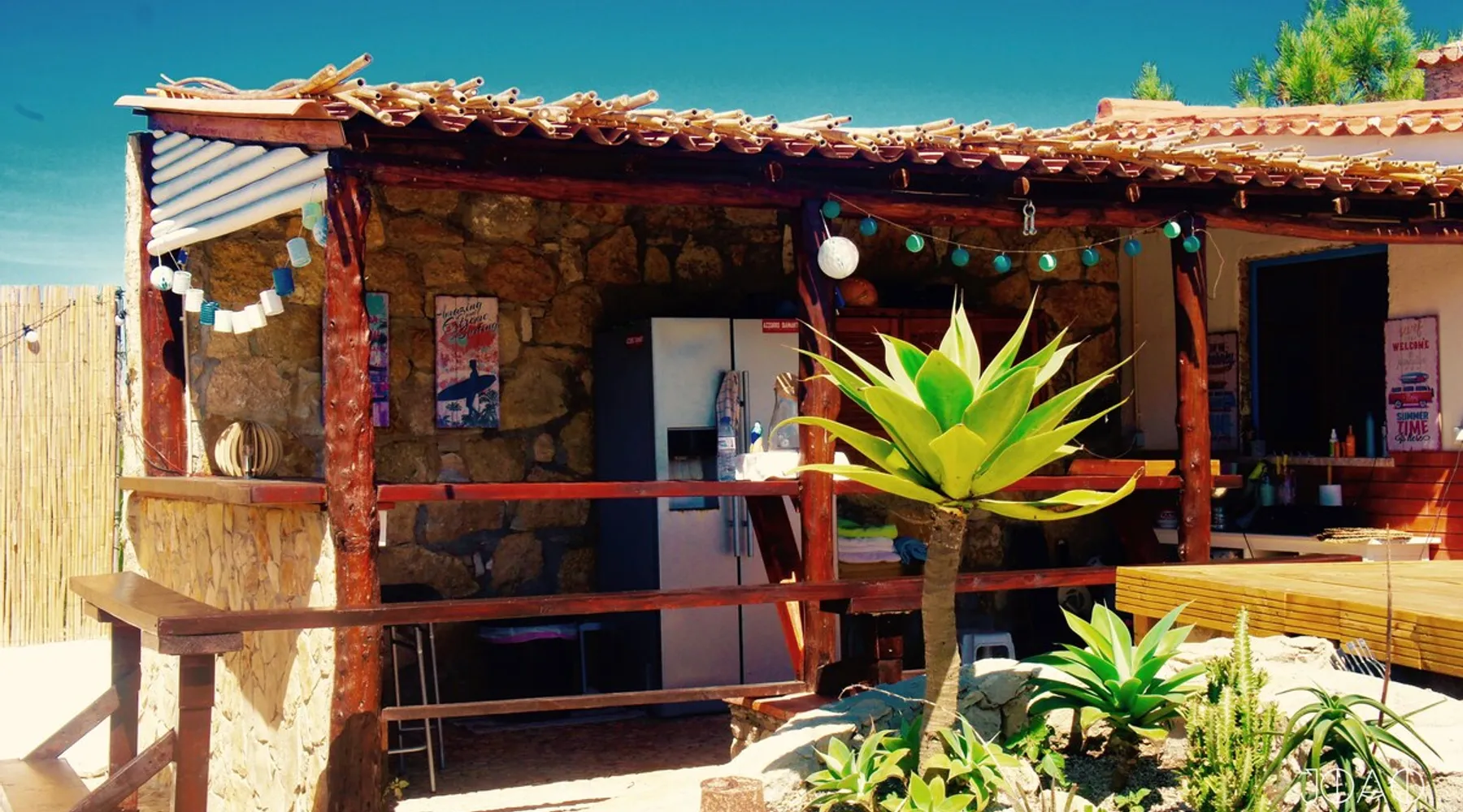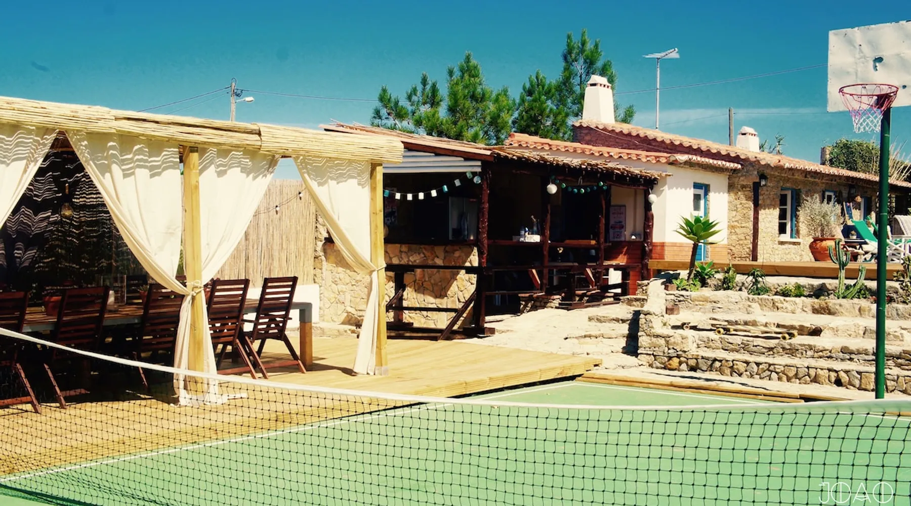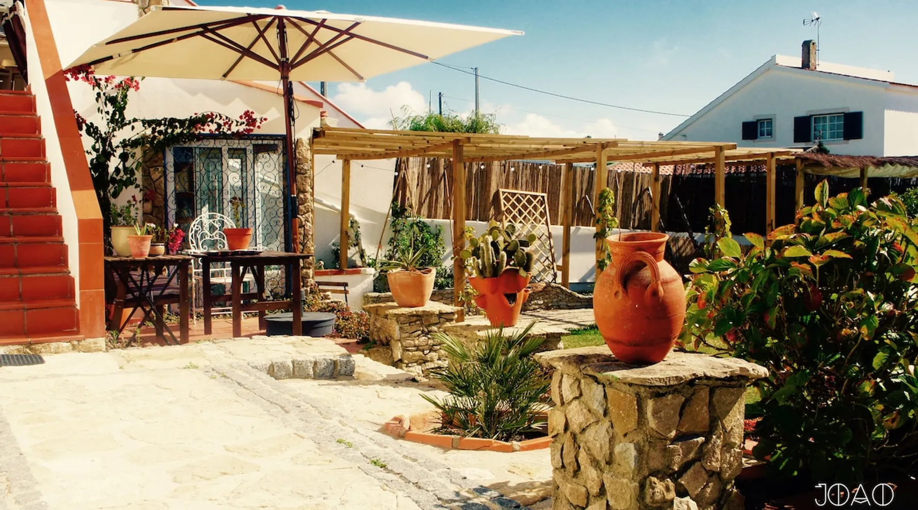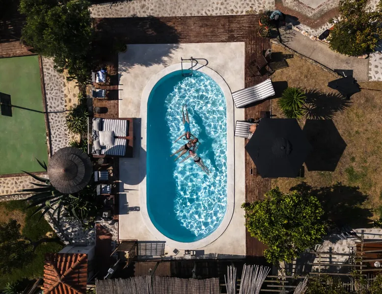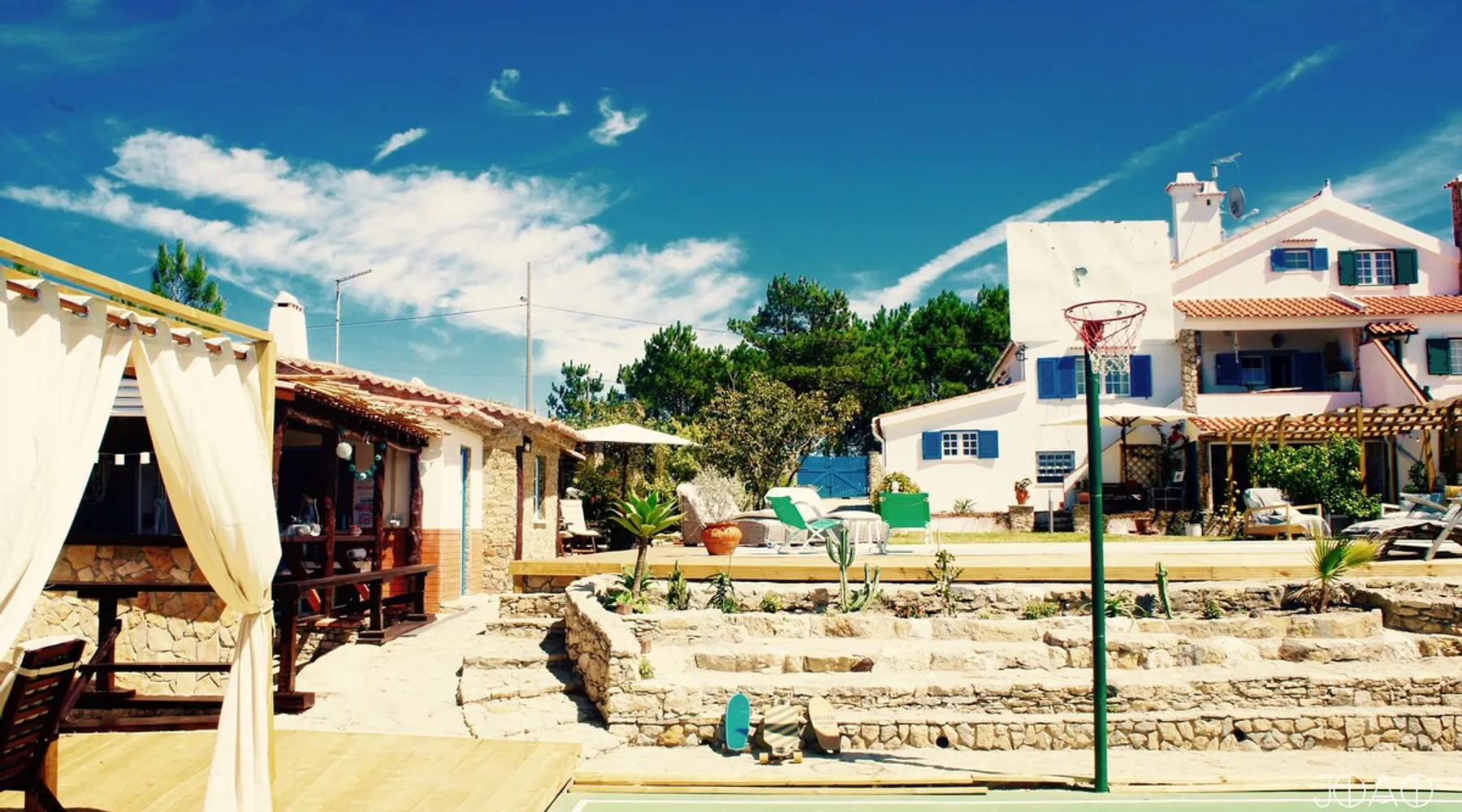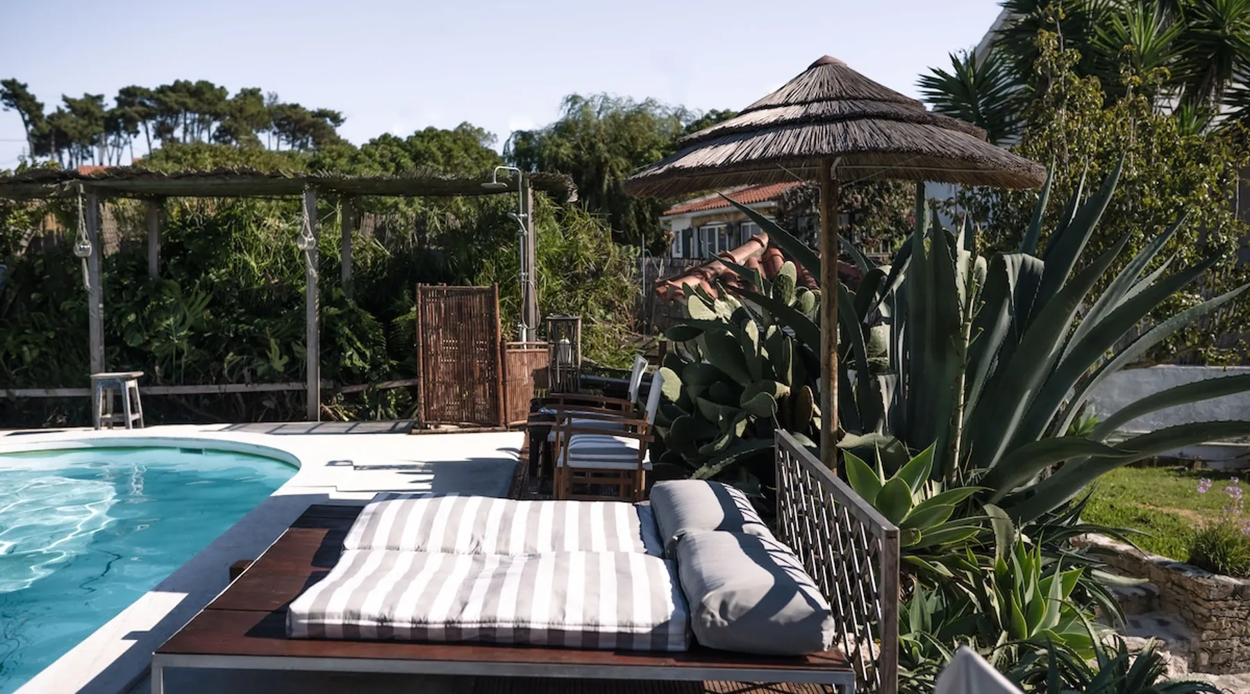 In the back of the garden the new family apartment (built in 2019 and 56 m²) has its own terrace, a living with a modern open kitchen, smart TV, internet and two double bedrooms (one with queen size bed, the other twin-bedded) with the bathroom in between. It is perfect for one or two couples or a family (an extra baby bed/cot is available). The garden has a bar and dining area. The pool is only a few steps away from your apartment and has its own terrace. The space From the private terrace there is a main entrance to the living/kitchen area, but also a separate entrance to a hall between the two bedrooms. João Jungle, located in the village of Assafora, offers three family apartments and one tastefully renovated studio apartment in the outbuilding of the villa adjoining the terrace with the swimming pool. Located in the northern part of the Unesco World Heritage Sintra Cascais Natural Park with the ocean just a few hundred meters away and only a 30-minute drive to the centre of Lisbon, the accommodation is perfectly fit for guests that enjoy nature, sports and cultural activities. Guest access Excellent Internet connection (75,82 Mbps). Work table and chair available. Guests may make use of the outside BBQ, the OFYR outdoor cooking or Wood Fired Oven (pizza oven) basket field, the pool and the outdoor bar. Other things to note Additional cost: bedlinen fee €45 and towel charge €40. Heating is available at additional cost: €56 per gas bottle. Laundry facilities are available at additional cost (only for personal, small-scale washing, not for bedding): €8 per washing/€8 per tumble dryer). Two weekly cleaning and clean bedlinen & towels are kindly required at €45. Pets are allowed at additional cost (€20 per pet, up to one week stay) and only under good terms and conditions. Suitable for two up to four people. Baby cot on request (€25). Ziggy Zaza is facing South/East Registration Details 91628/AL