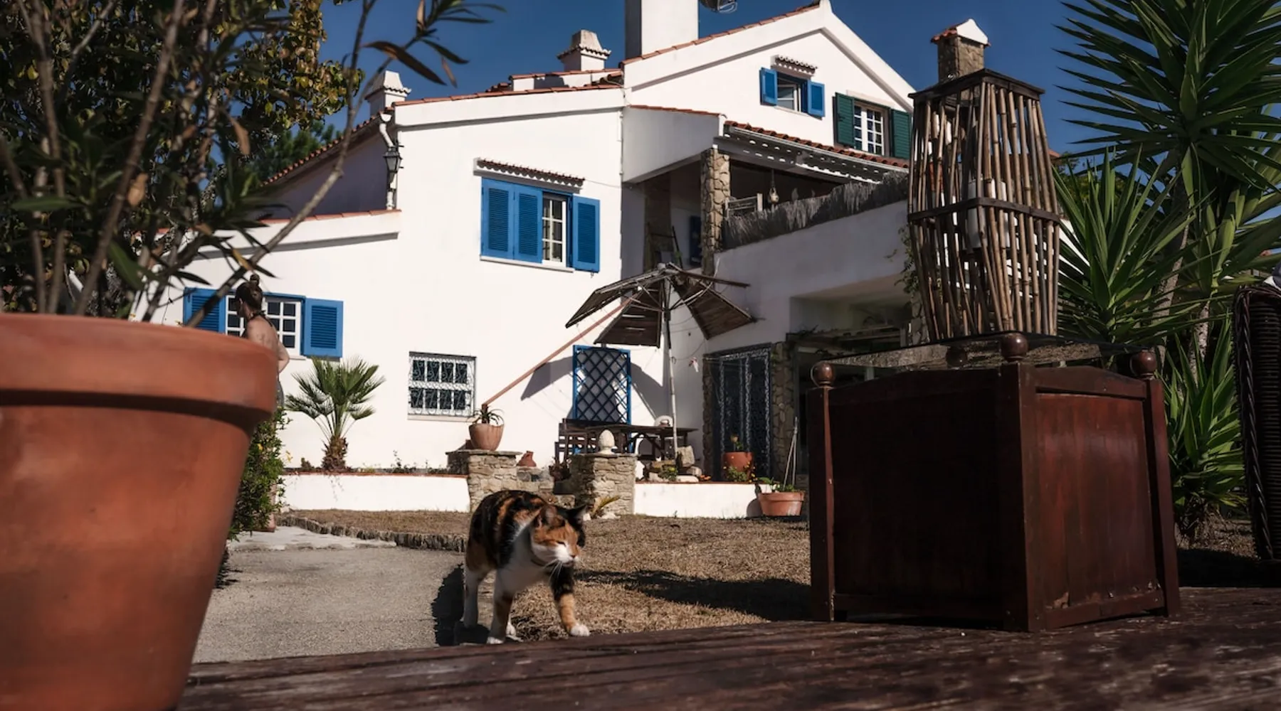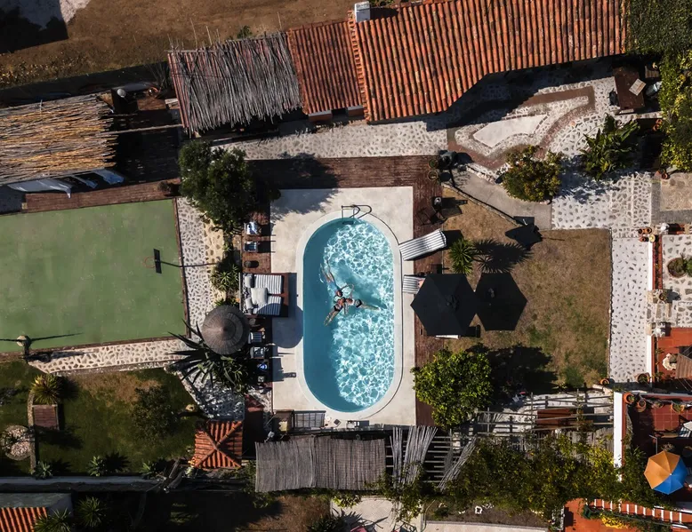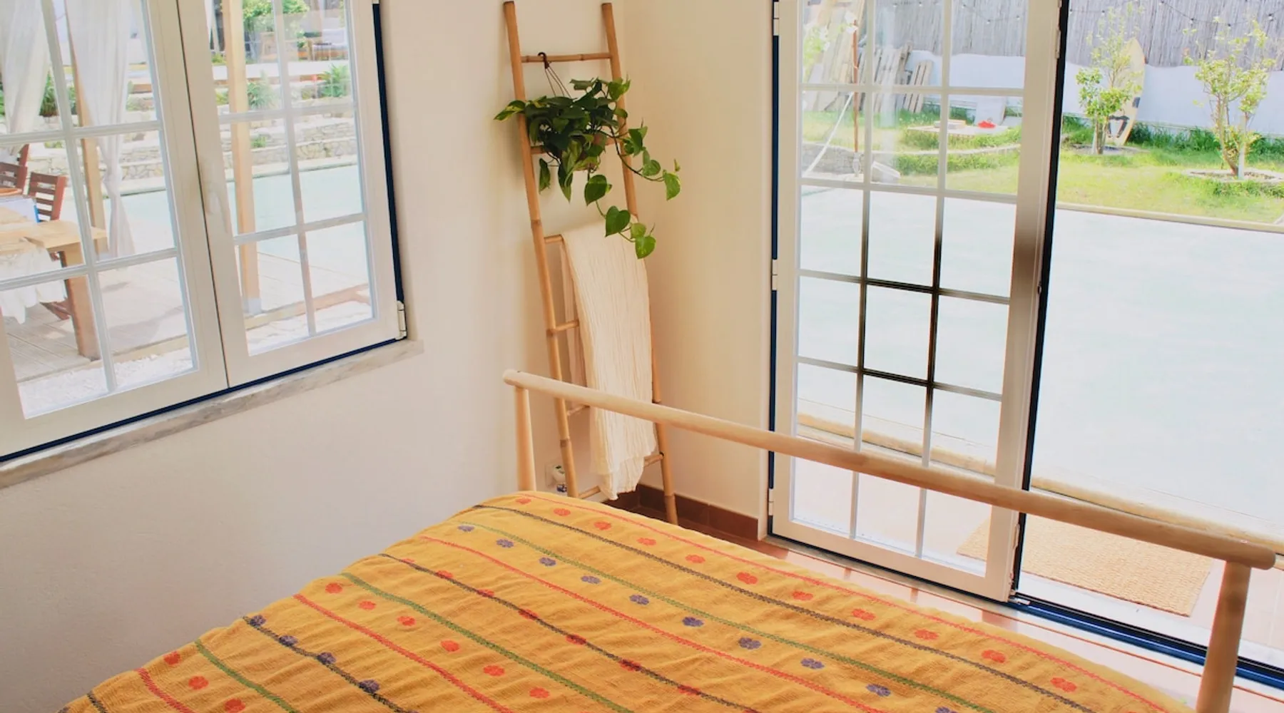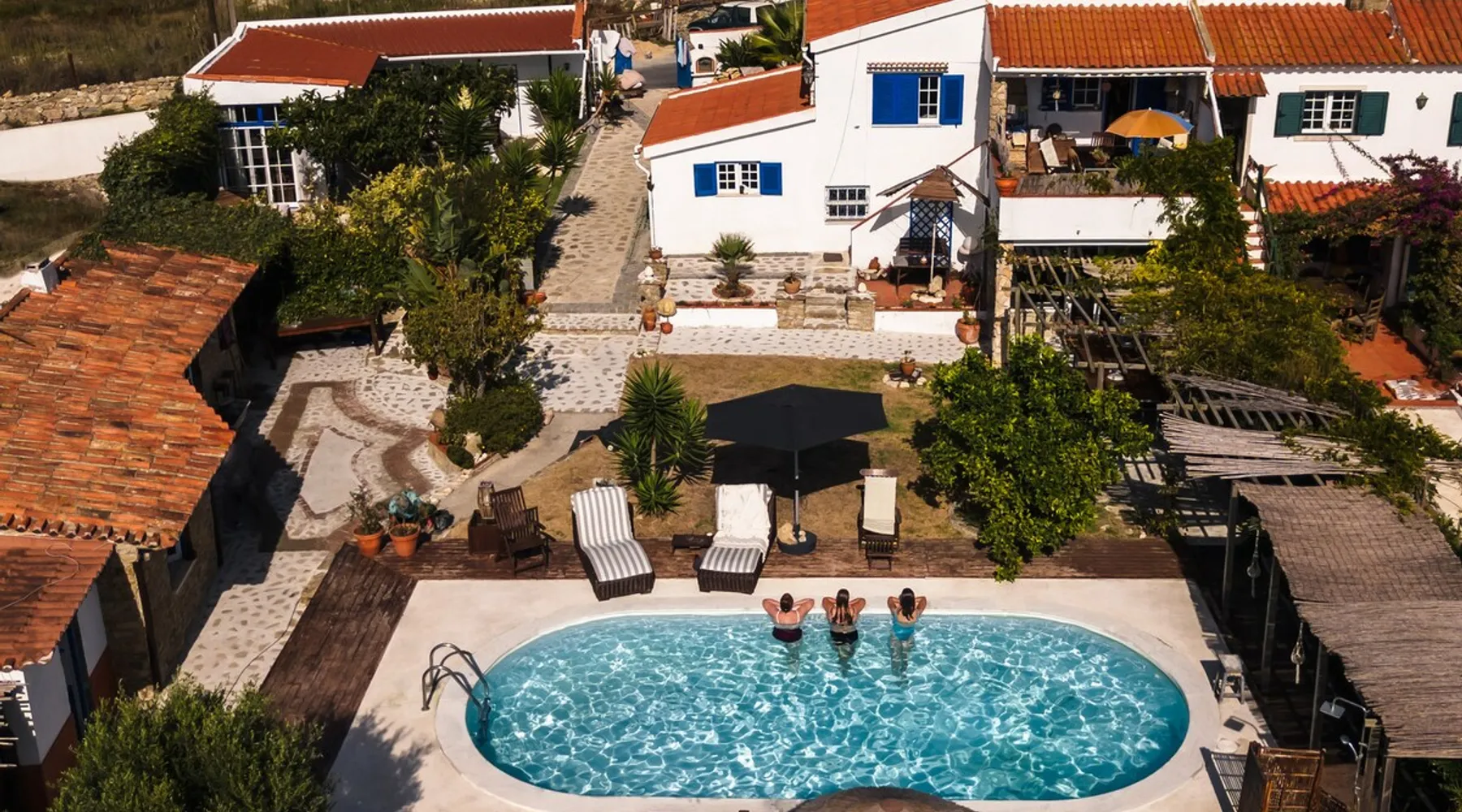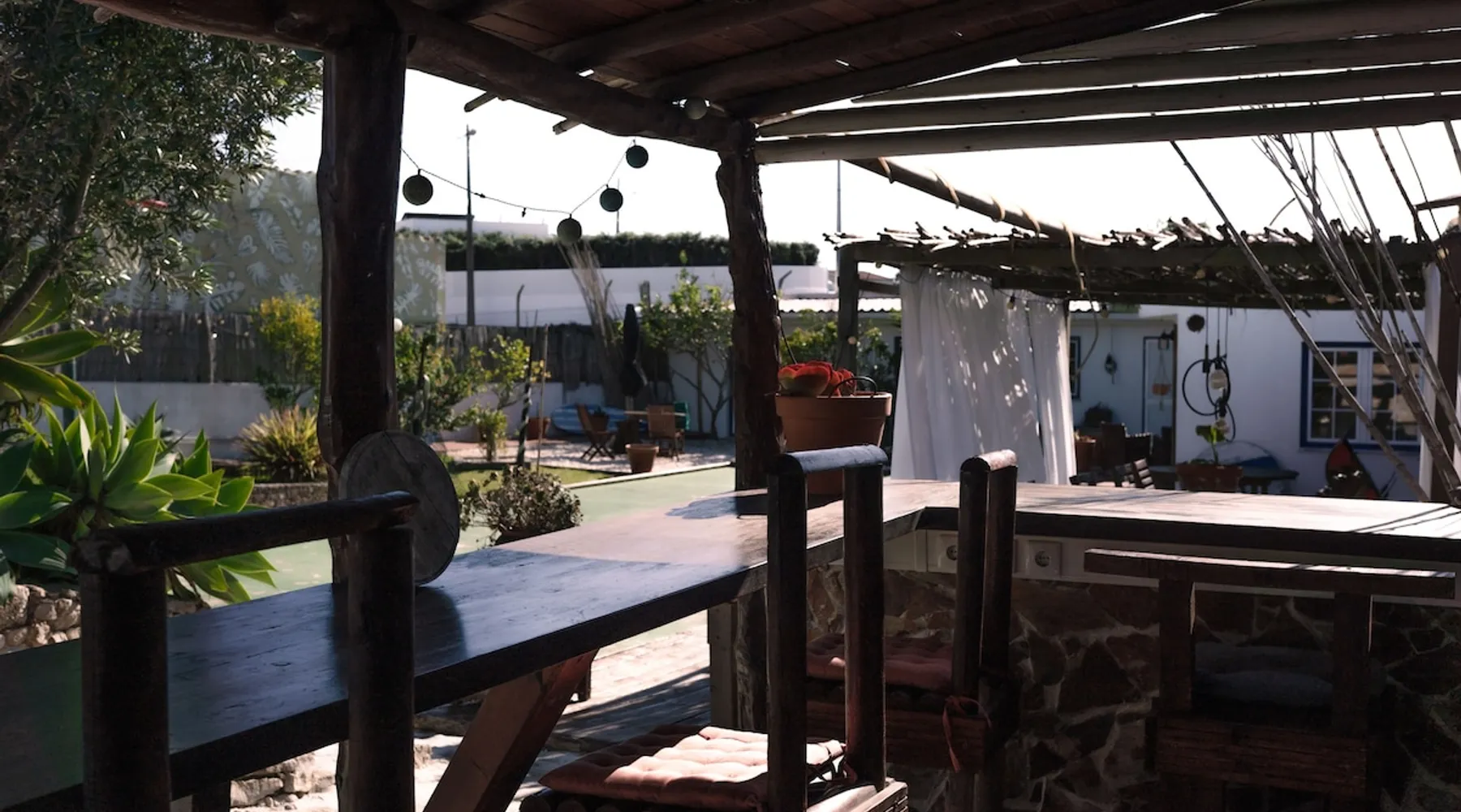 In the back of the garden the new family apartment (built in 2019 and 56 m²) has its own terrace, a living with a modern open kitchen, smart TV, internet and two double bedrooms (one with queen size bed, the other twin-bedded) with the bathroom in between. It is perfect for one or two couples or a family (an extra baby bed/cot is available). The garden has a bar and dining area. The pool is only a few steps away from your apartment and has its own terrace. The space From the private terrace there is a main entrance to the living/kitchen area, but also a separate entrance to a hall between the two bedrooms. João Jungle, located in the village of Assafora, offers three family apartments and one tastefully renovated studio apartment in the outbuilding of the villa adjoining the terrace with the swimming pool. Located in the northern part of the Unesco World Heritage Sintra Cascais Natural Park with the ocean just a few hundred meters away and only a 30-minute drive to the centre of Lisbon, the accommodation is perfectly fit for guests that enjoy nature, sports and cultural activities. Guest access Excellent Internet connection (75,82 Mbps). Work table and chair available. Guests may make use of the outside BBQ, the OFYR outdoor cooking or Wood Fired Oven (pizza oven) basket field, the pool and the outdoor bar. Other things to note Additional cost: bedlinen fee €45 and towel charge €40. Heating is available at additional cost: €56 per gas bottle. Laundry facilities are available at additional cost (only for personal, small-scale washing, not for bedding): €8 per washing/€8 per tumble dryer). Two weekly cleaning and clean bedlinen & towels are kindly required at €45. Pets are allowed at additional cost (€20 per pet, up to one week stay) and only under good terms and conditions. Suitable for two up to four people. Baby cot on request (€25). Ziggy Zaza is facing South/East Registration Details 91628/AL