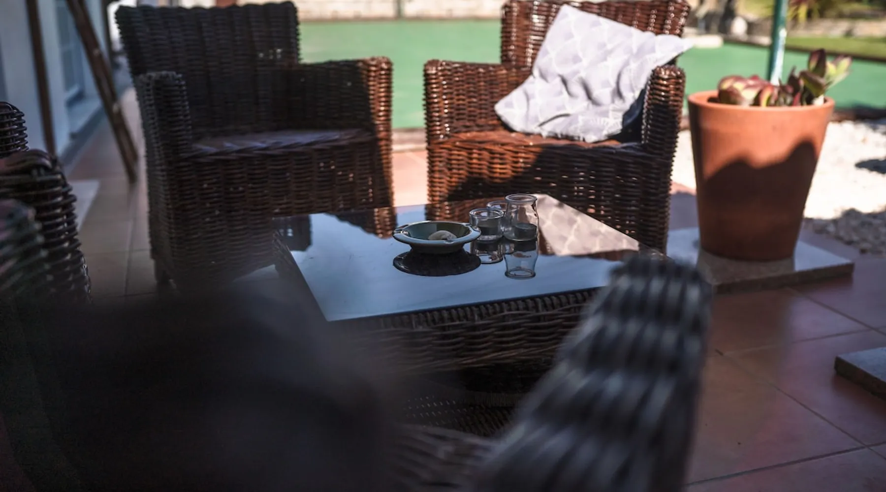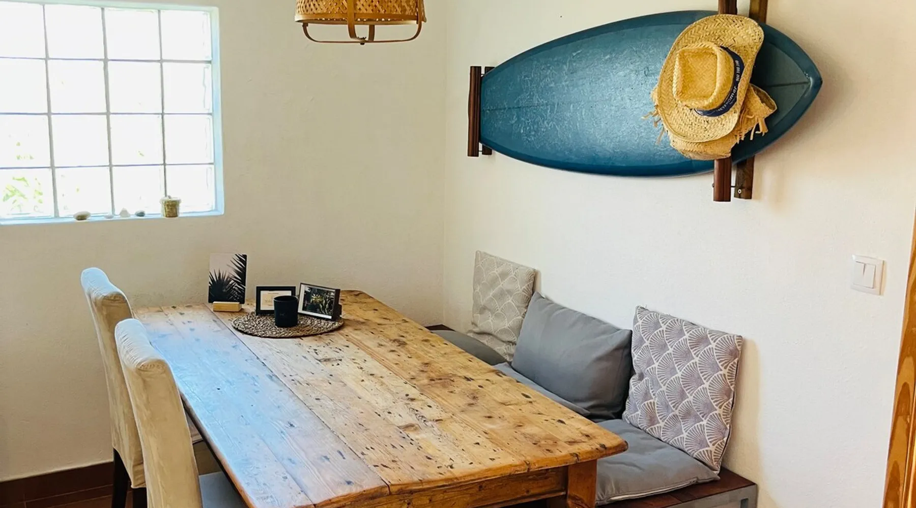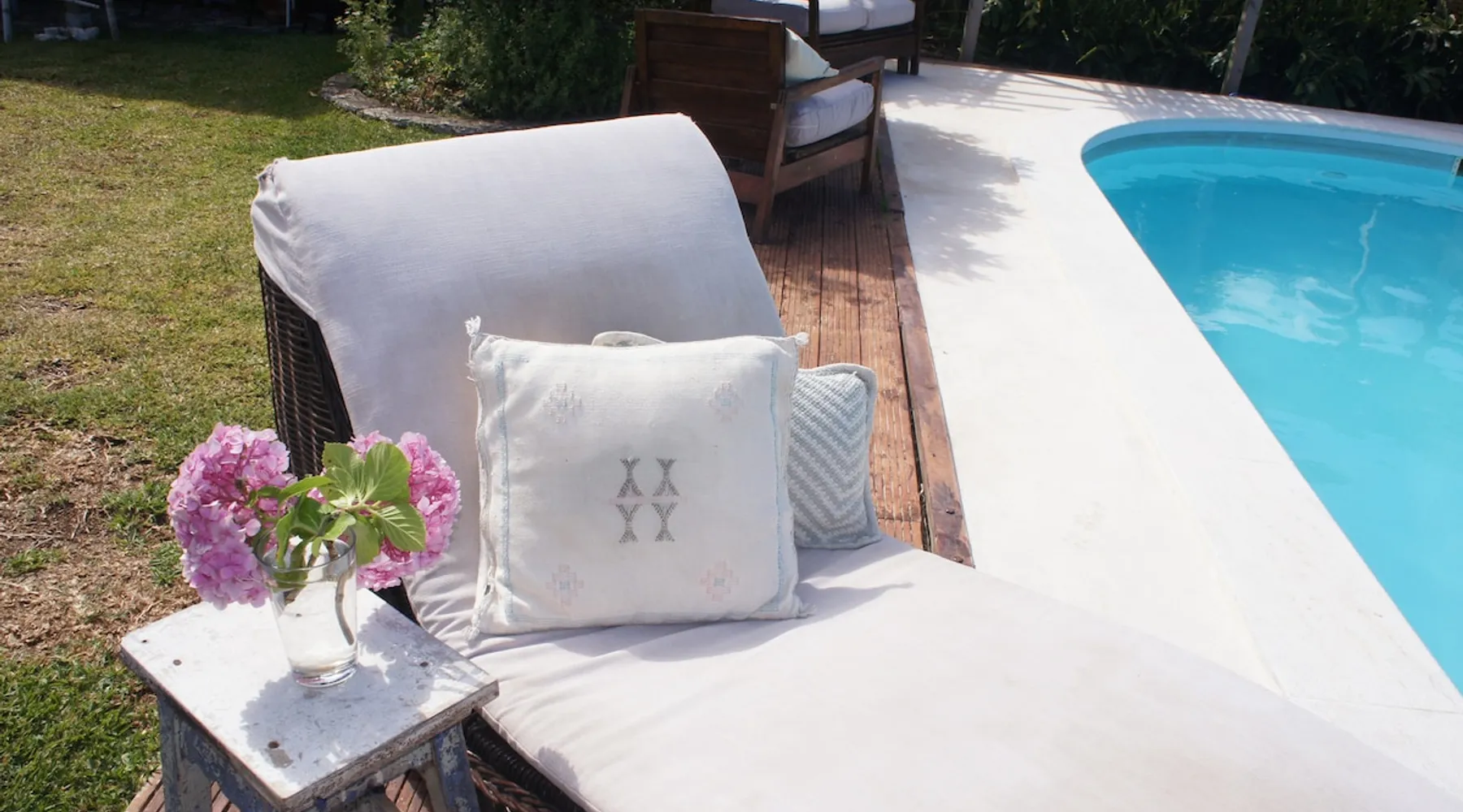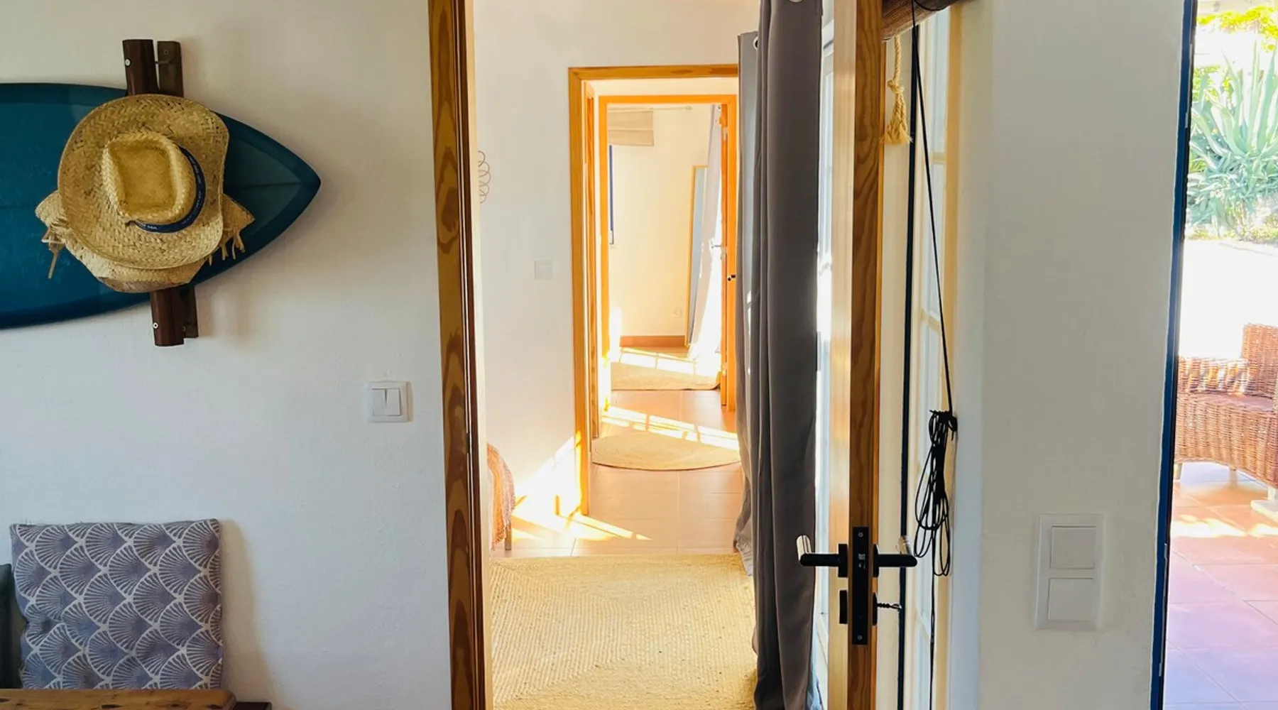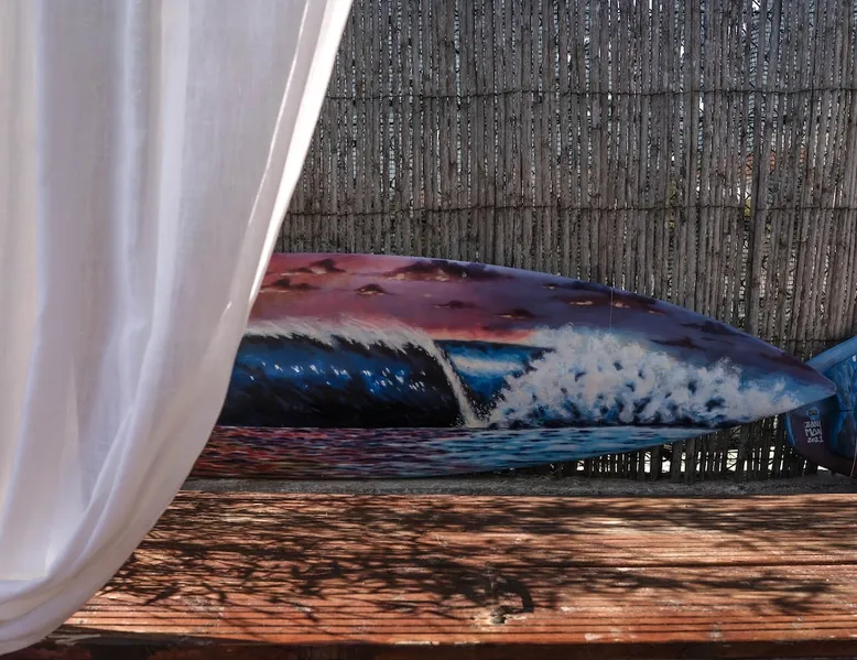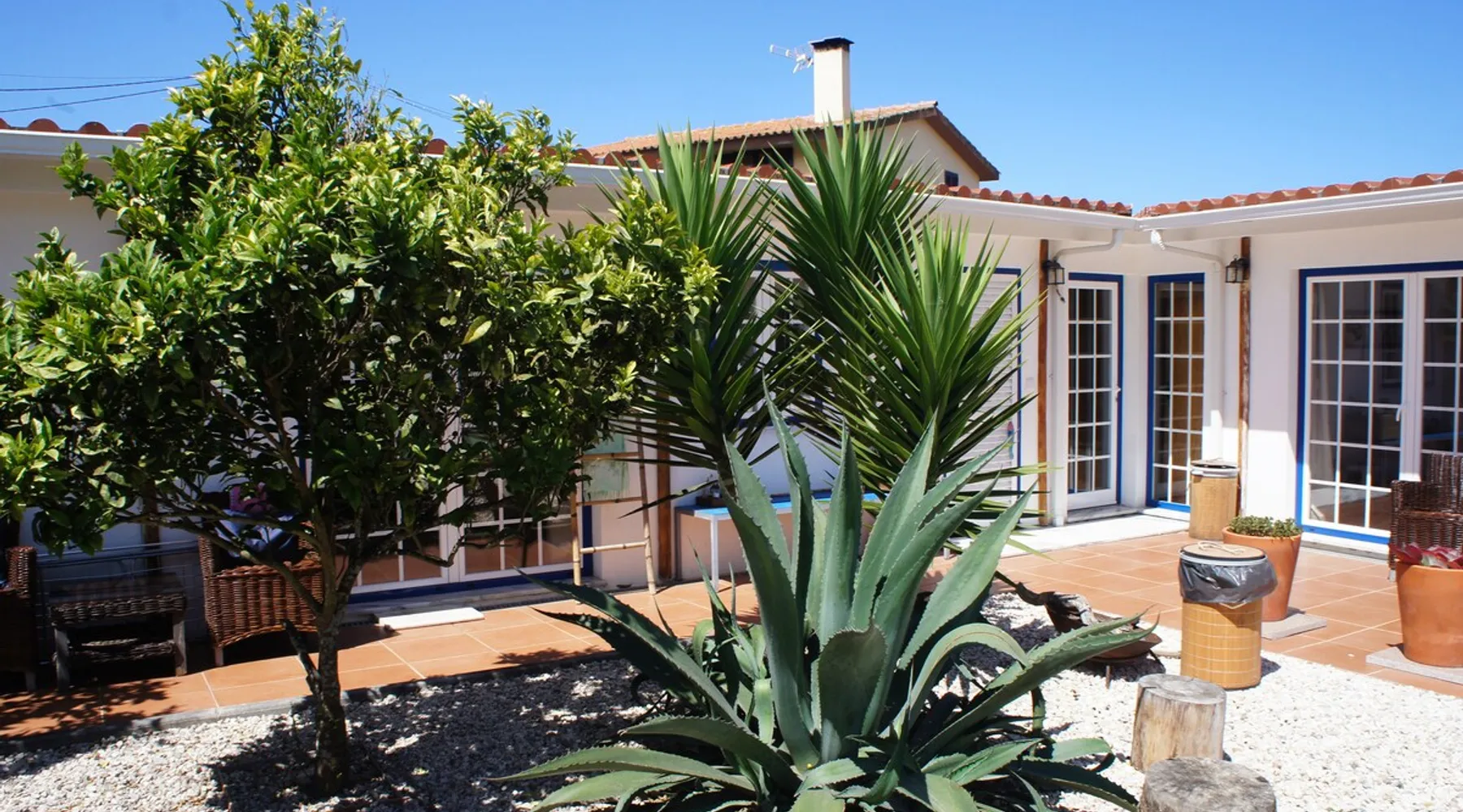 In the back of the garden the new family apartment (built in 2019 and 56 m²) has its own terrace, a living with a modern open kitchen, smart TV, internet and two double bedrooms (one with queen size bed, the other twin-bedded) with the bathroom in between. It is perfect for one or two couples or a family (an extra baby bed/cot is available). The garden has a bar and dining area. The pool is only a few steps away from your apartment and has its own terrace. The space From the private terrace there is a main entrance to the living/kitchen area, but also a separate entrance to a hall between the two bedrooms. João Jungle, located in the village of Assafora, offers three family apartments and one tastefully renovated studio apartment in the outbuilding of the villa adjoining the terrace with the swimming pool. Located in the northern part of the Unesco World Heritage Sintra Cascais Natural Park with the ocean just a few hundred meters away and only a 30-minute drive to the centre of Lisbon, the accommodation is perfectly fit for guests that enjoy nature, sports and cultural activities. Guest access Excellent Internet connection (75,82 Mbps). Work table and chair available. Guests may make use of the outside BBQ, the OFYR outdoor cooking or Wood Fired Oven (pizza oven) basket field, the pool and the outdoor bar. Other things to note Additional cost: bedlinen fee €45 and towel charge €40. Heating is available at additional cost: €56 per gas bottle. Laundry facilities are available at additional cost (only for personal, small-scale washing, not for bedding): €8 per washing/€8 per tumble dryer). Two weekly cleaning and clean bedlinen & towels are kindly required at €45. Pets are allowed at additional cost (€20 per pet, up to one week stay) and only under good terms and conditions. Suitable for two up to four people. Baby cot on request (€25). Ziggy Zaza is facing South/East Registration Details 91628/AL