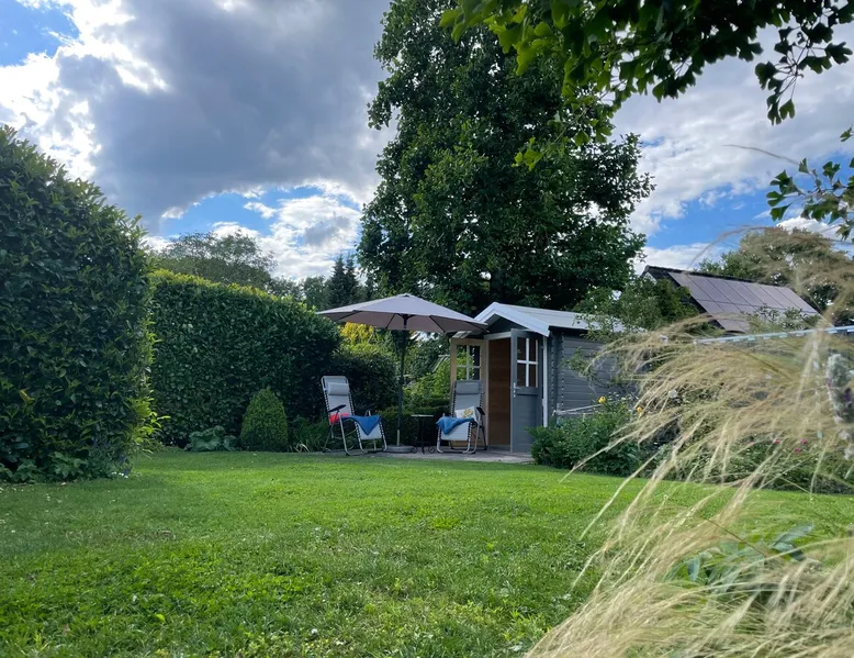 Our apartment leaves nothing to be desired. The apartment is equipped with everything you need for a comfortable stay: from a washing machine, dryer, dishwasher to an oven to a kettle and dishes, everything is available. The parking space for your vehicle is reserved for you free of charge right in front of the house. Feel free to look at the diverse pictures of the property. The space The apartment is on the 1st floor and is easily reached via stairs. It features a double bedroom and a separate dressing room. A large bathroom with whirlpool bathtub and shower lets you start the day fresh. Of course, the bathroom has a large window and thus daylight. The toilet is housed separately. Here, too, there is daylight through a Velux window. The high-gloss kitchen equipped with high-quality electrical appliances is open to the living room and separates it by a beautiful counter. The extractor hood for the stove is embedded in the ceramic stovetop. In the living area, there is a bright dining area for up to 4 people. Of course, there is plenty of crockery and cutlery in the kitchen. From the sofa you have a magnificent view of the garden and can spend a cozy evening in front of the state-of-the-art flat-screen TV. The smaller children's room offers additional space for a third person on a sofa bed. But a children's travel bed is also available. The garden is freely available for you. Here you can enjoy the view of the pond in various seating areas or relax in the sunbathing area with its own garden house. Other things to note Located on the outskirts of town, our apartment is only a 10-minute walk from the Oste. The local swimming pool can be reached in just 5 minutes by car. The city center and the nature and adventure park at Lake Vörder can be reached in about 10 minutes by car.