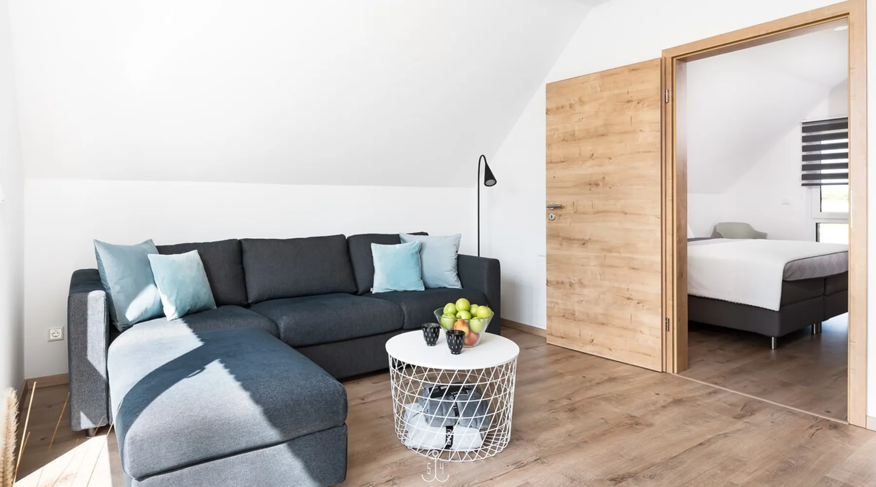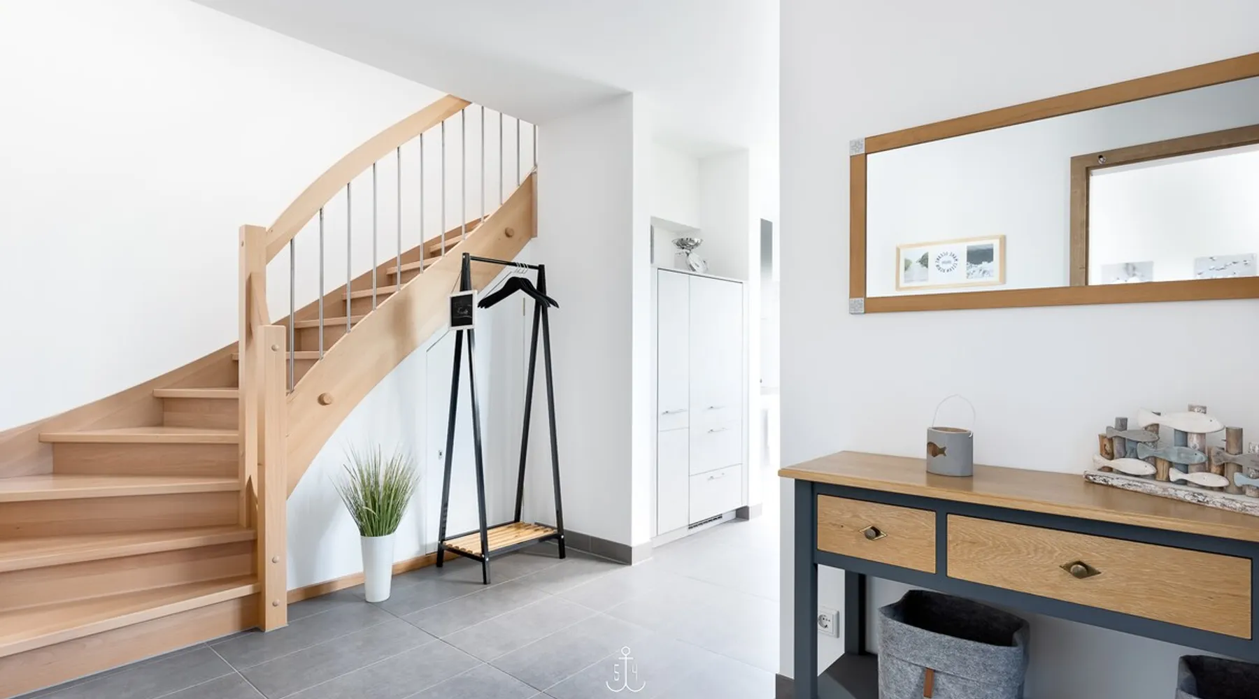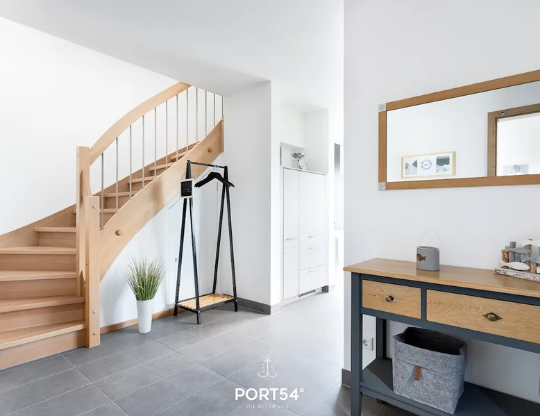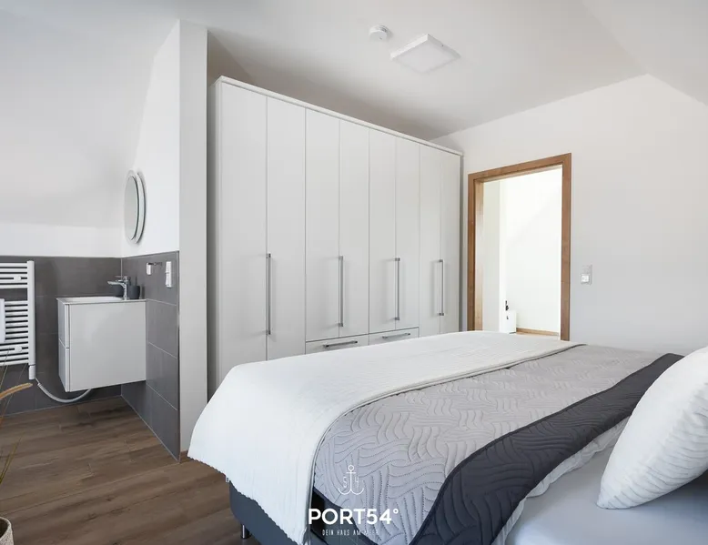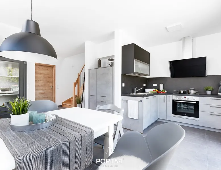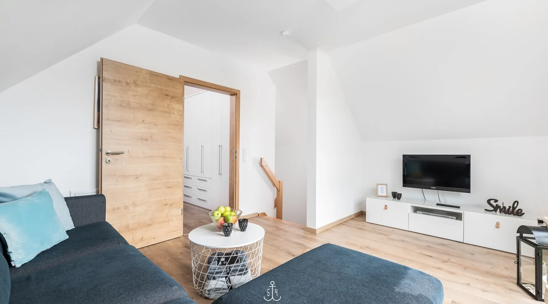 The charming cottage can accommodate up to 4 persons on 60 m². You can expect light-filled spaces in a modern style. On the ground floor is the well-equipped kitchen-living room with dining area & terrace access. On the upper floor, in addition to a bedroom, you will find a double bed & direct access to the walk-in shower room, which has been very charmingly integrated into the bedroom. Other sleeping options, the sofa bed in the adjoining living room offers you more sleeping options. Other things to note Our Lille Sort Hus impresses with its beautiful location and offers a cozy home for up to 4 people on 60 m². On the first floor, there is an open, fully equipped kitchen – ideal for preparing your own meals. The adjoining dining area invites you to spend convivial hours, while the terrace offers perfect opportunities to relax. End the day with a cozy barbecue evening with the electric barbecue and enjoy spectacular sunsets. A guest toilet is also available on this floor. Upstairs, you can spend relaxing nights in the stylish bedroom with direct access to a charming integrated, ground-level bathroom. On the same floor is also the living room, which is equipped with a comfortable sofa bed. As soon as you enter the house, you will be greeted by an inviting entrance area with a wardrobe, which leads you directly into the open kitchen. Look forward to an unforgettable break in our Lille Sort Hus!