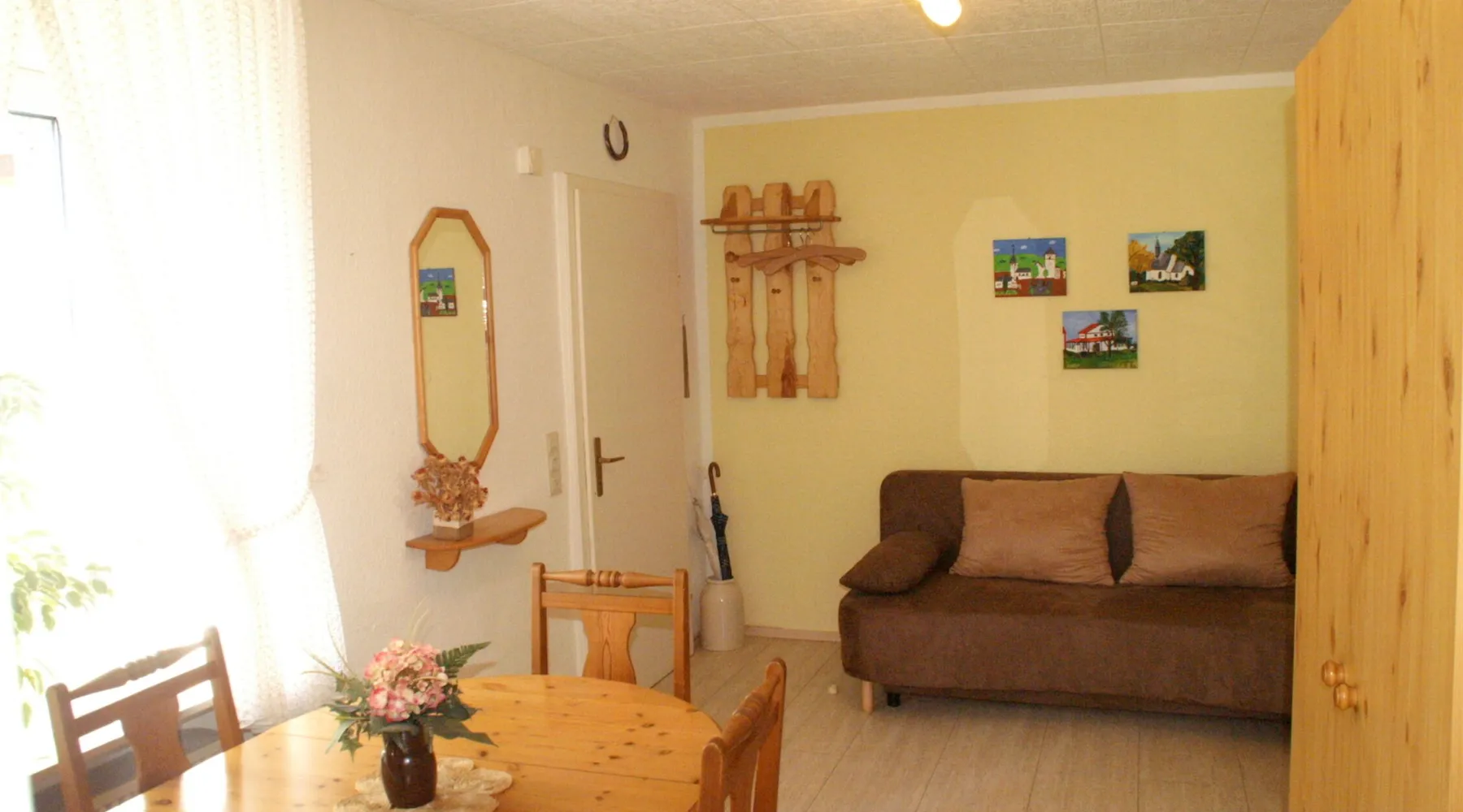 We have furnished the apartment so comfortably that nothing is left to be desired. The living area is over 52 square meters. A spacious large living room and dining room offer space for up to 4 people. The bathroom has a shower, bath, toilet and hairdryer. A fully equipped kitchen with a microwave and an oven complete the furnishings. They have a telephone, stereo radio and cable TV. Bed and kitchen linen, dishes and cutlery are fully available. A parking space free of charge at the house. We are looking forward to your visit.