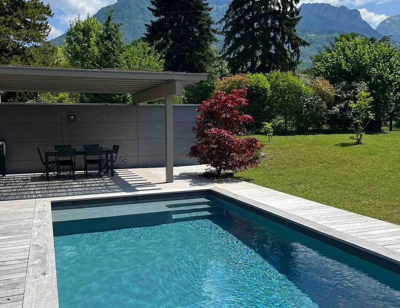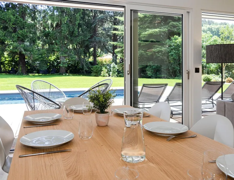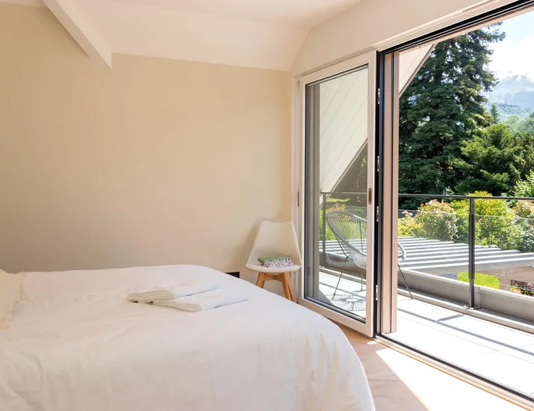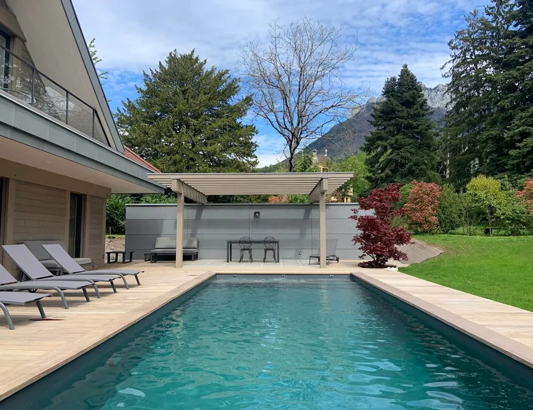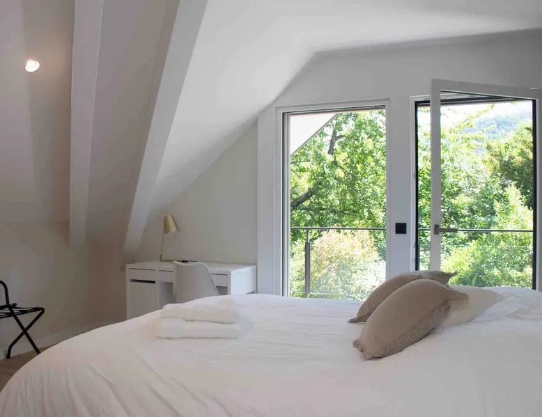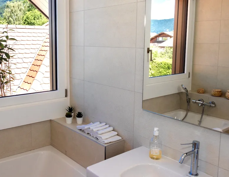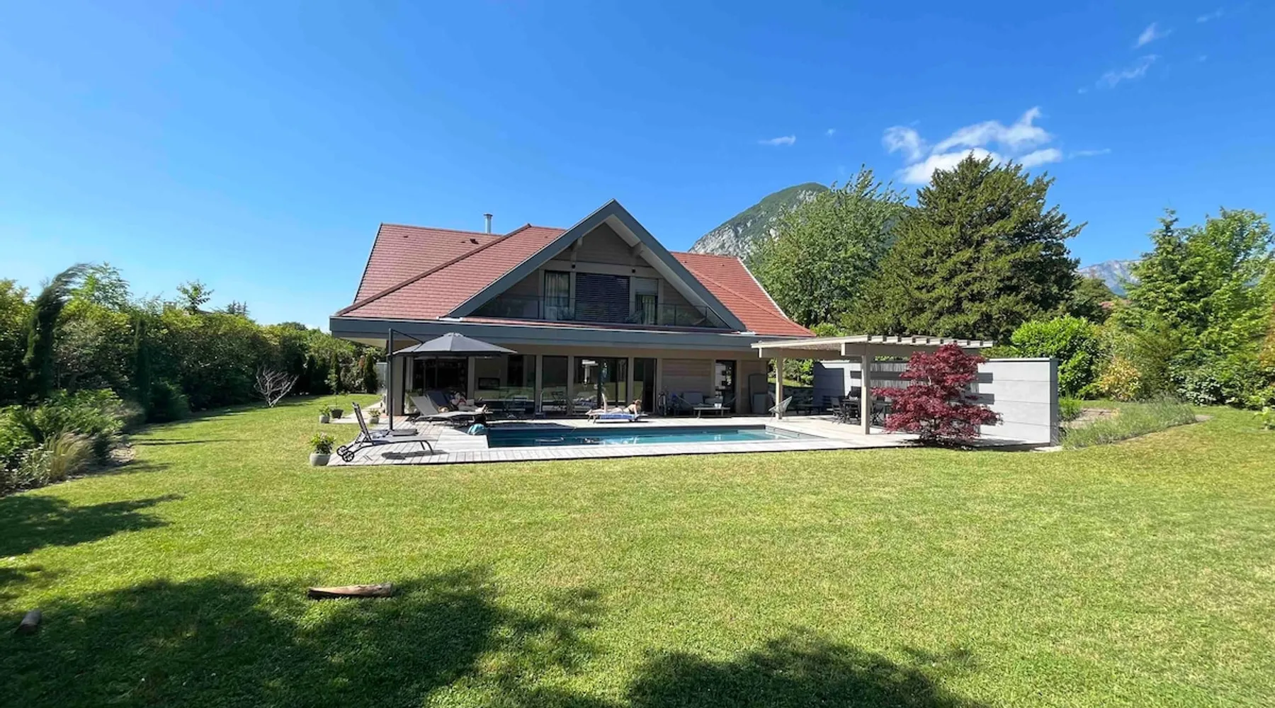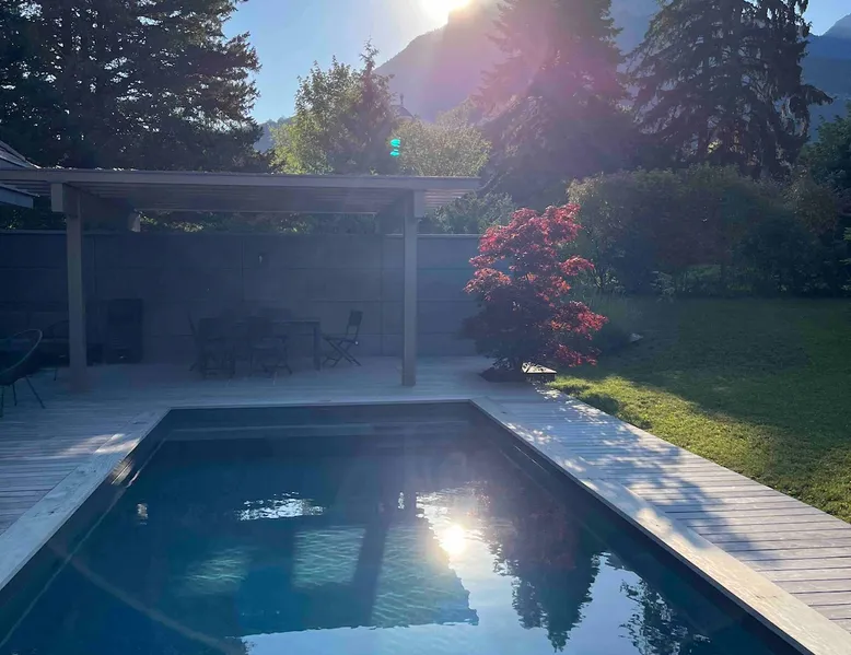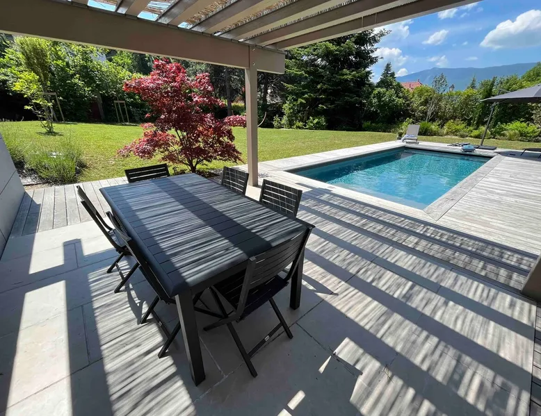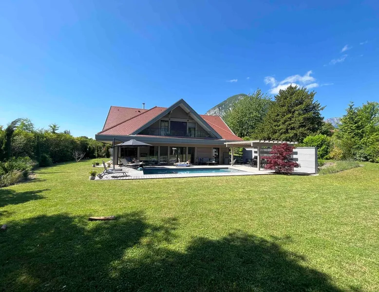 New contemporary luxury villa, exceptional services, with swimming pool, enclosed and wooded garden, 300 meters from Lake Annecy, and 30 minutes from the ski resorts of La Clusaz and Le Grand-Bornand. At the foot of the Roc de Chère nature reserve, 300 meters walk from the village and its shops. Ideally located, quiet, mountain and garden views. The space A villa between lake and mountain, in a privileged environment, a stone's throw from the lake and the heart of the village, at the foot of the Roc de Chère nature reserve. Hiking, skiing, water sports, golf nearby, for an unforgettable vacation. Guest access The entire villa, pool (accessible and heated between mid-April and mid-October depending on the weather) and garden are available to the tenants only. Other things to note A rental agreement will be emailed to you and must be returned signed. Registration Details 74176000133JB