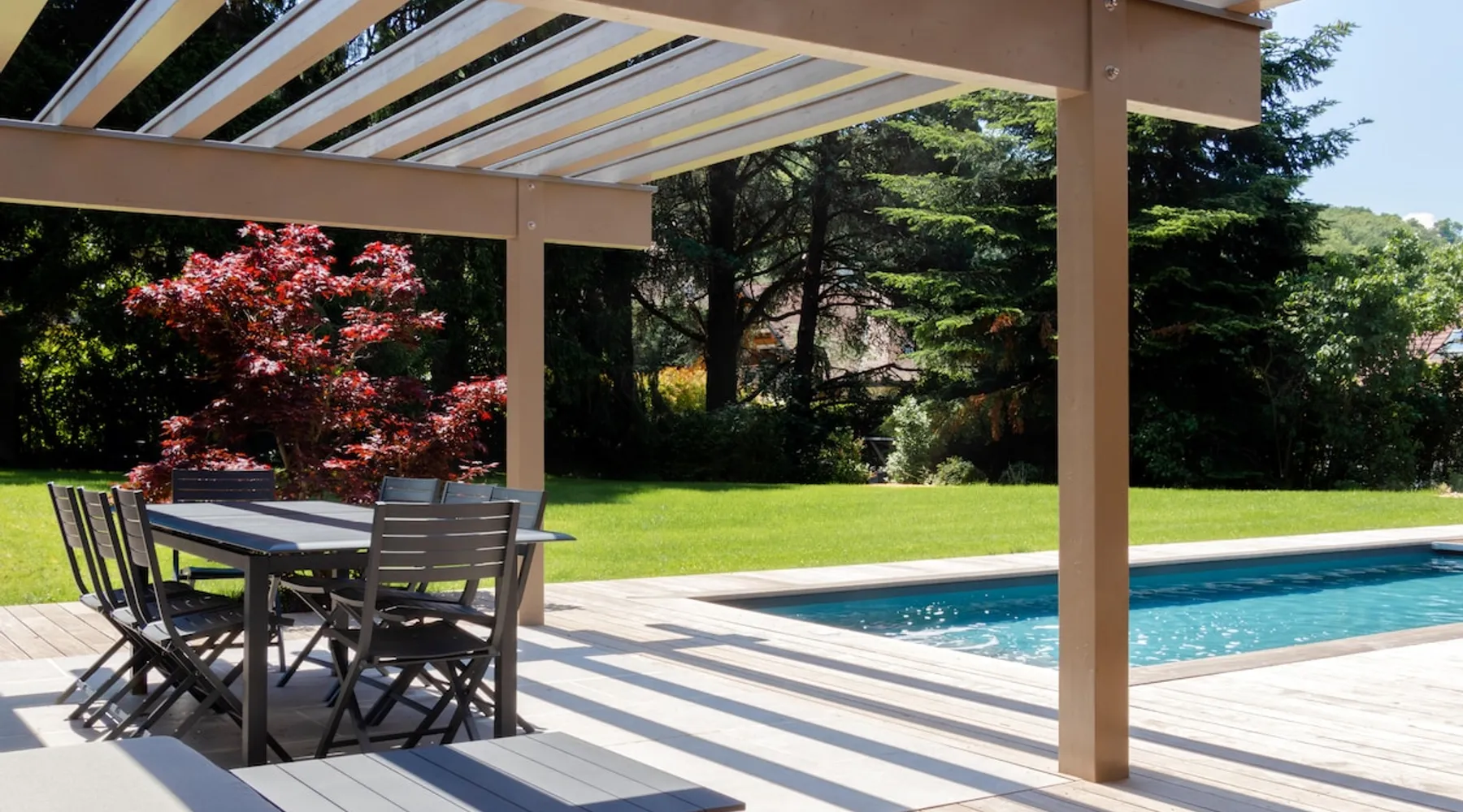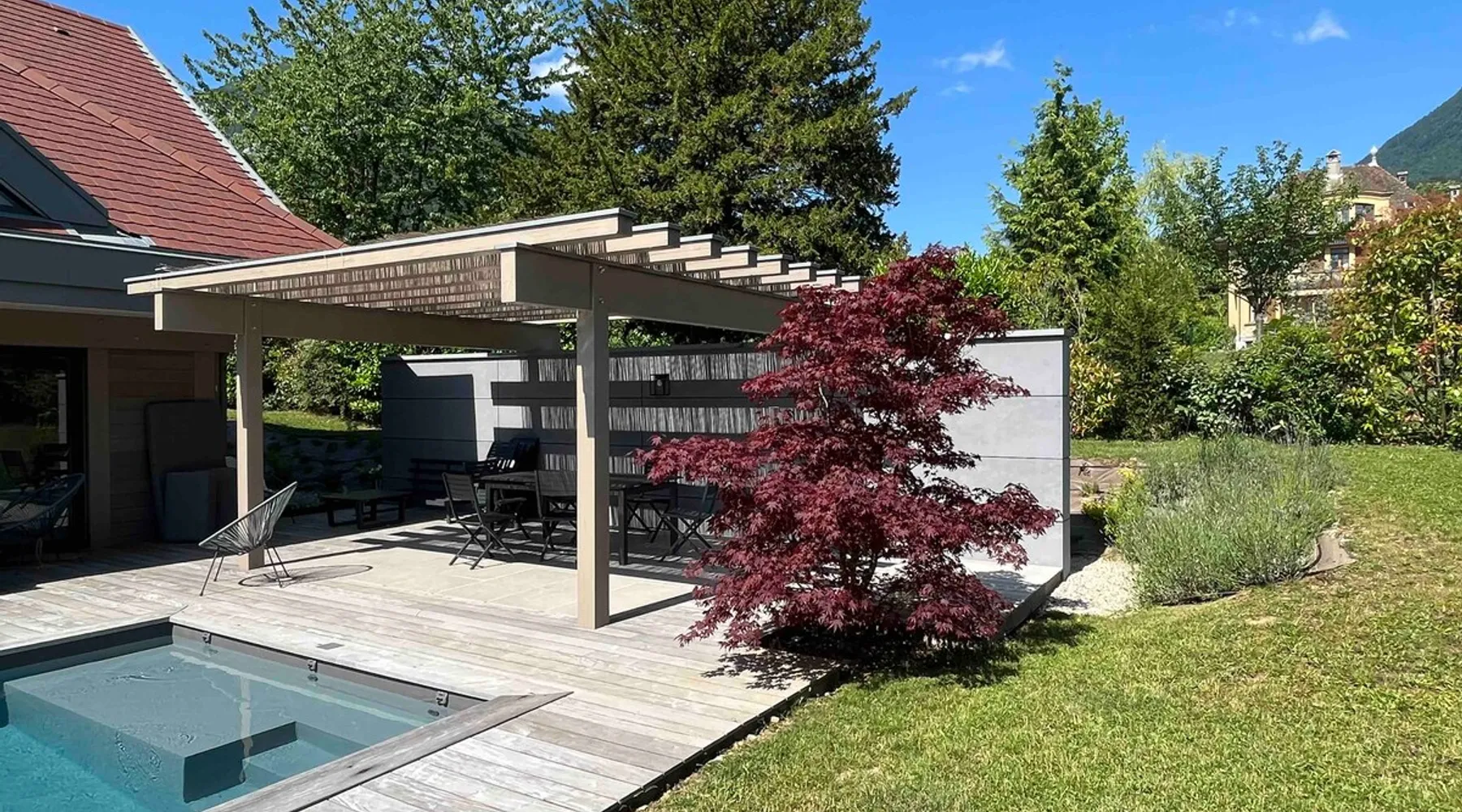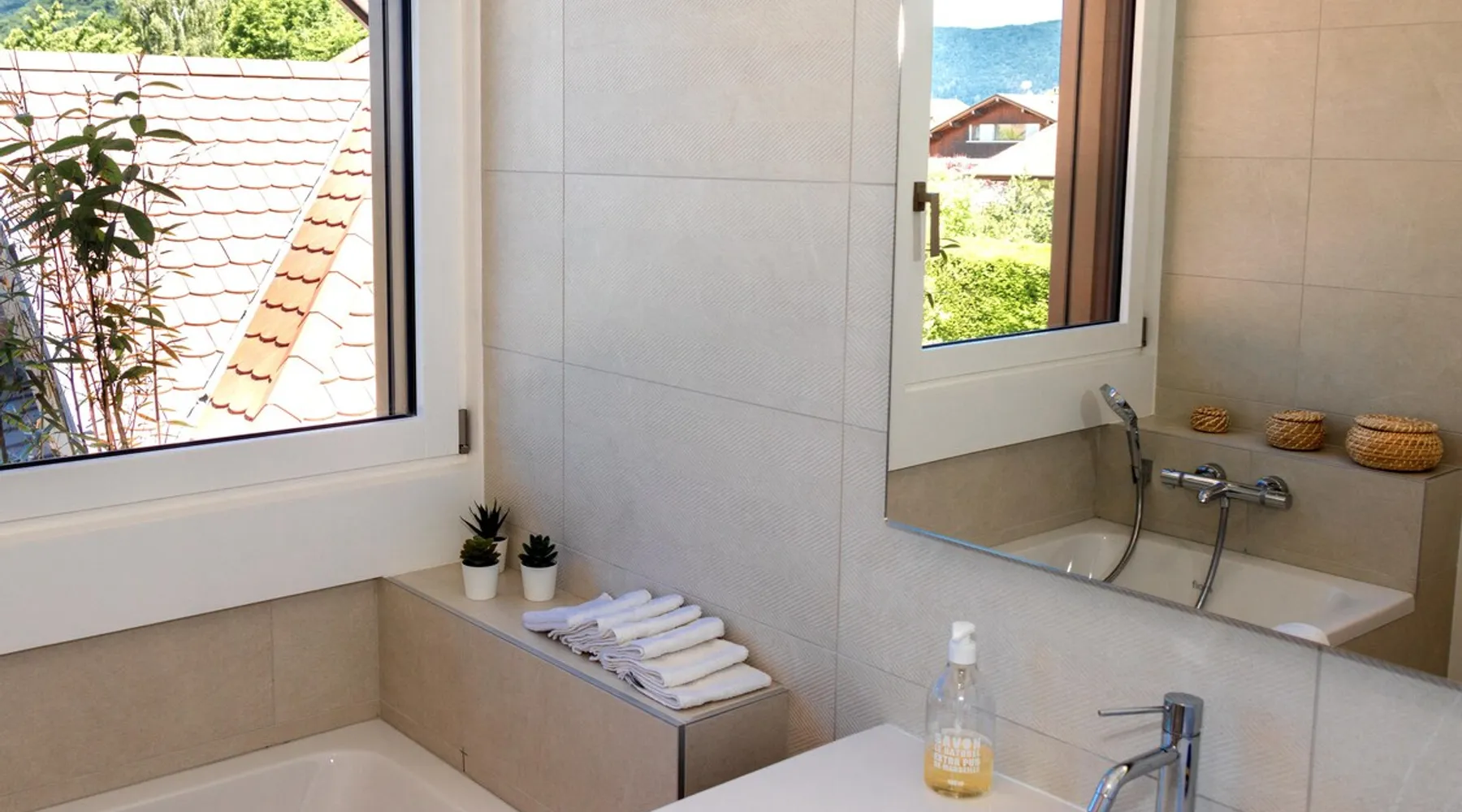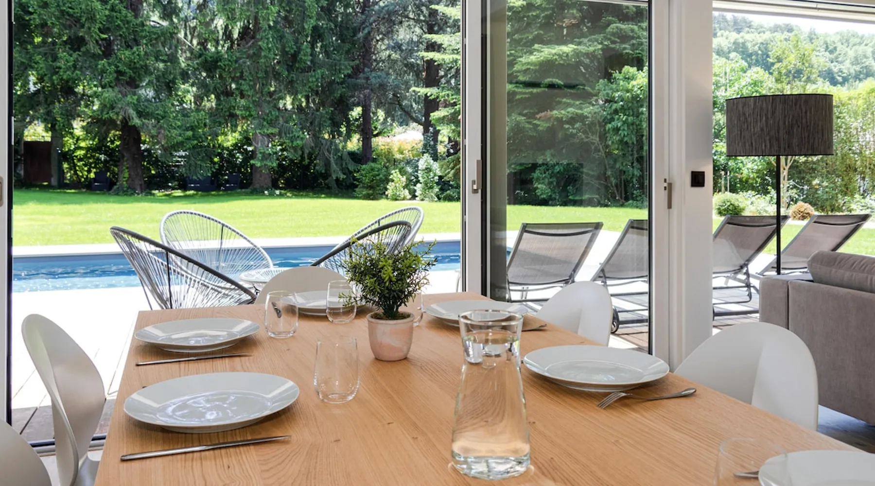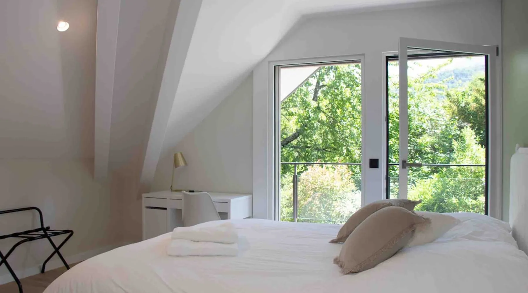 New contemporary luxury villa, exceptional services, with swimming pool, enclosed and wooded garden, 300 meters from Lake Annecy, and 30 minutes from the ski resorts of La Clusaz and Le Grand-Bornand. At the foot of the Roc de Chère nature reserve, 300 meters walk from the village and its shops. Ideally located, quiet, mountain and garden views. The space A villa between lake and mountain, in a privileged environment, a stone's throw from the lake and the heart of the village, at the foot of the Roc de Chère nature reserve. Hiking, skiing, water sports, golf nearby, for an unforgettable vacation. Guest access The entire villa, pool (accessible and heated between mid-April and mid-October depending on the weather) and garden are available to the tenants only. Other things to note A rental agreement will be emailed to you and must be returned signed. Registration Details 74176000133JB