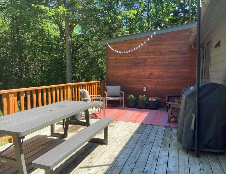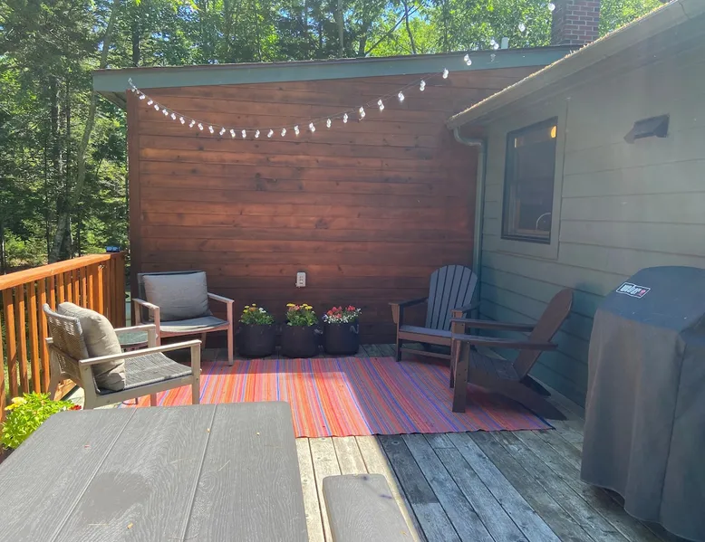 Enjoy your vacation tucked away on a quiet two acres parcel of woods, yet a short drive to nearly everywhere. The house is located just a short 5 minute walk to the swimming hole in Somes Pond. Many games, books and toys to entertain everyone. Heat pump air conditioners are available in the main living area and two of the bedrooms with the queen beds. Guest access Entire property. Other things to note Kitchen is stocked with many cleaning and organization supplies such as foil and baggies. The bathrooms have toilet paper, bath towels, shampoo, conditioner, body wash, soap and lotion.