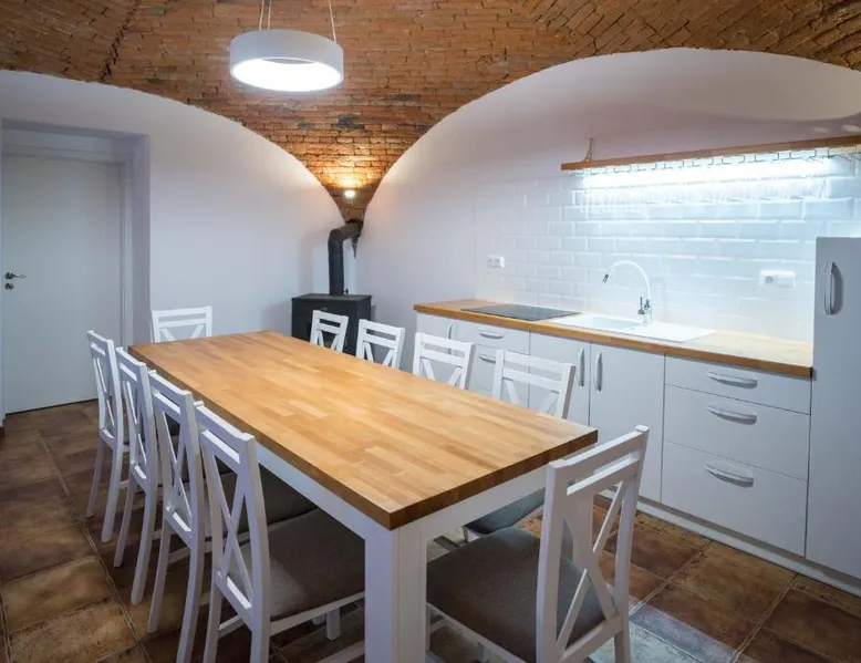 Spacious Holiday Home in Pouzdřany: Apartmány Habánská offers a spacious holiday home in Pouzdřany, Czech Republic. The property features four bedrooms and three bathrooms, ensuring ample space for all guests. Wellness and Leisure Facilities: Guests can enjoy a hot spring bath, sauna, and hammam. The spa and wellness center provides relaxation and rejuvenation, while the sun terrace and bar offer outdoor activities. Free WiFi is available throughout the property. Comfortable Living Spaces: The holiday home includes a fully equipped kitchen, dining area, and living room. Additional amenities include air-conditioning, a fireplace, and a washing machine. Free on-site private parking is provided for convenience. Nearby Attractions: Located 25 mi from Brno–Turany Airport, the property is close to attractions such as Lednice Chateau (14 mi) and The Valtice Palace (19 mi). Hiking enthusiasts can explore the surrounding area. This holiday home features a hot tub and a fireplace. Boasting a private entrance, this air-conditioned holiday home features 3 living rooms, 4 separate bedrooms and 3 bathrooms with a bath and a shower. Guests will find a stovetop, a refrigerator, kitchenware and an oven in the kitchen. The holiday home also comes with a barbecue. A seating area with a flat-screen TV, a washing machine and a terrace are offered in this spacious holiday home. The unit has 13 beds.